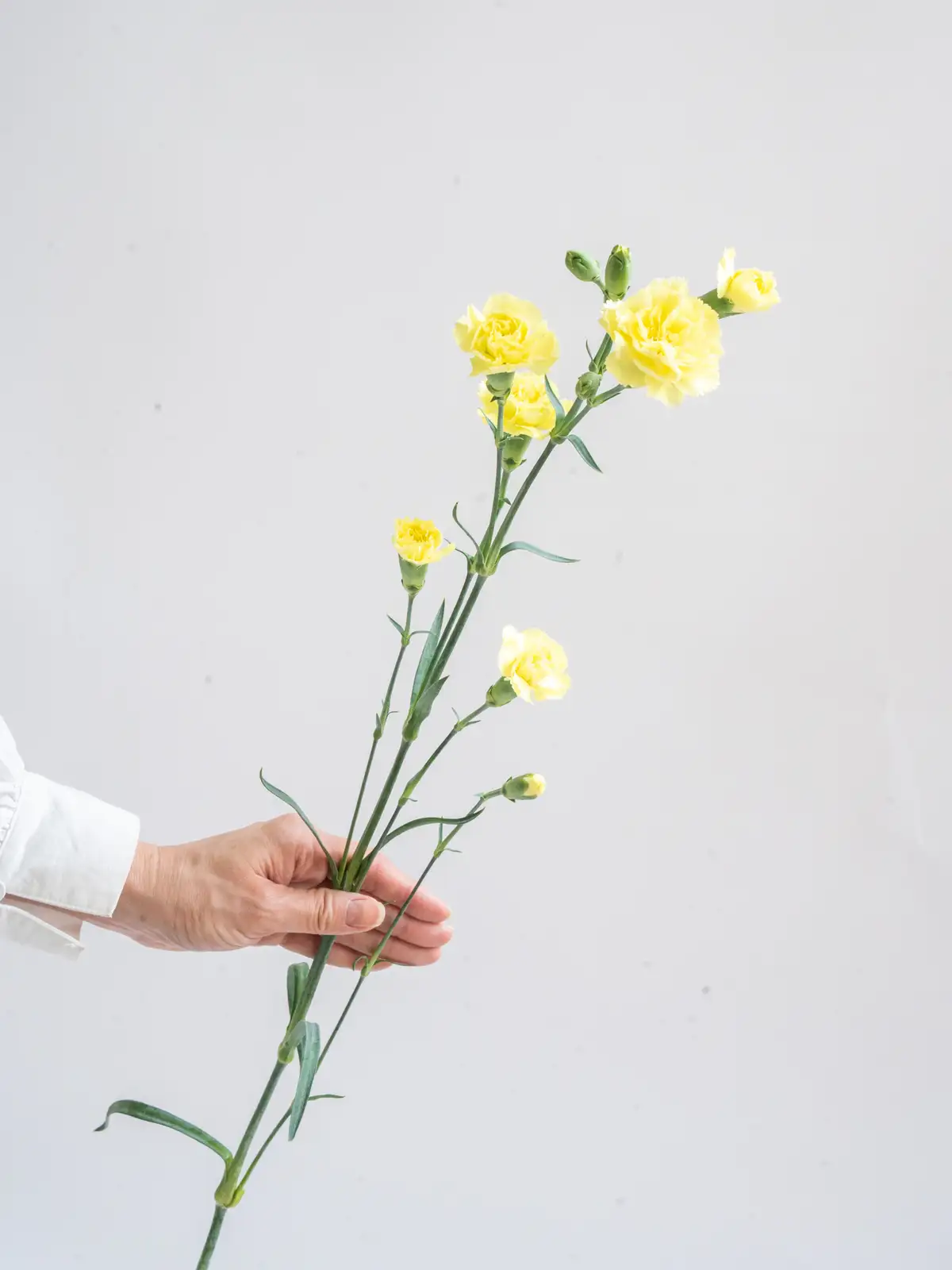 明るく元気な印象の黄色系SPカーネーションは、春夏のギフトやアレンジにぴったりです。ボリュームは入荷時期・産地によりイメージと異なる場合がございます。予めお含みおきください。