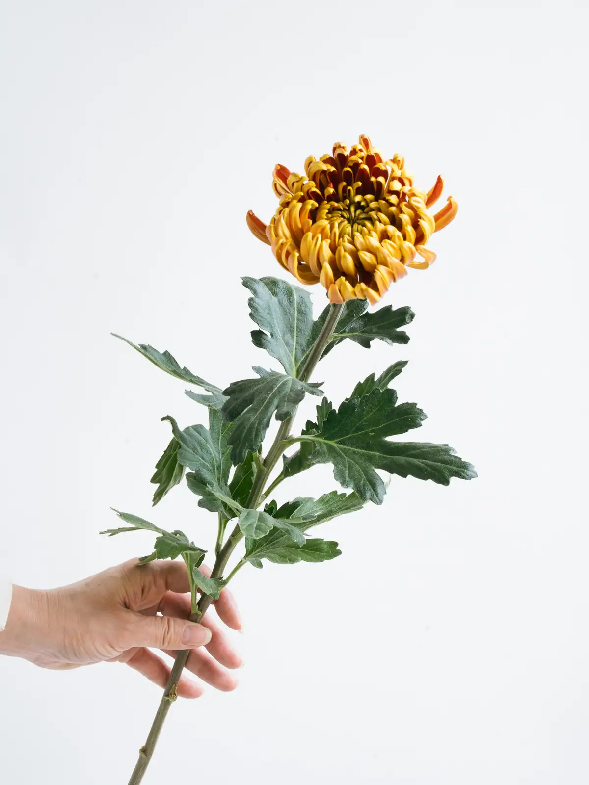 深みのある濃いオレンジが印象的な品種。秋の装飾やシックなアレンジにおすすめです。
