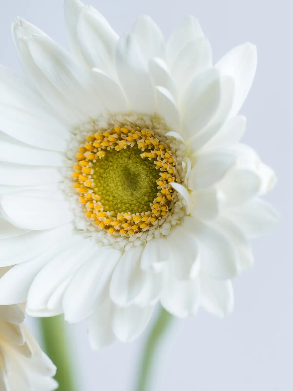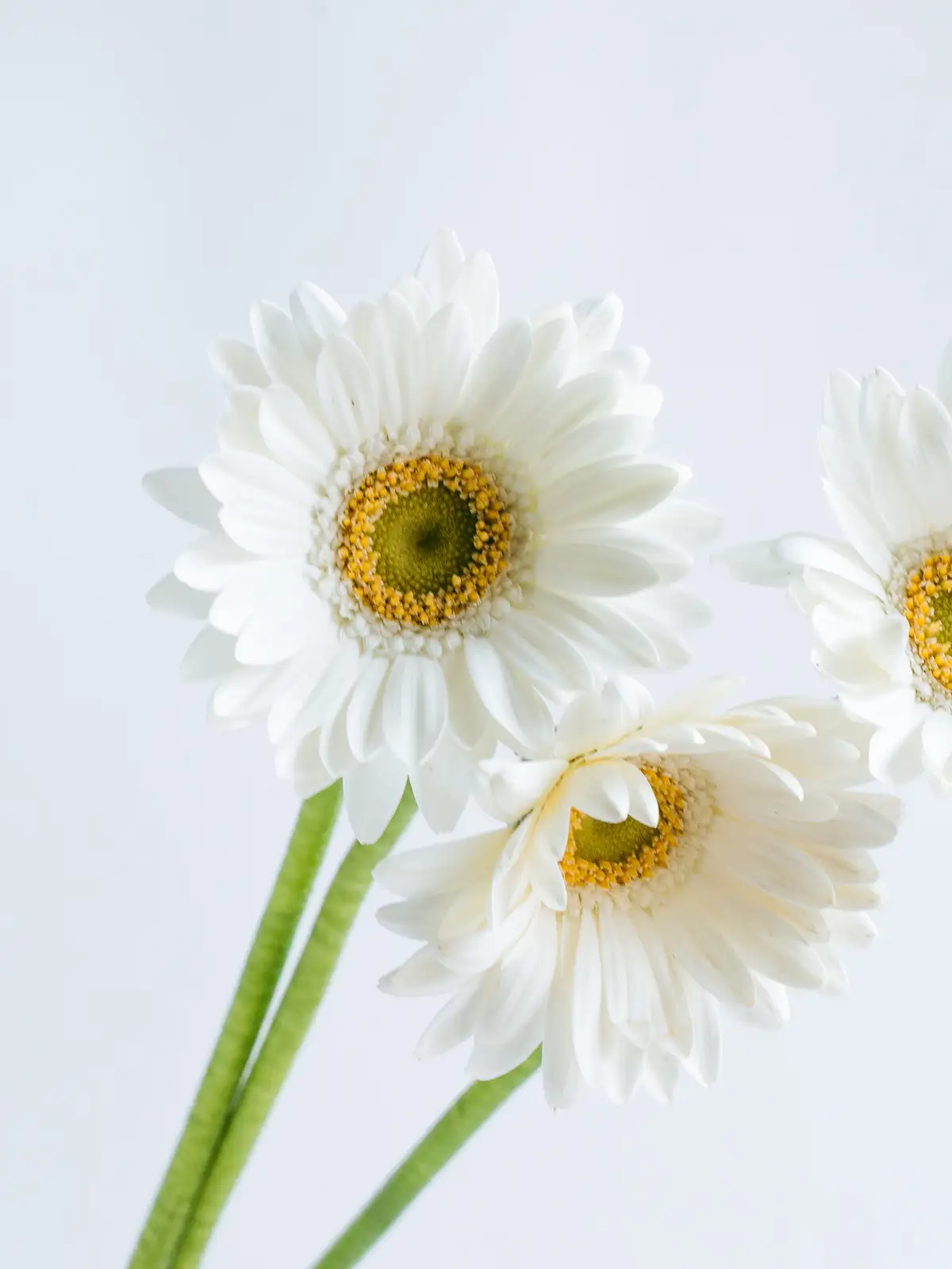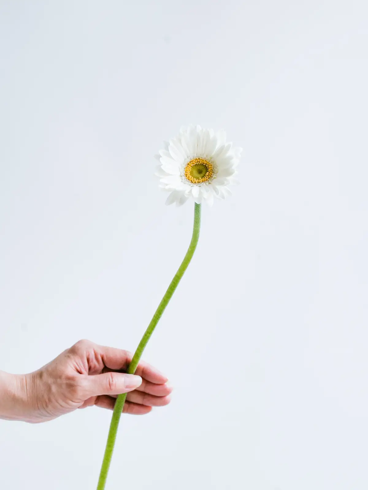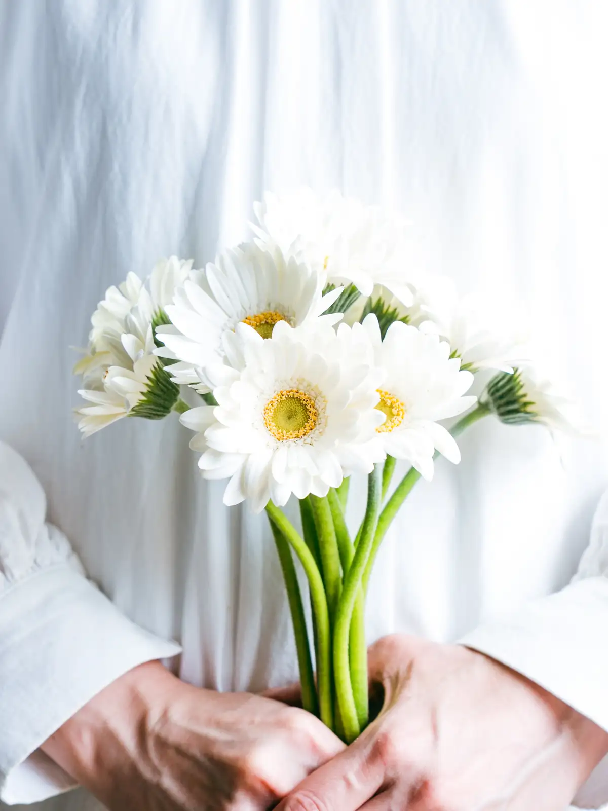 清楚な白色が魅力のガーベラ。シンプルで上品なアレンジやブライダルに最適です。