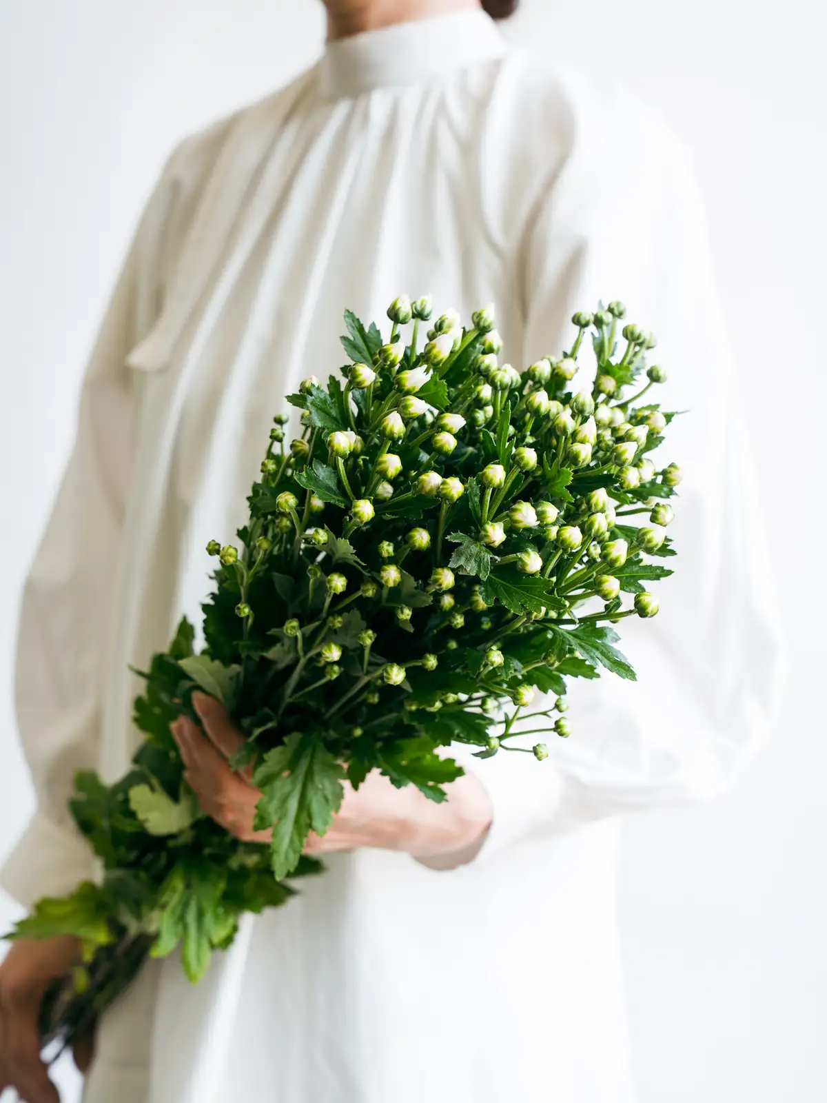 白く可憐な小菊で、控えめな存在感が和の雰囲気を引き立てます。供花や和装装飾におすすめです。