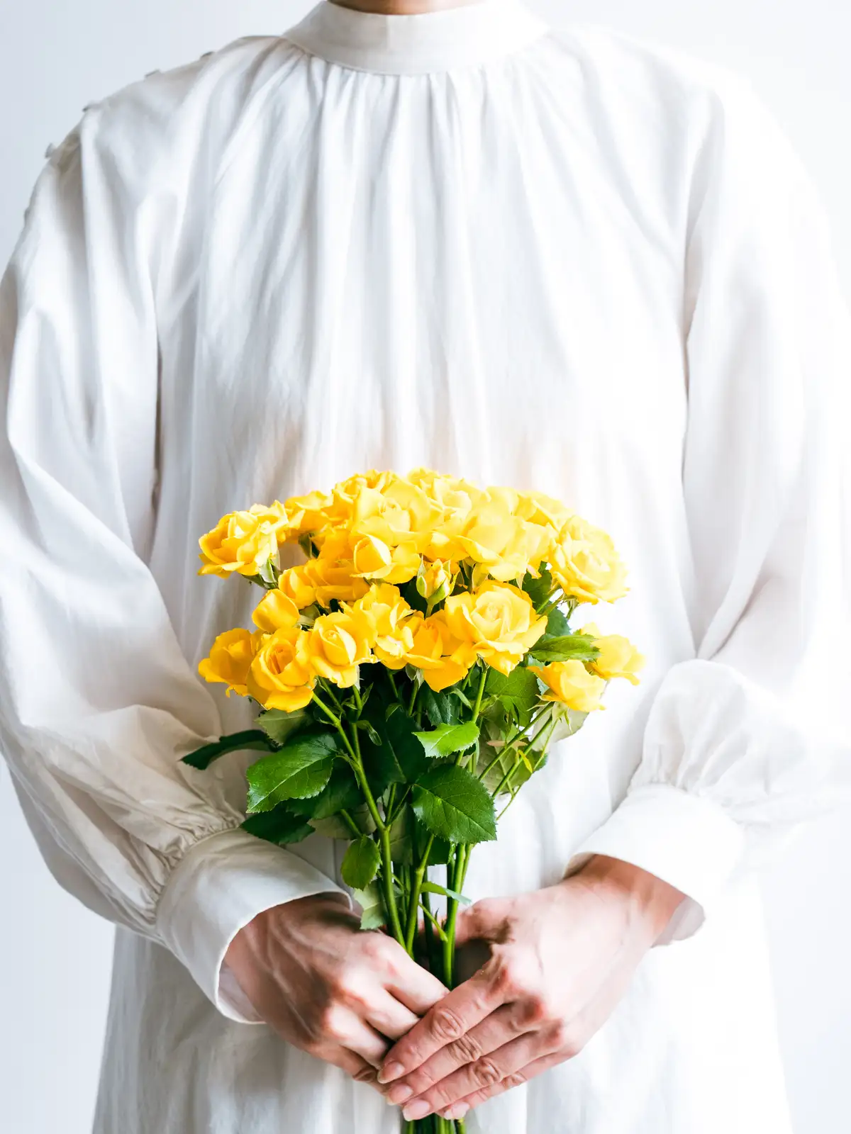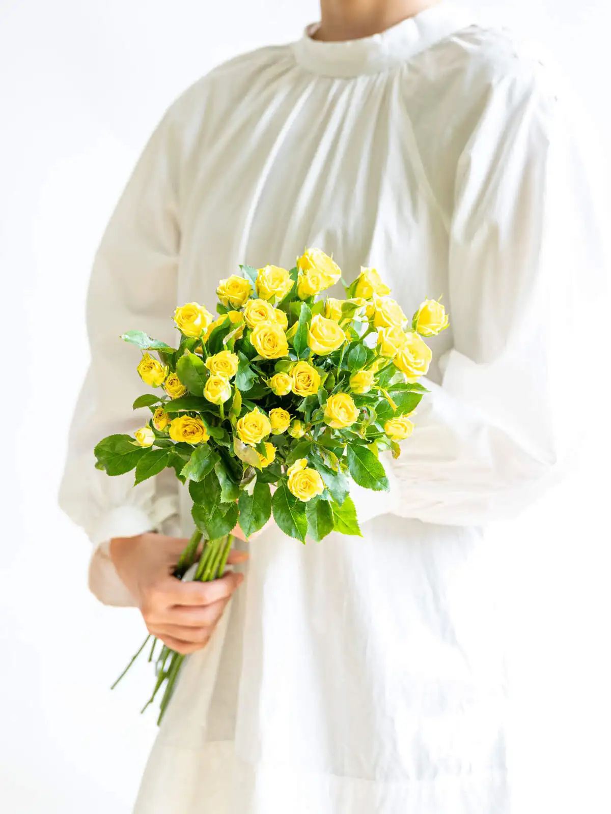 明るい黄色のスプレーバラで、元気で軽やかな印象のアレンジにおすすめです。