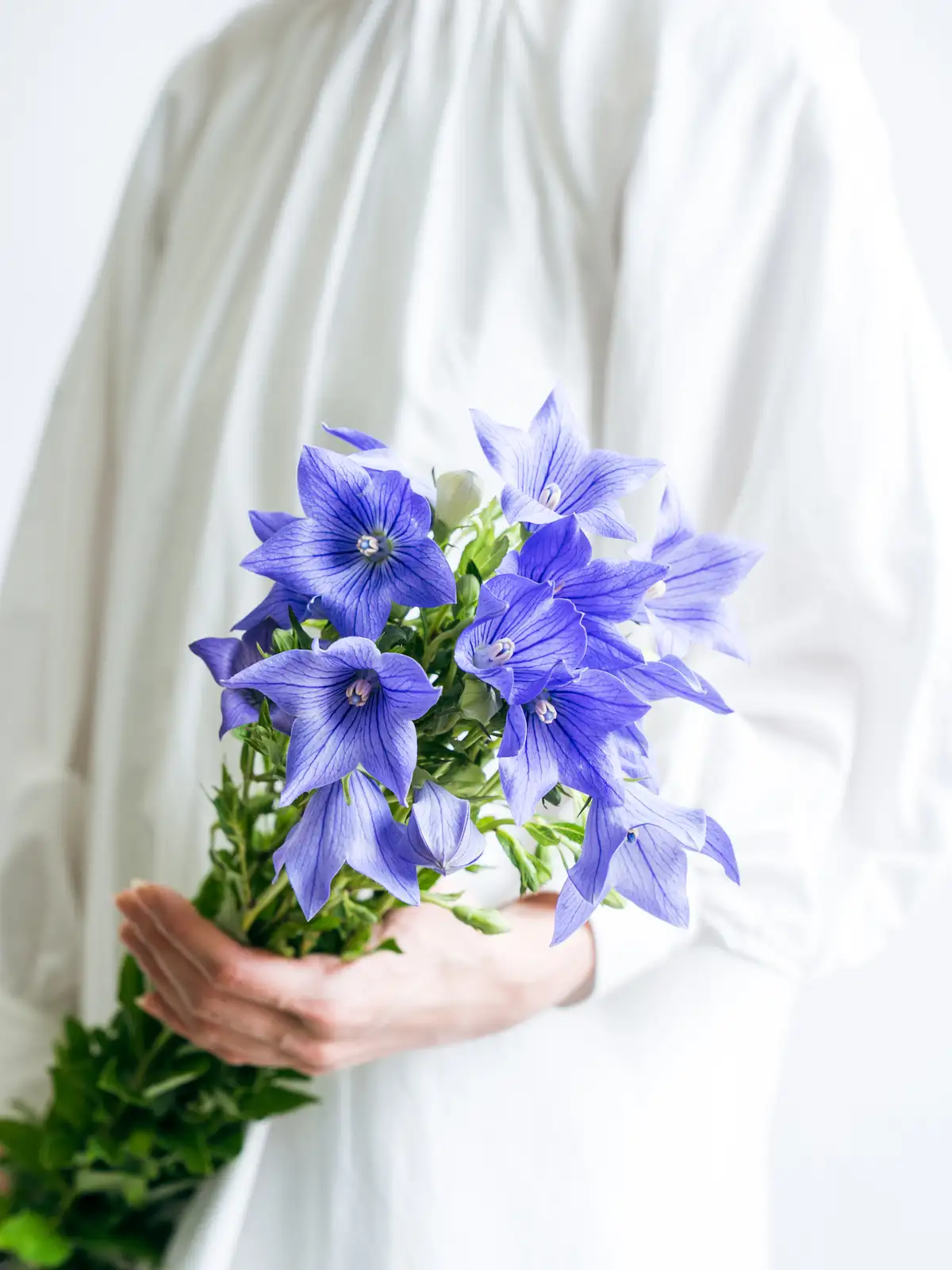 星型の花形が特徴的な紫のキキョウ。涼しげで和の雰囲気を演出する花材です。