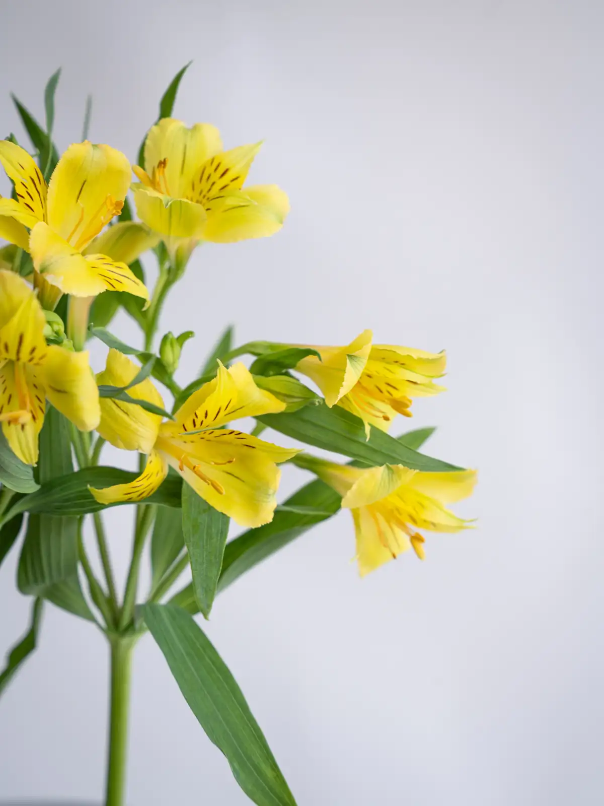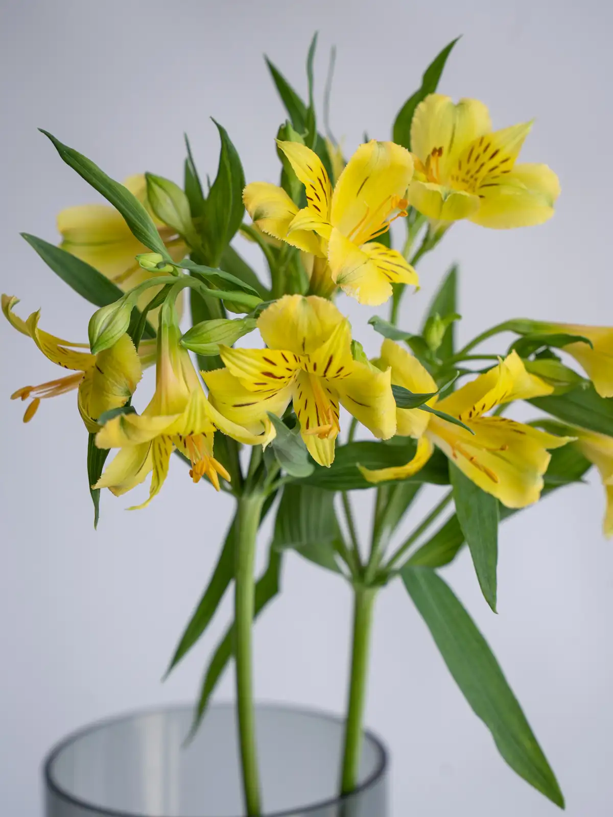明るいレモンイエローが爽やかな印象を与えるアルストロメリア。春夏の装飾に最適です。