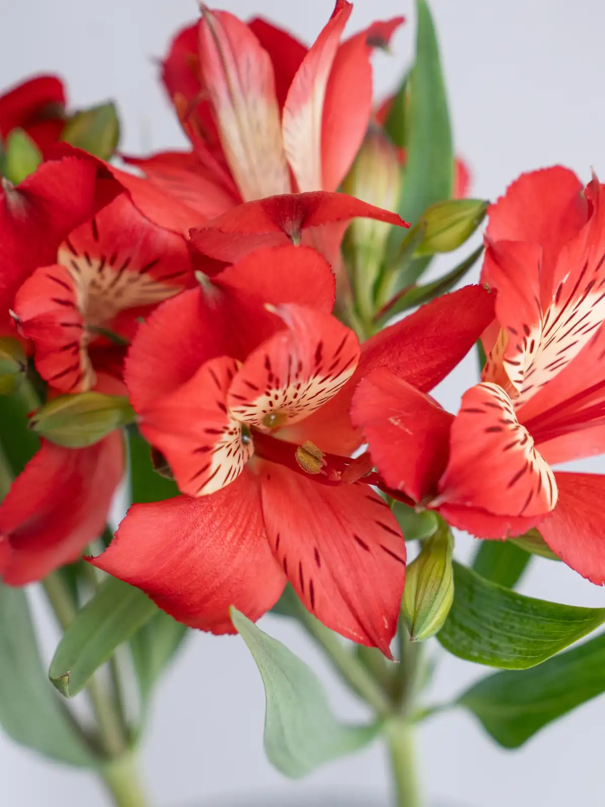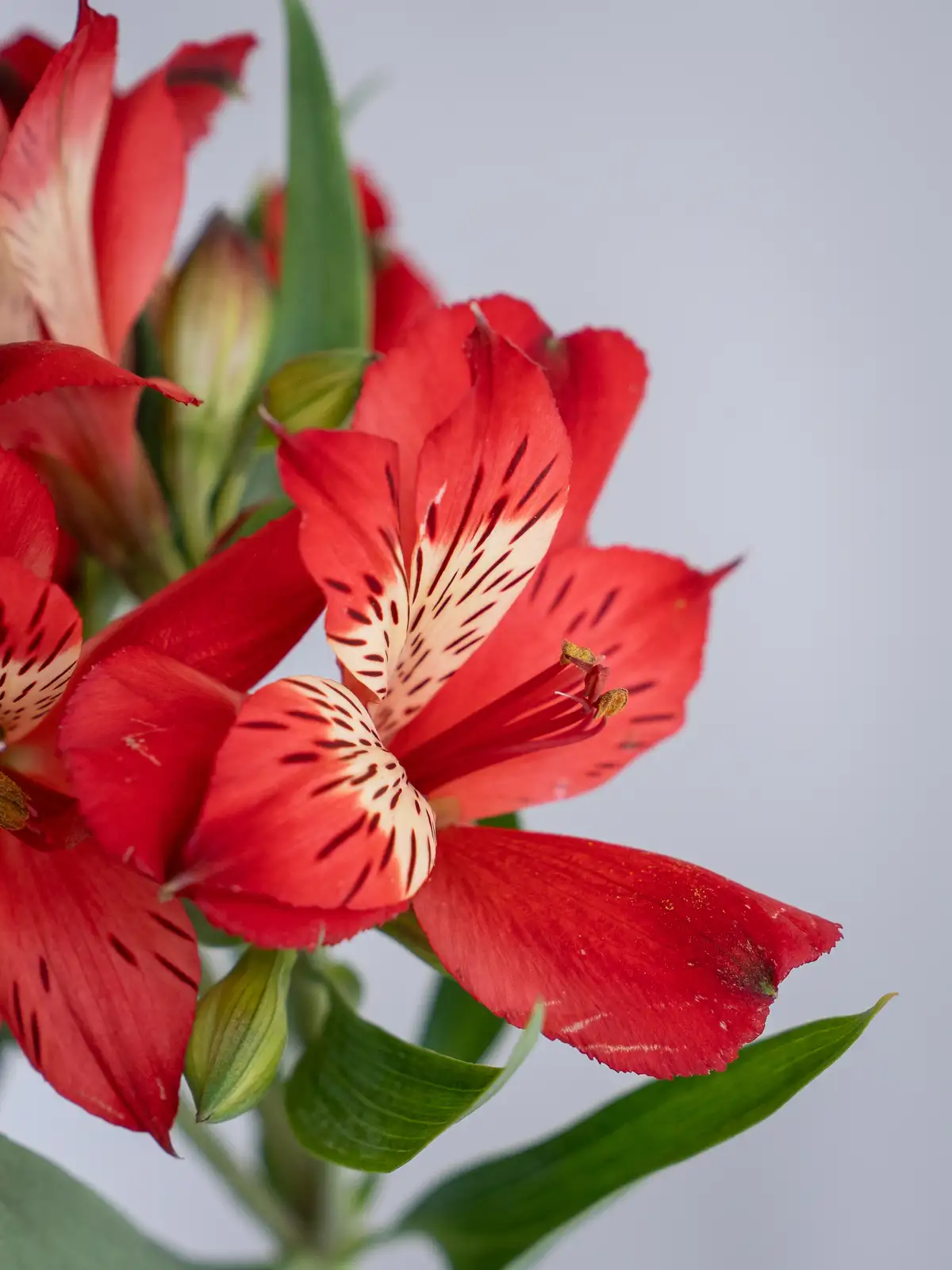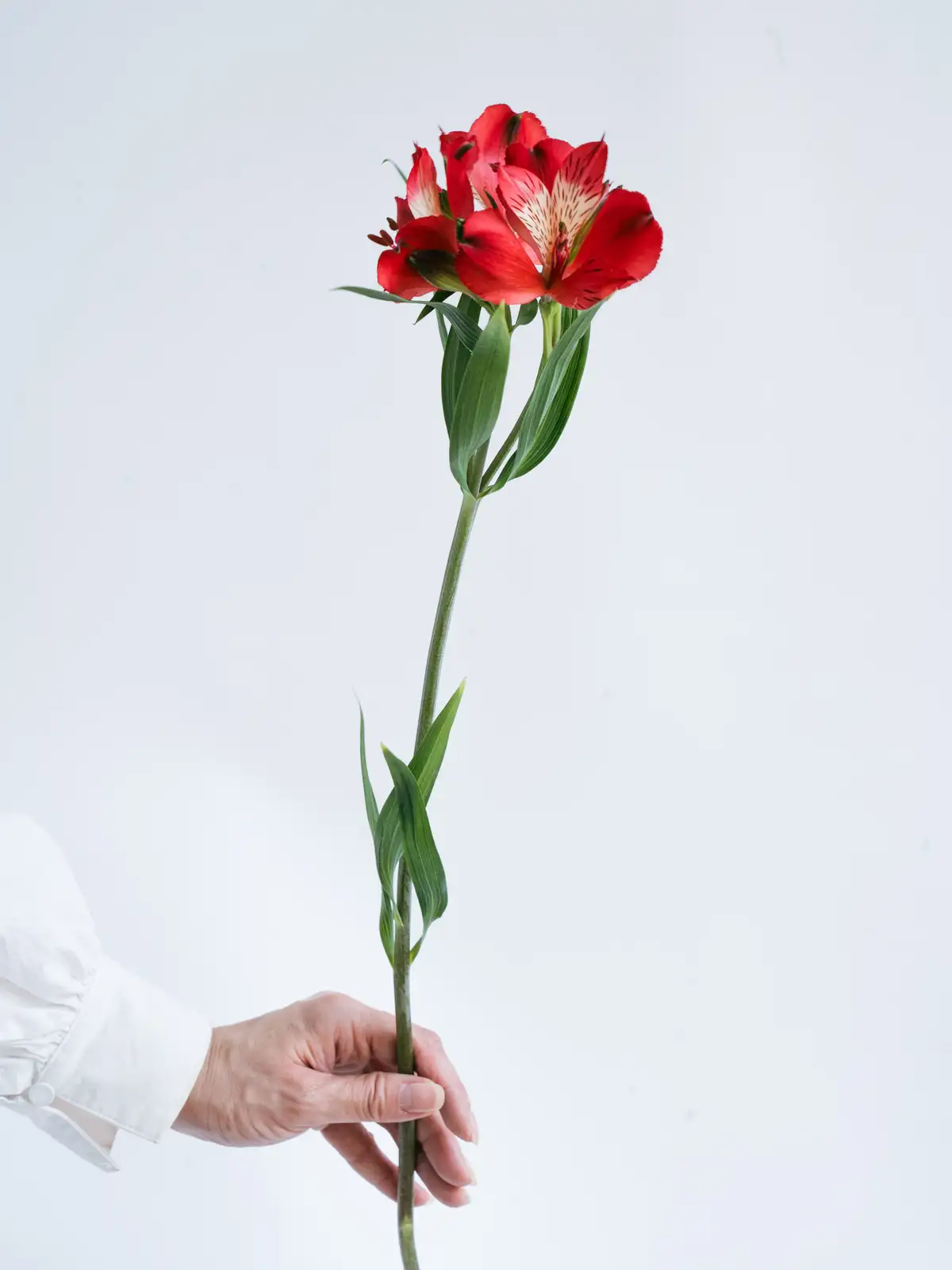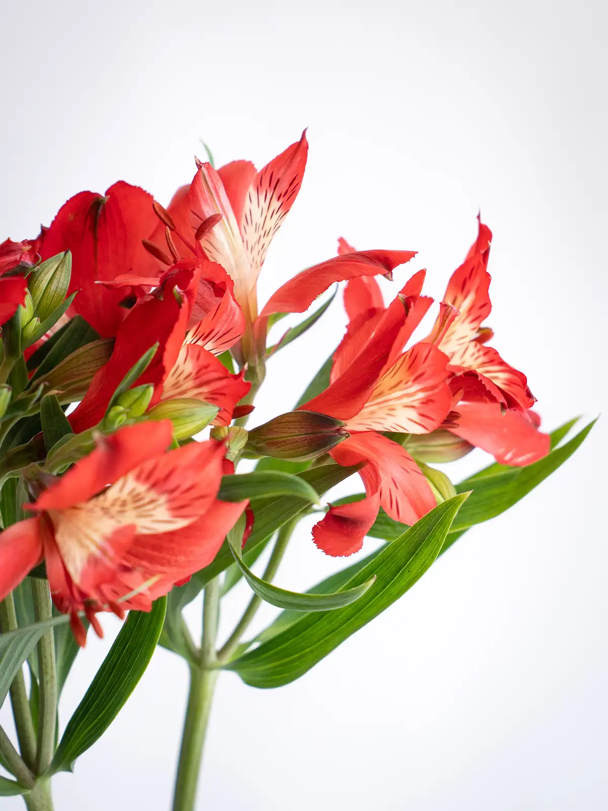 落ち着いた赤色がエレガントな印象のアルストロメリア。大人っぽいアレンジに適しています。