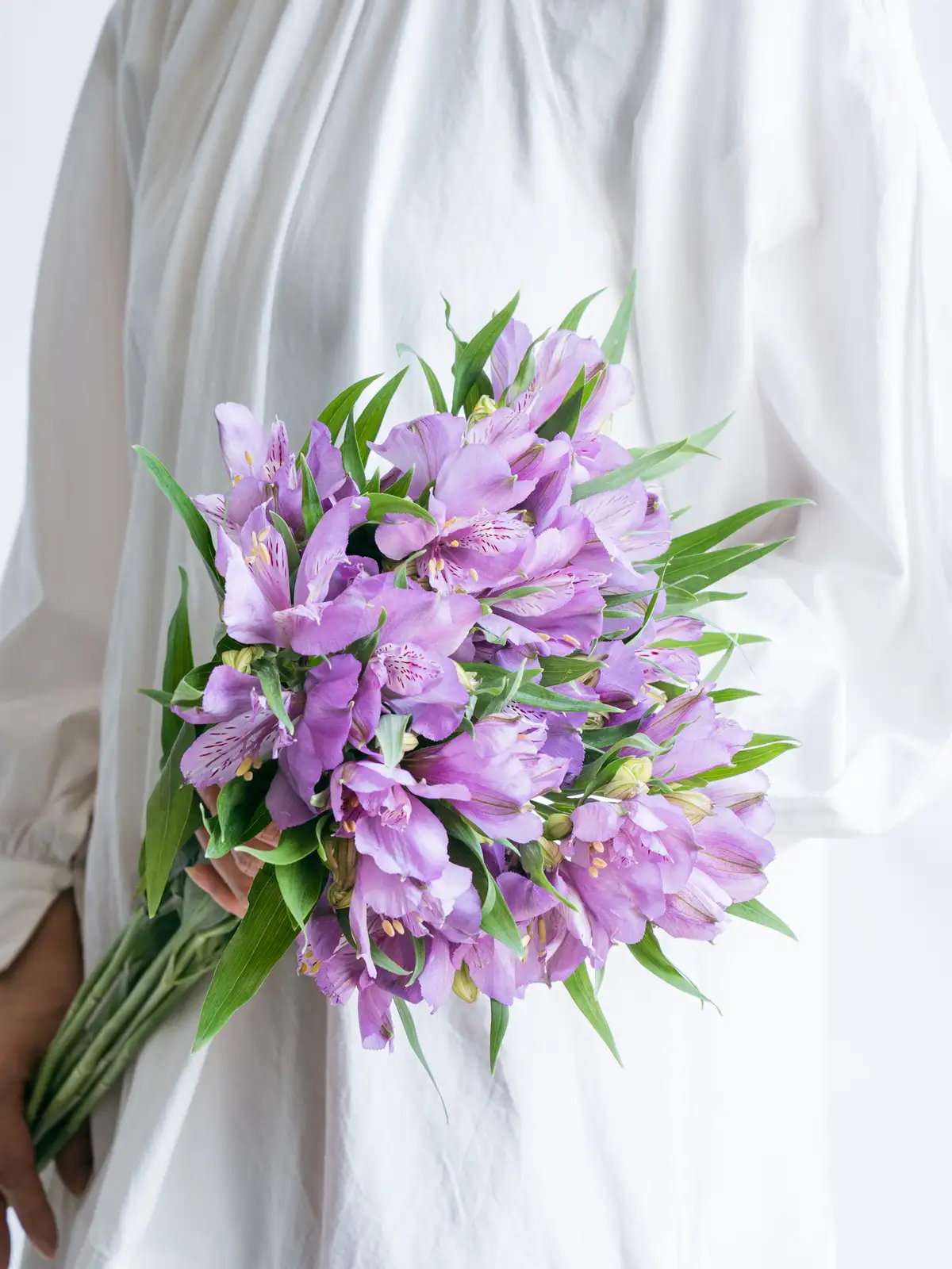 落ち着いた紫色が気品を感じさせるアルストロメリア。シックなアレンジに適しています。