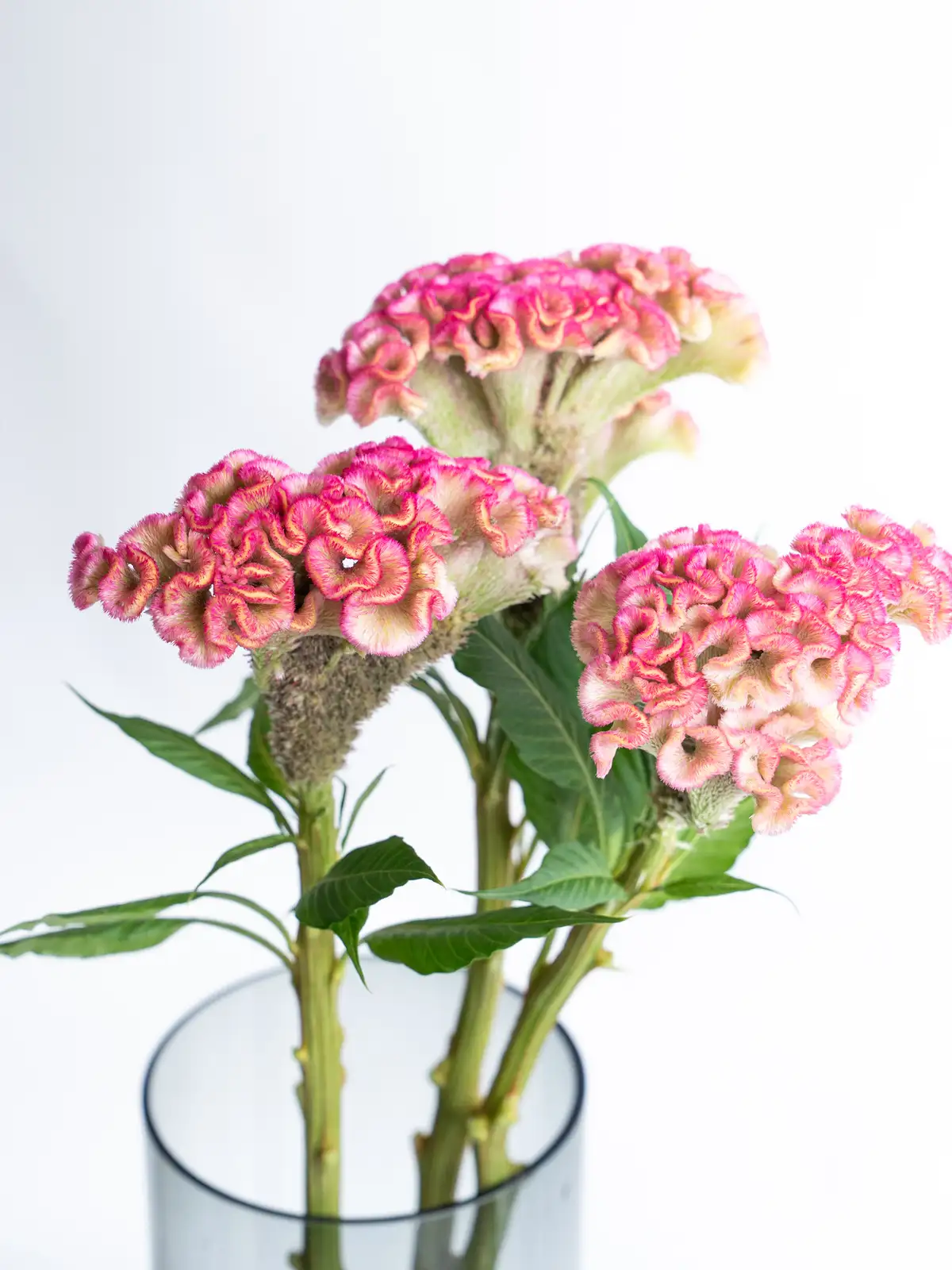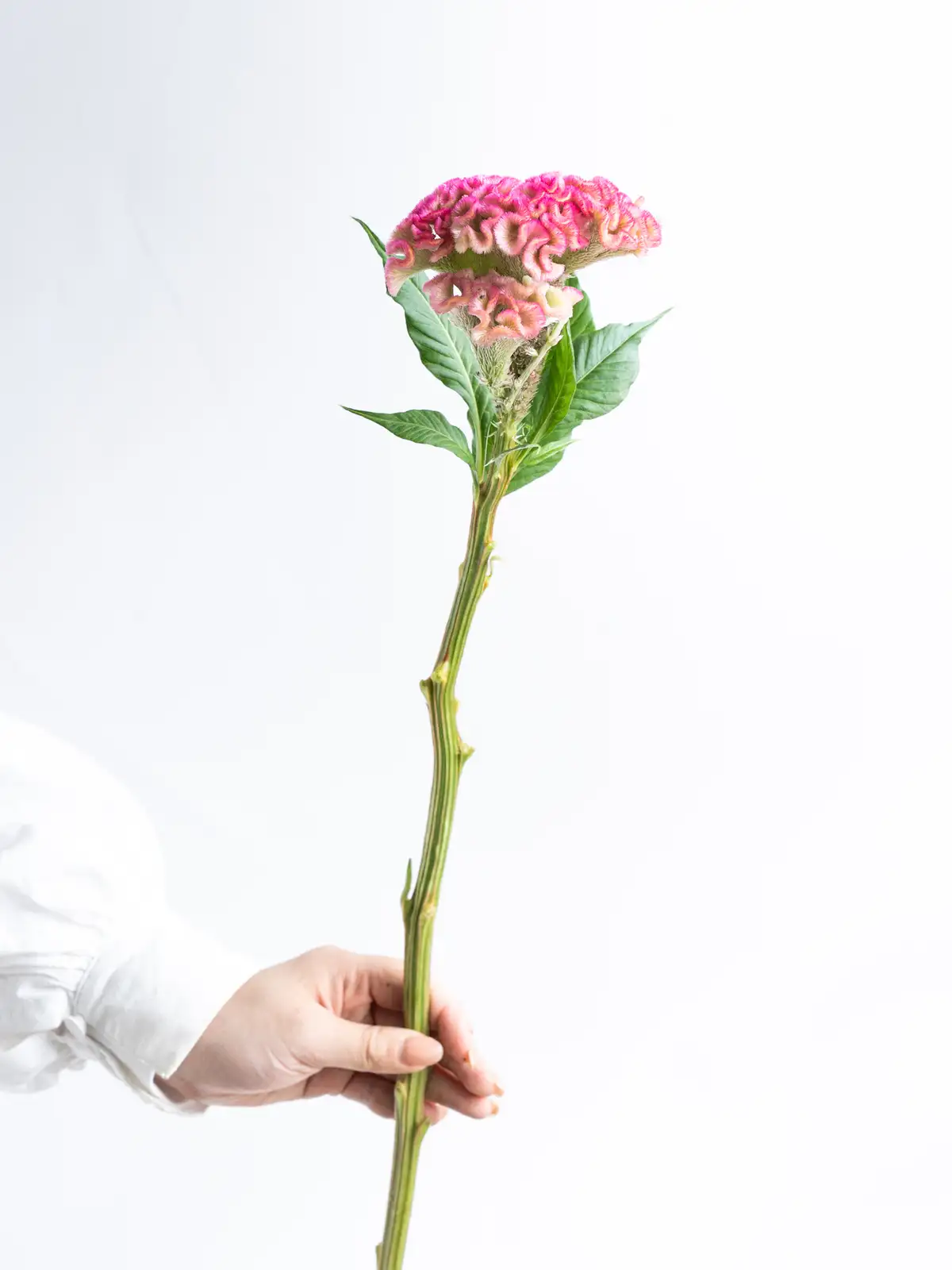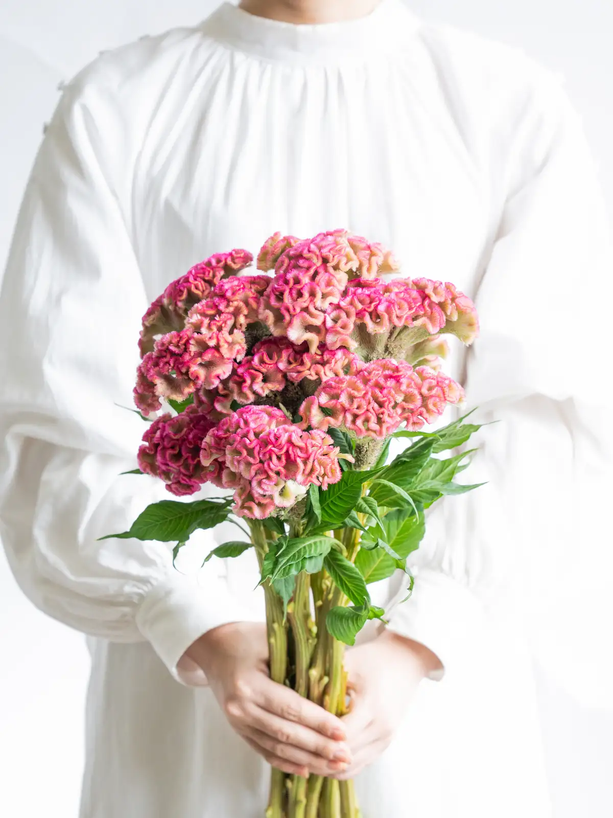 明るく華やかなピンクの花が特徴。動きのあるアレンジにおすすめです。