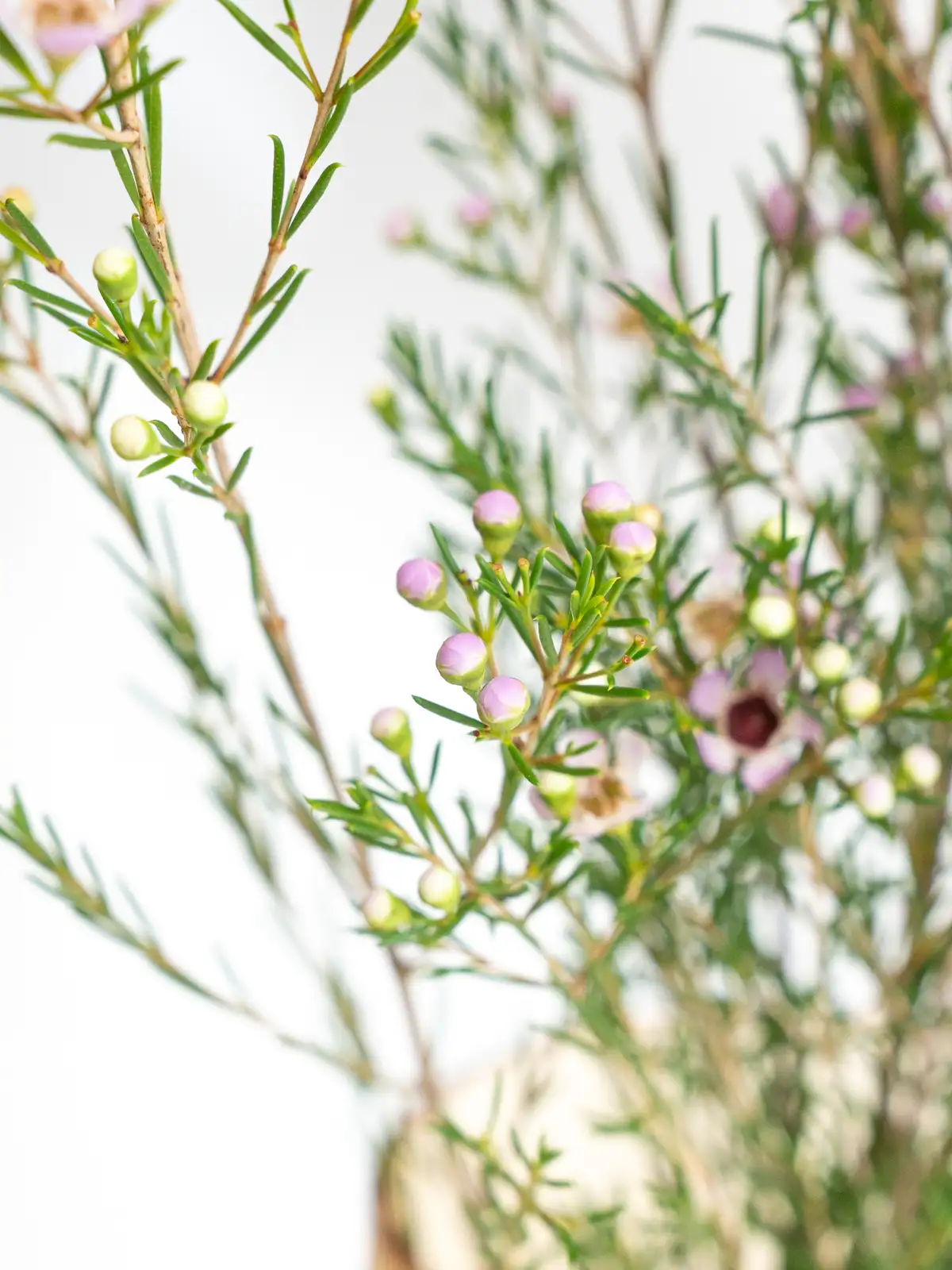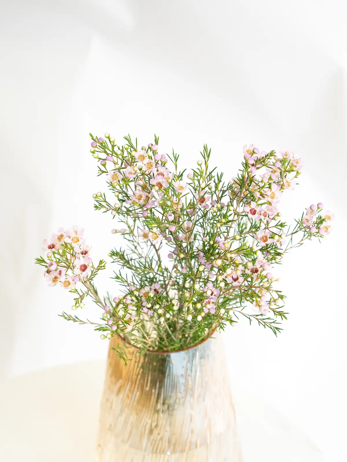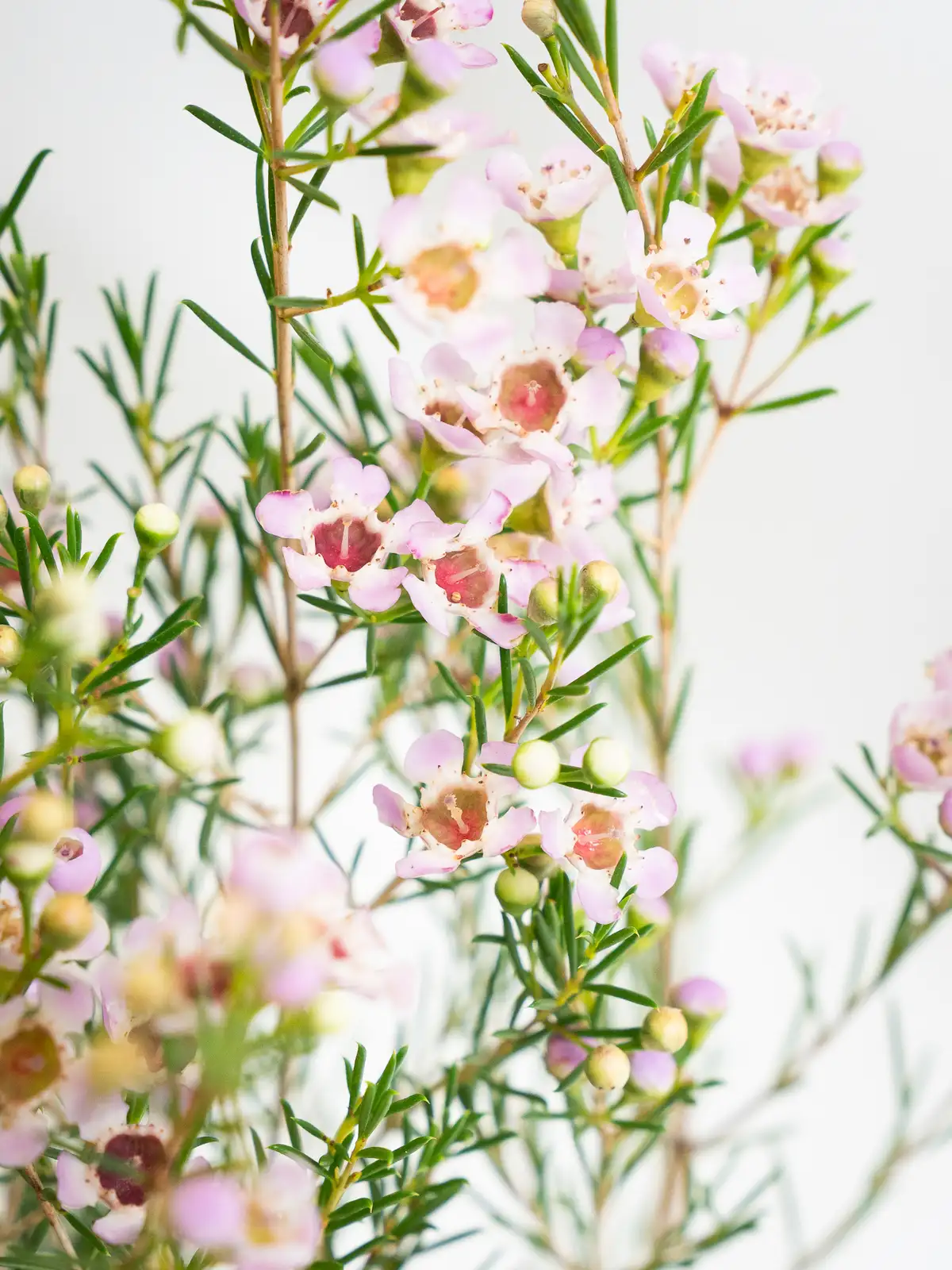 淡いピンクの小花が特徴。可憐でやさしい印象を与える花材です。