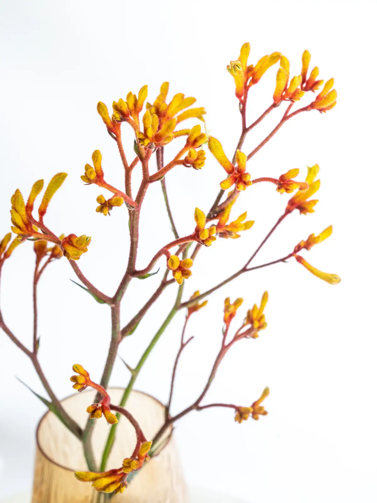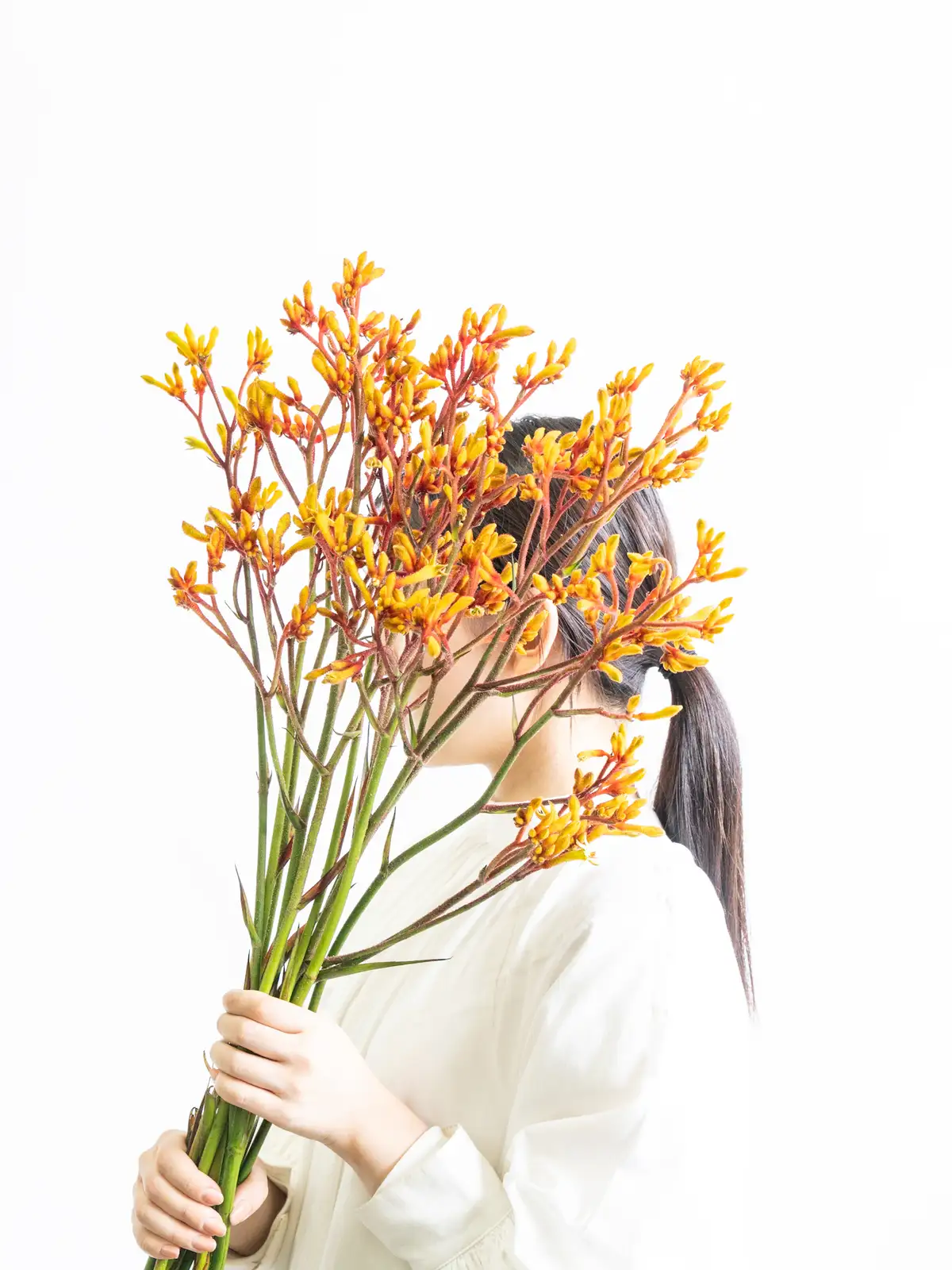 ビビッドなオレンジが印象的なカンガルーポー。南国風の演出に最適です。