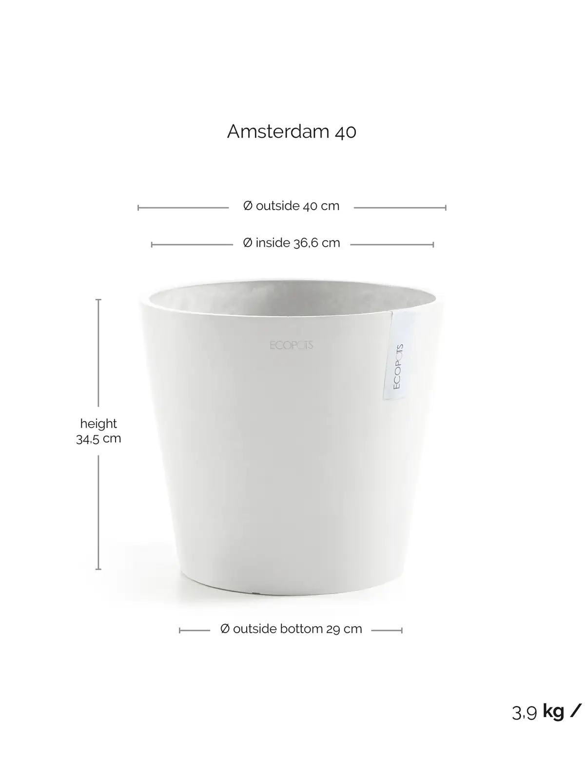 鉢カバー XL ECOPOTS Amsterdam40 ピュアホワイト