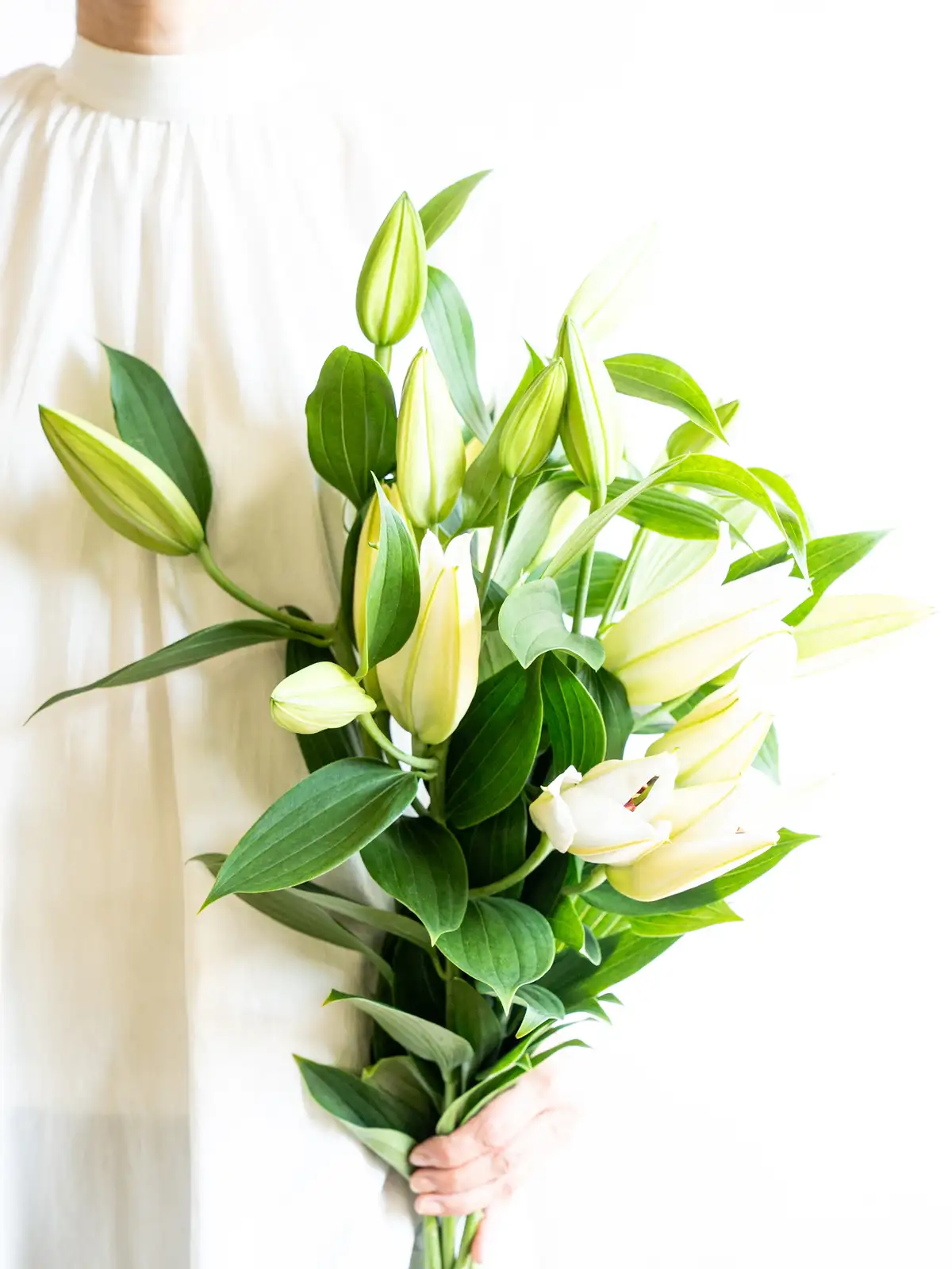 気品ある白色で高級感のあるオリエンタルリリー。フォーマルな装飾に最適です。