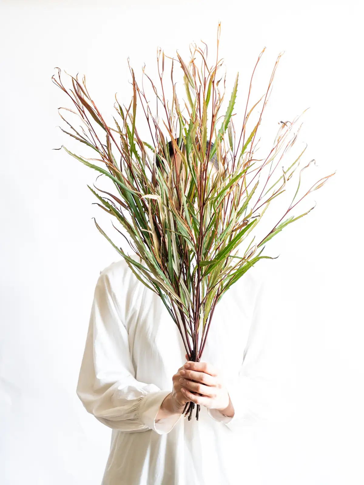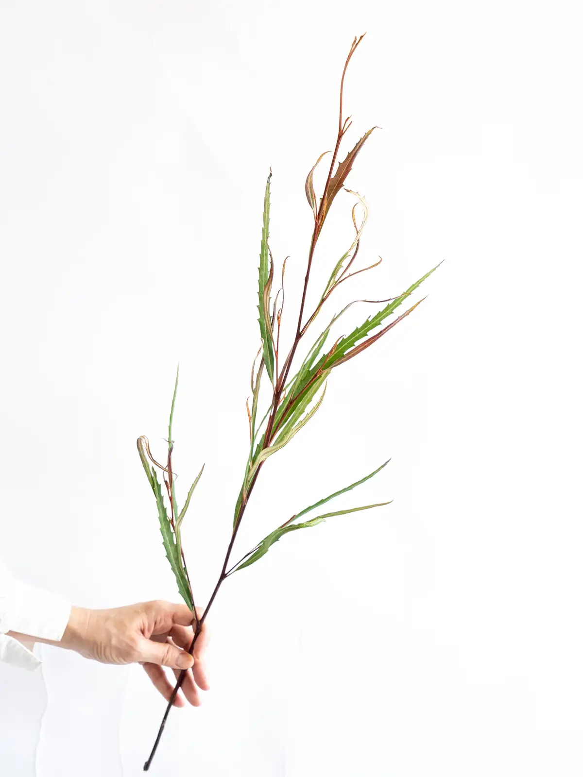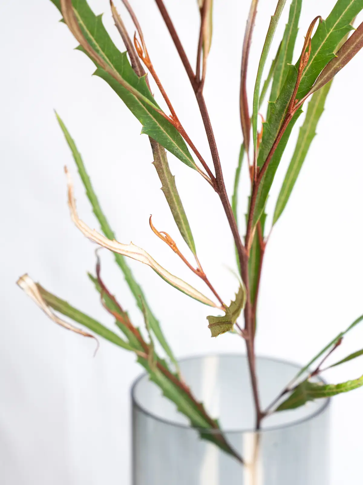 細い葉と独特の花形が特徴のグレビレア。個性的なアレンジにおすすめです。