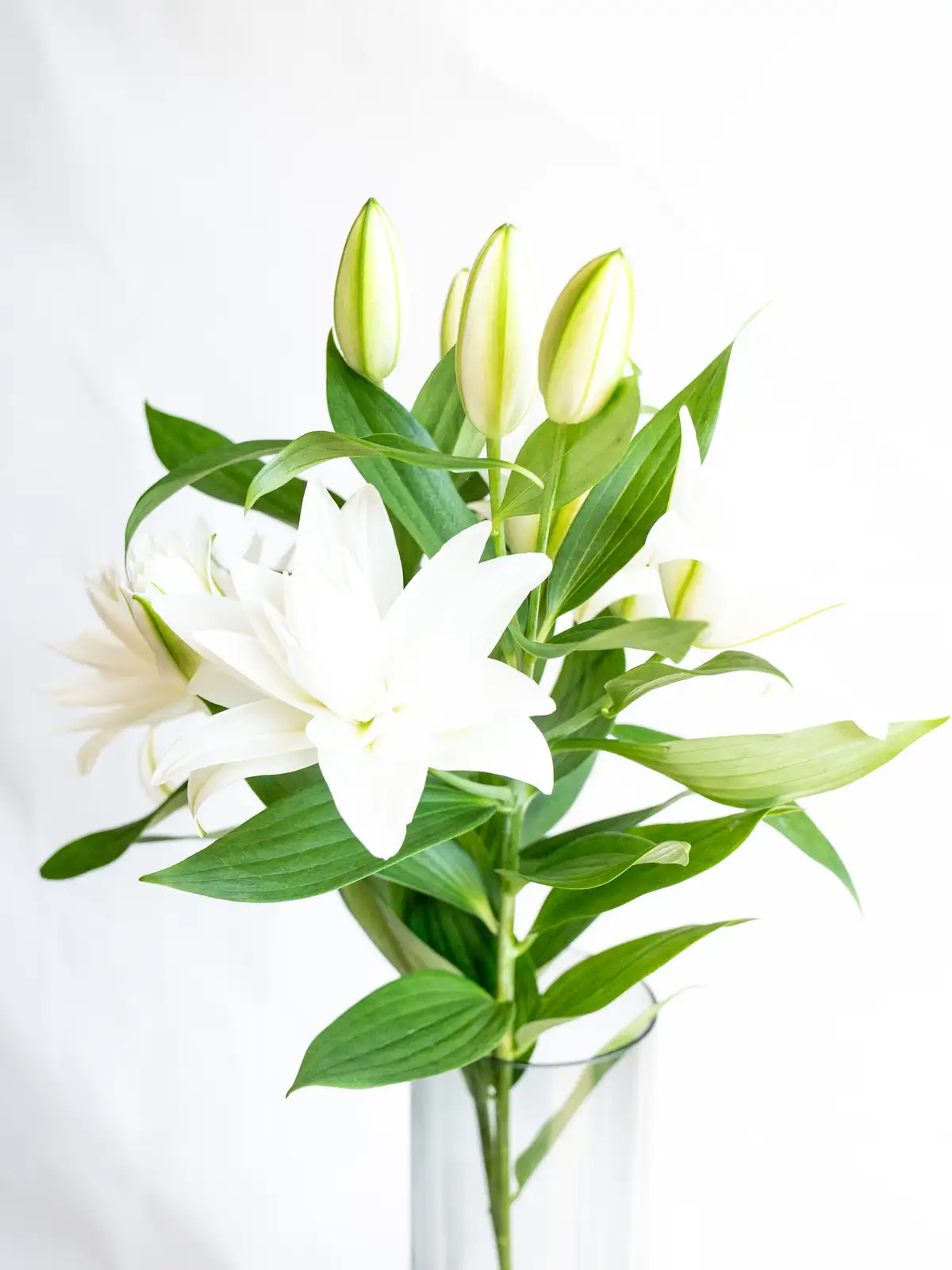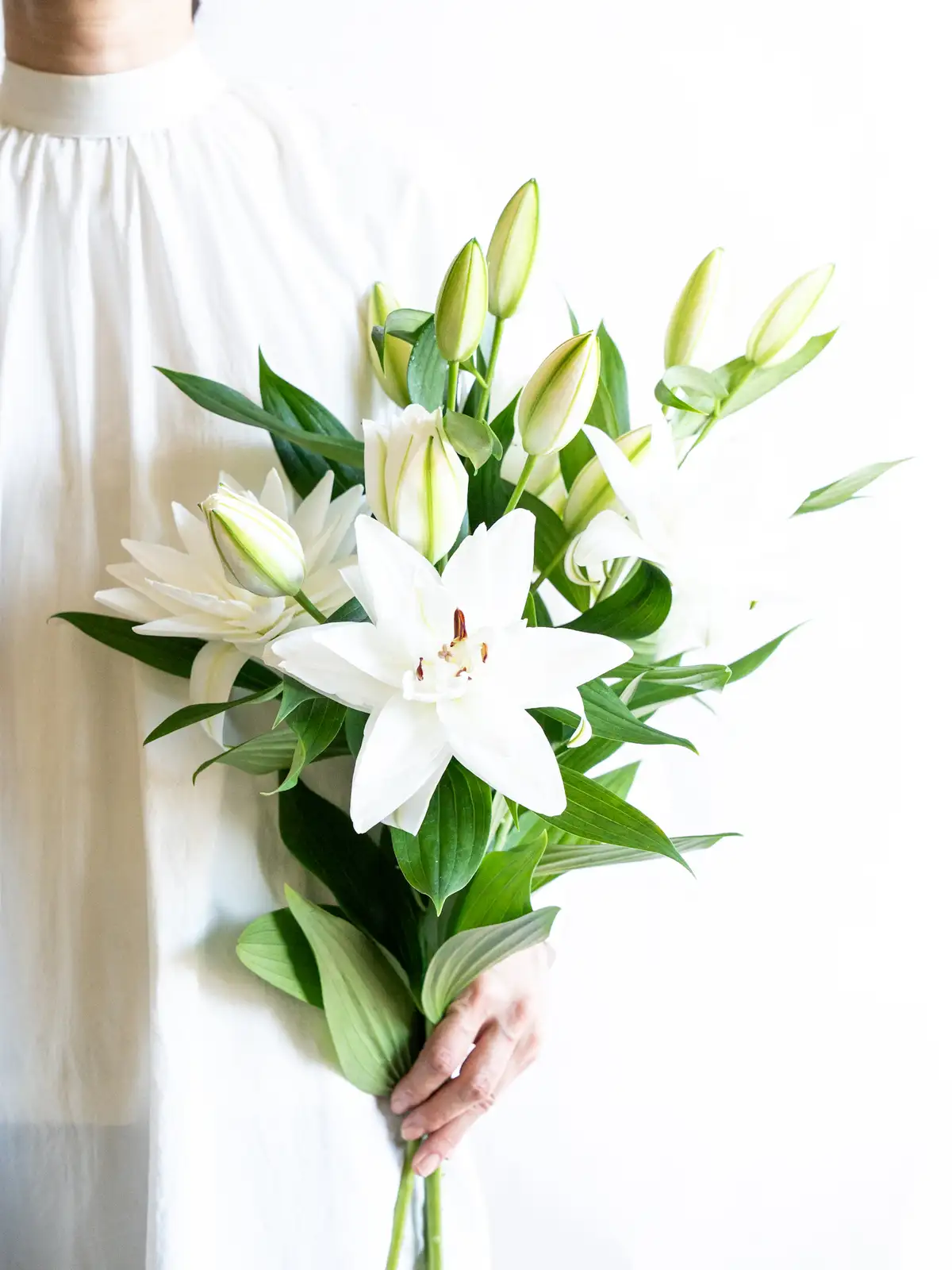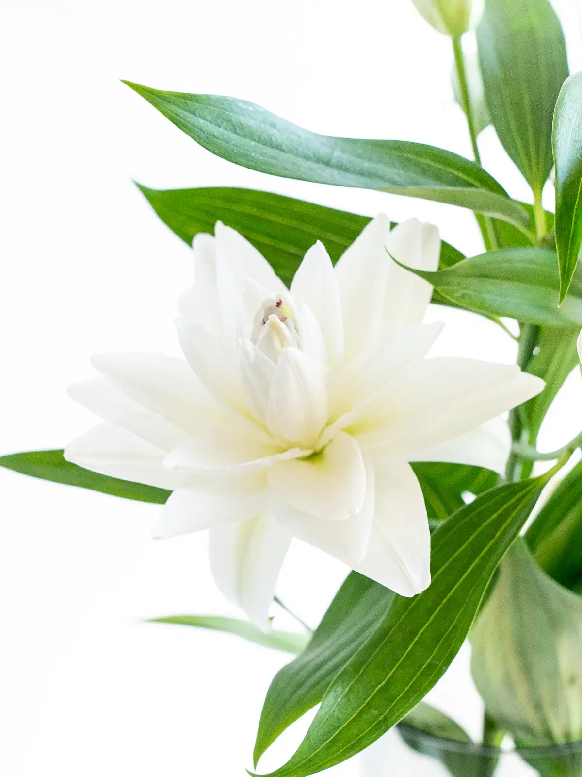 上品な白色が特徴の品種。清楚で気品ある印象のアレンジにおすすめです。