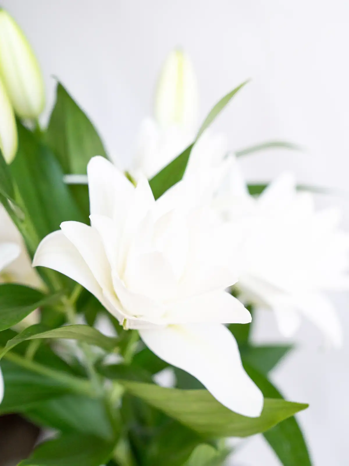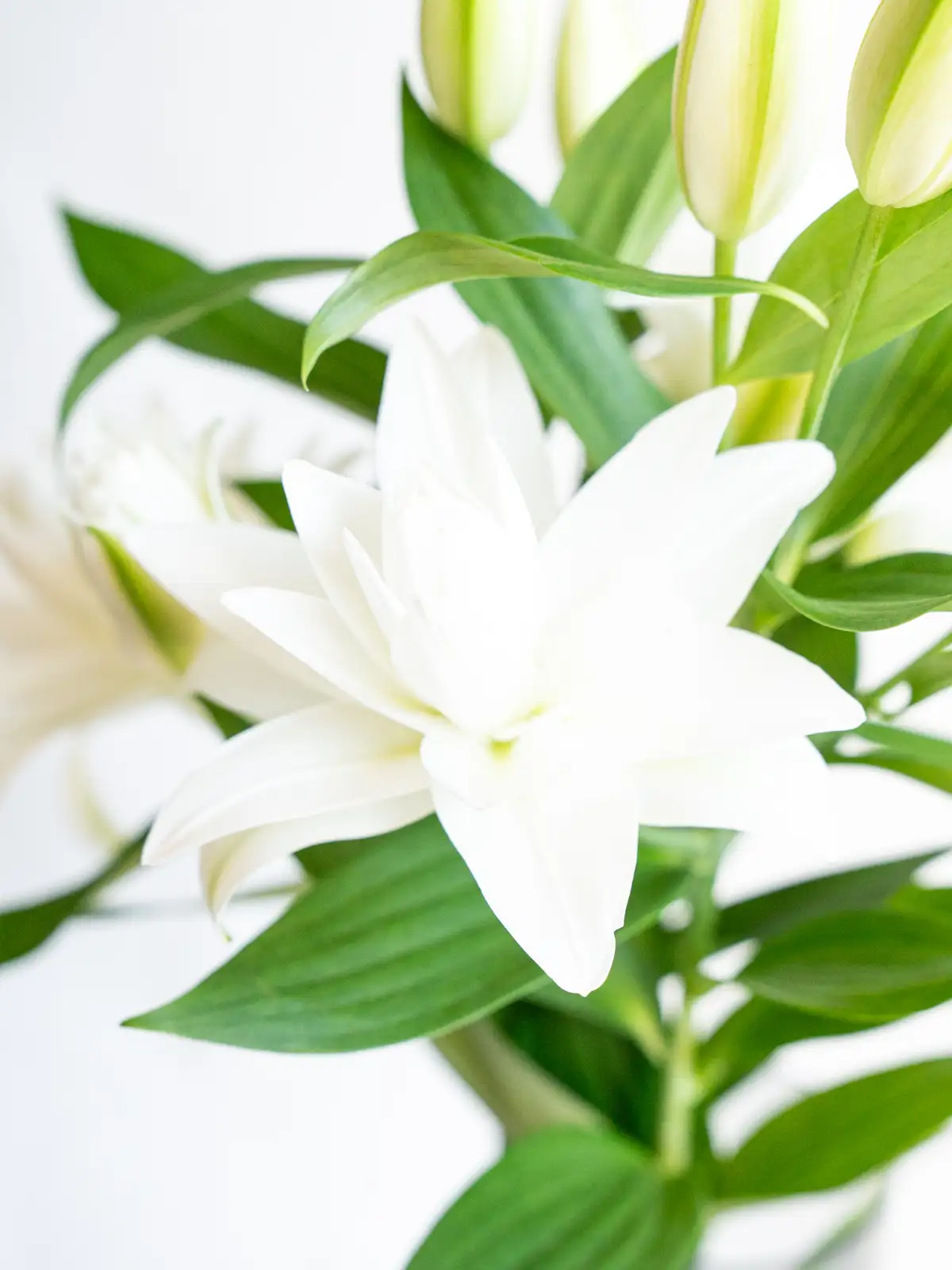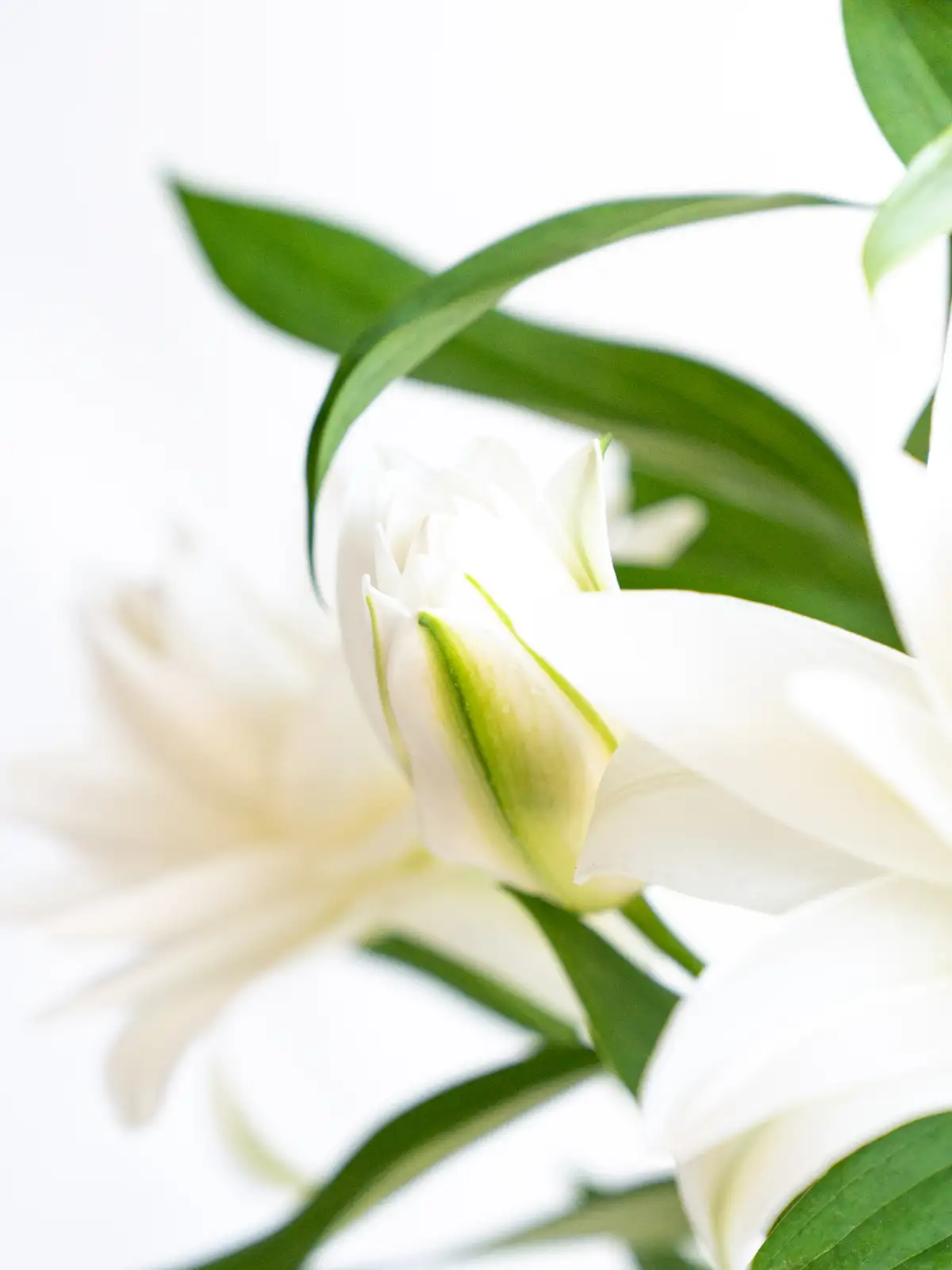 上品な白色が特徴の品種。清楚で気品ある印象のアレンジにおすすめです。