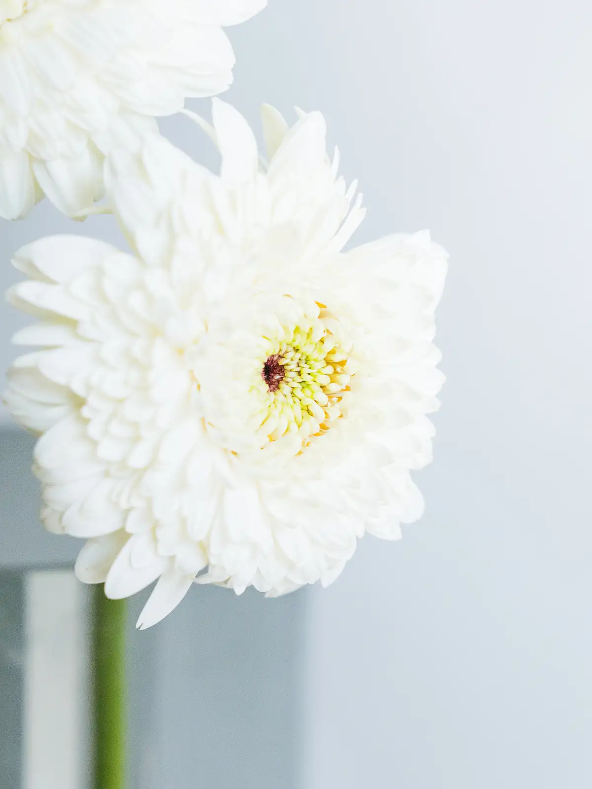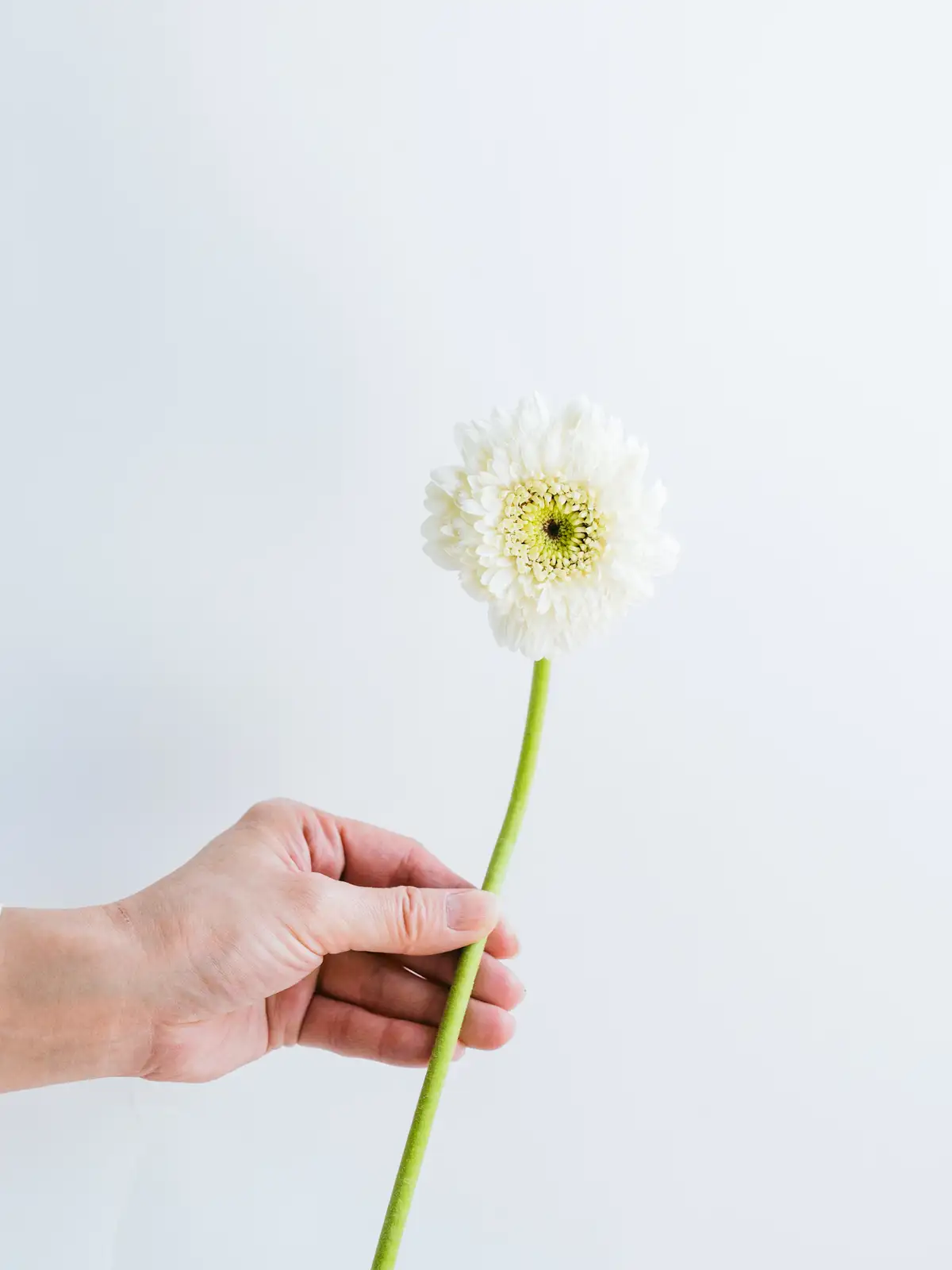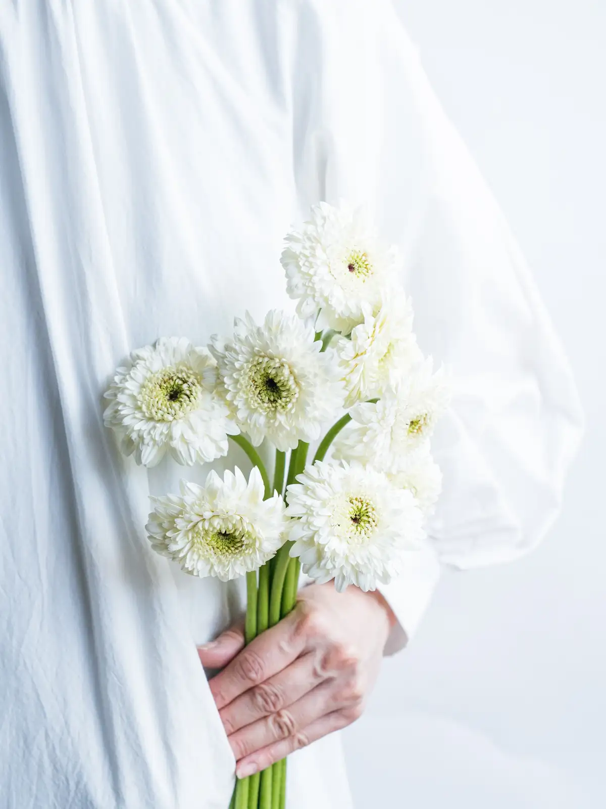 純白の花弁が清楚な印象のガーベラ。ギフトや装飾用に使いやすい花材です。