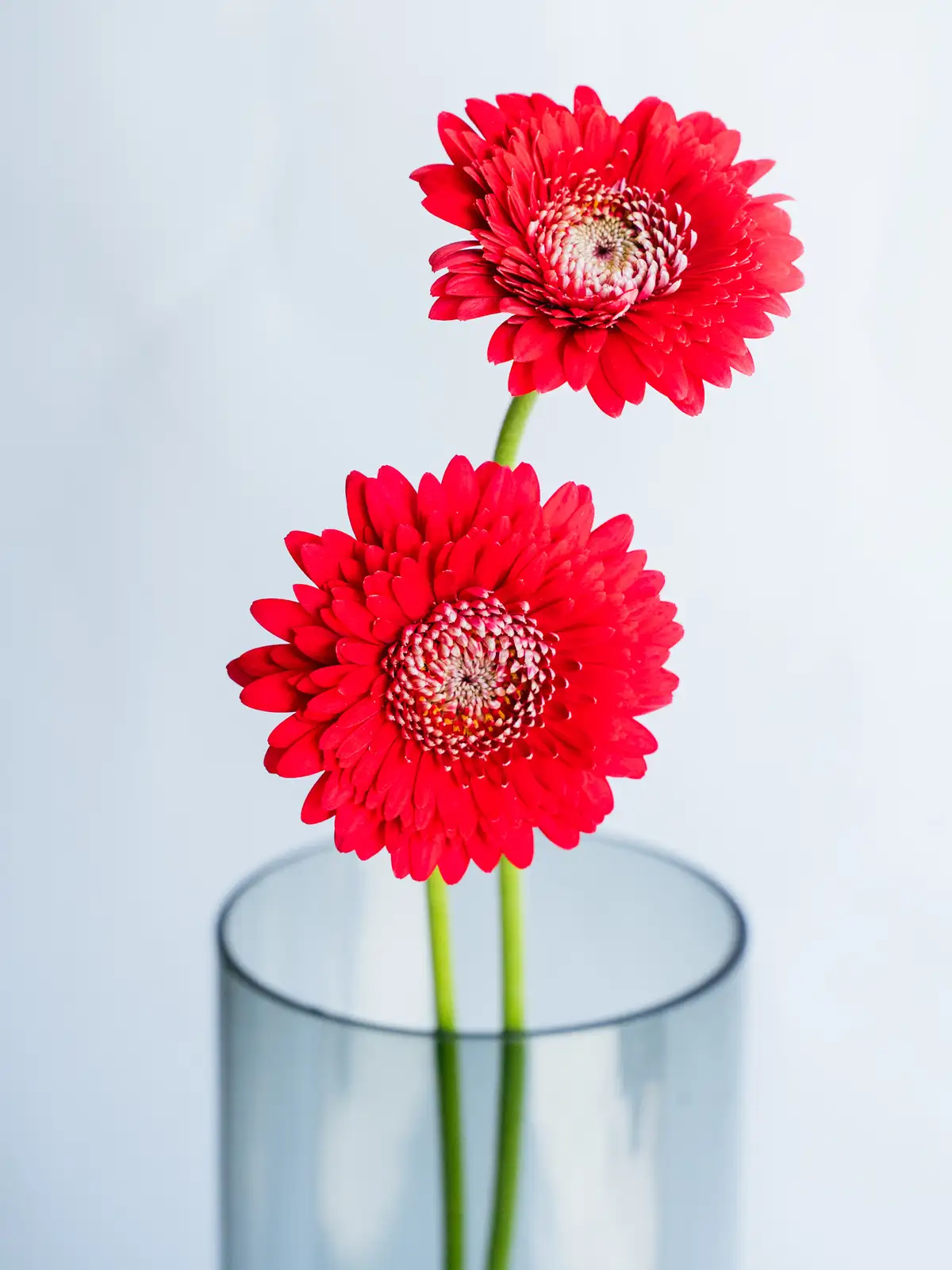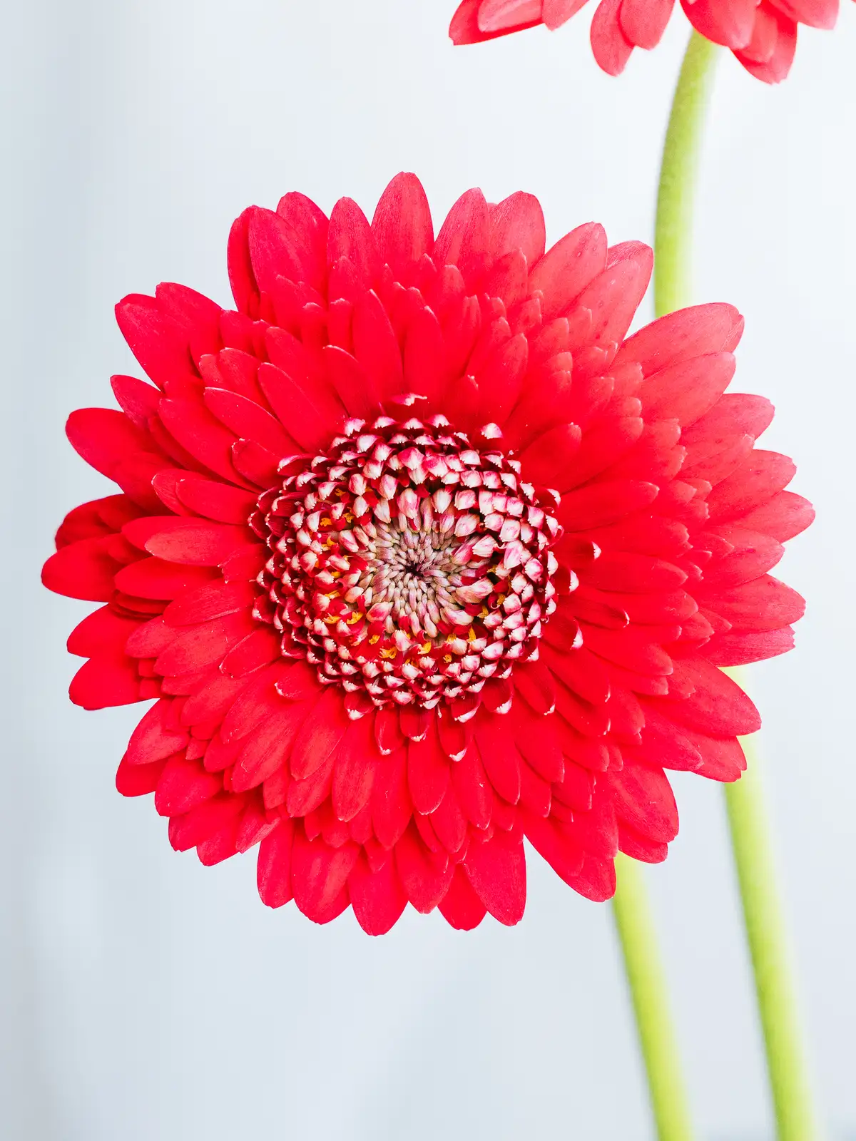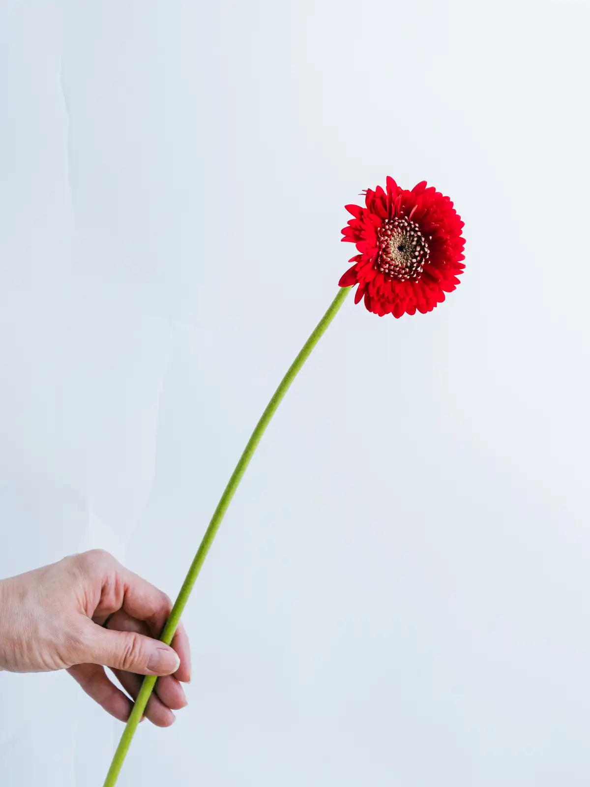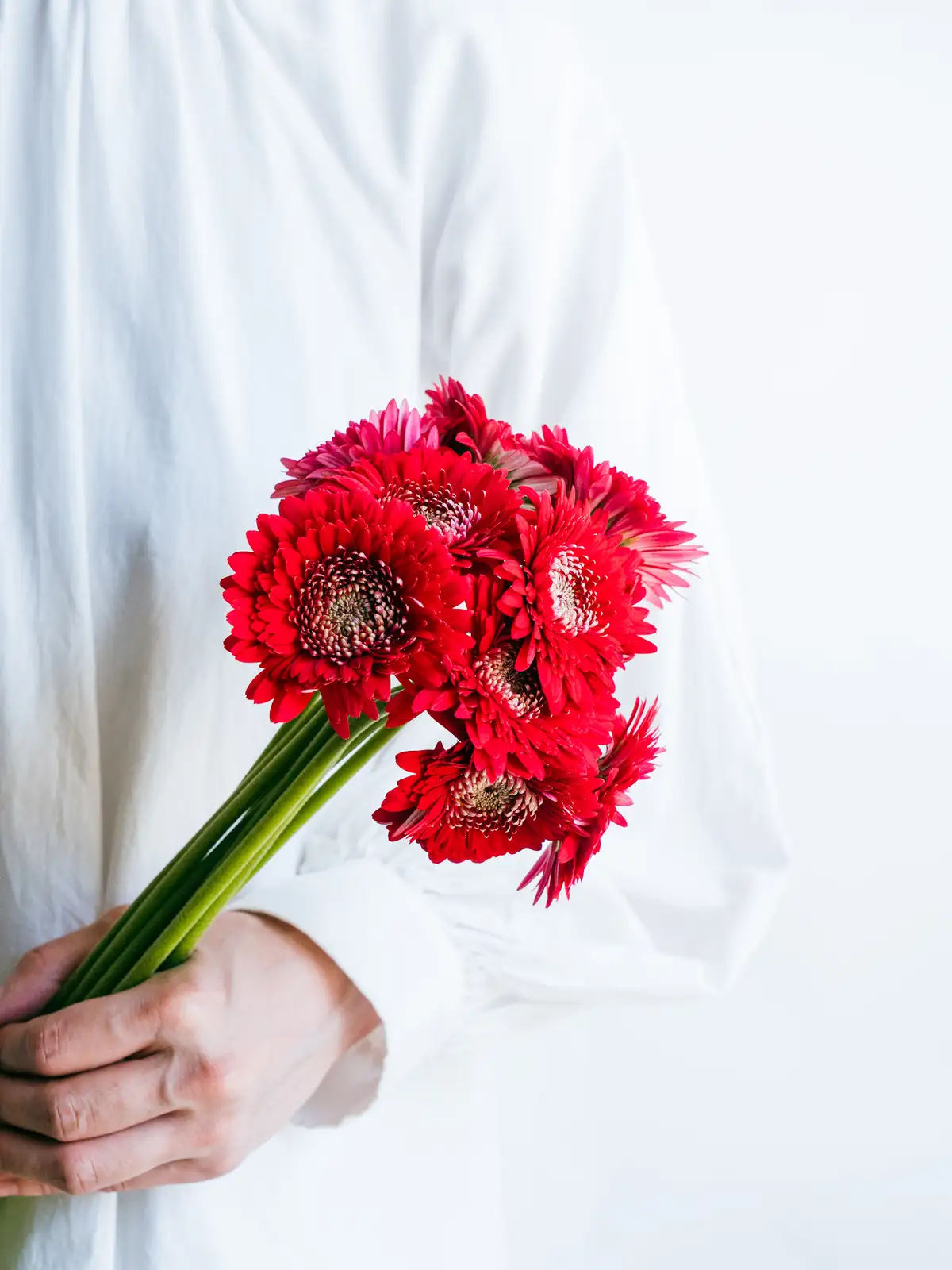 深い赤色の花弁が華やかなガーベラ。イベント装飾やギフトにおすすめです。