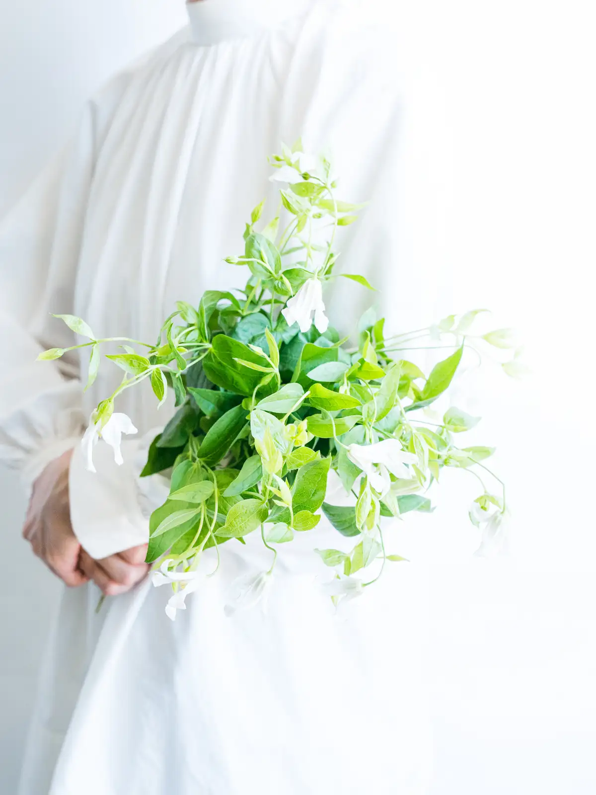 純白の花弁が上品なテッセン。ブライダルや和風アレンジにおすすめです。