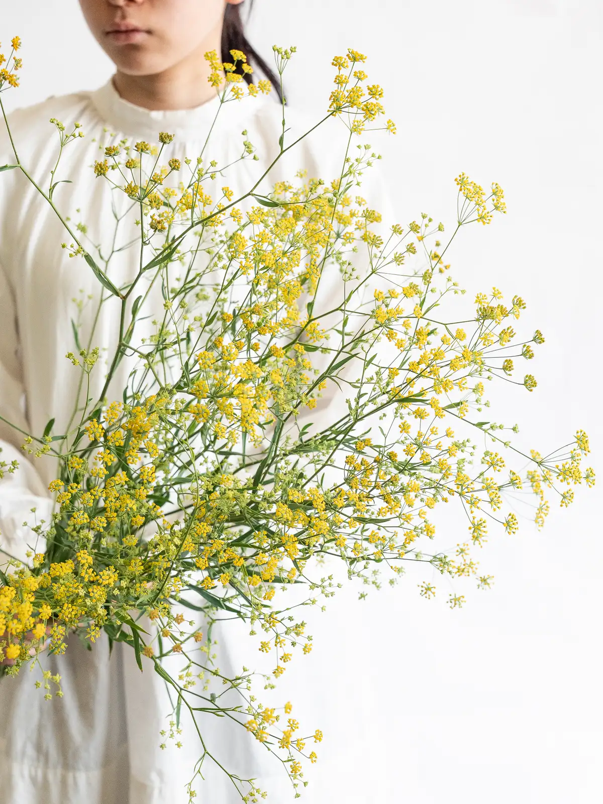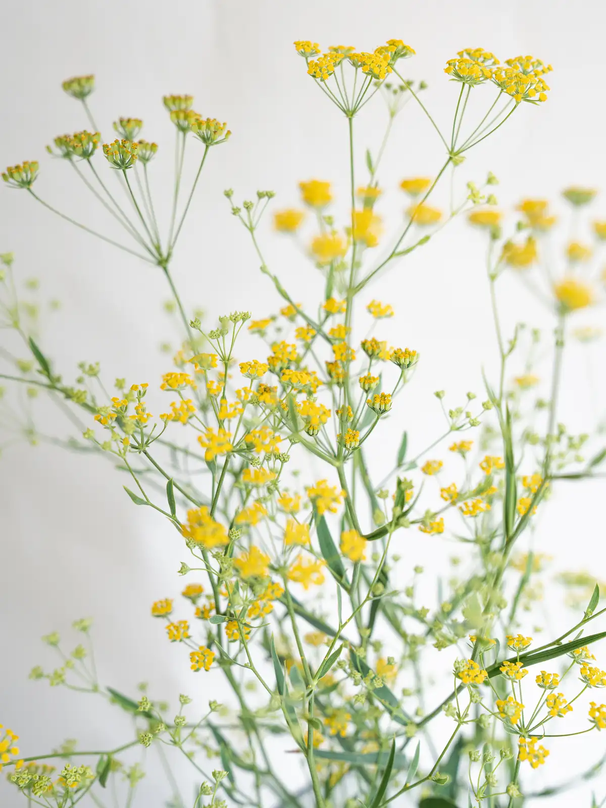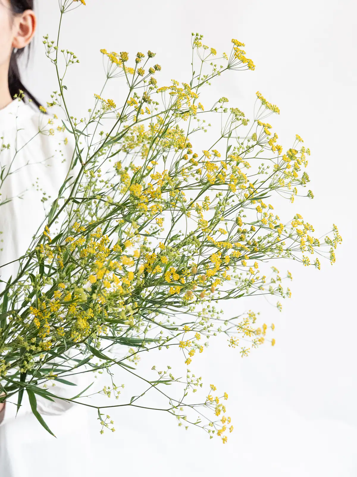 細やかな黄色の花と枝ぶりが特徴。動きのあるアレンジに活用できます。