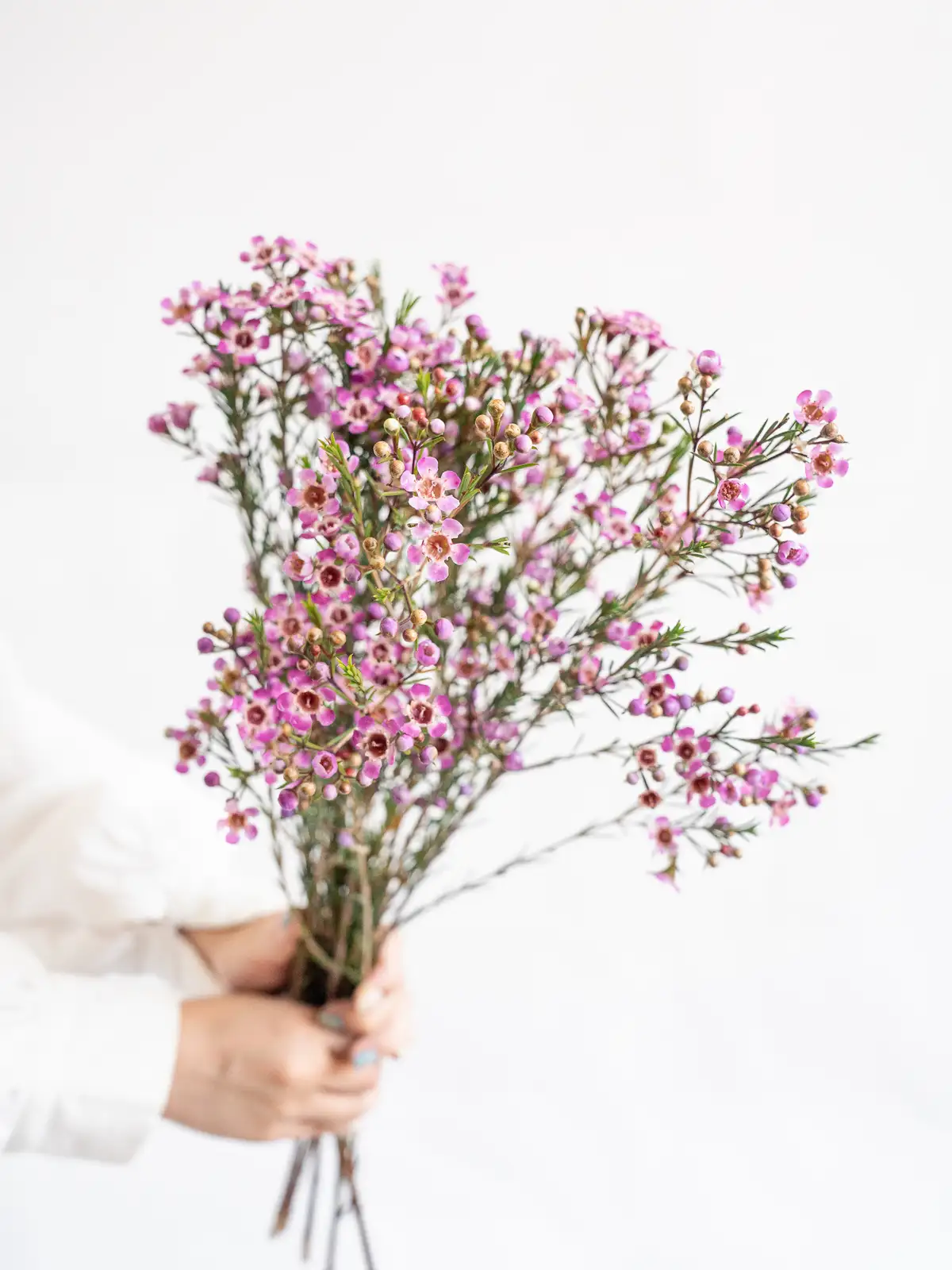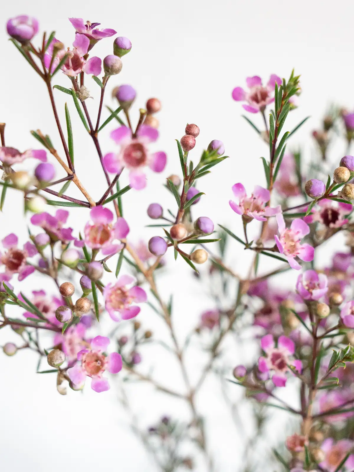 繊細な小花が魅力のワックスフラワー。紫の彩りがアクセントに映えます。