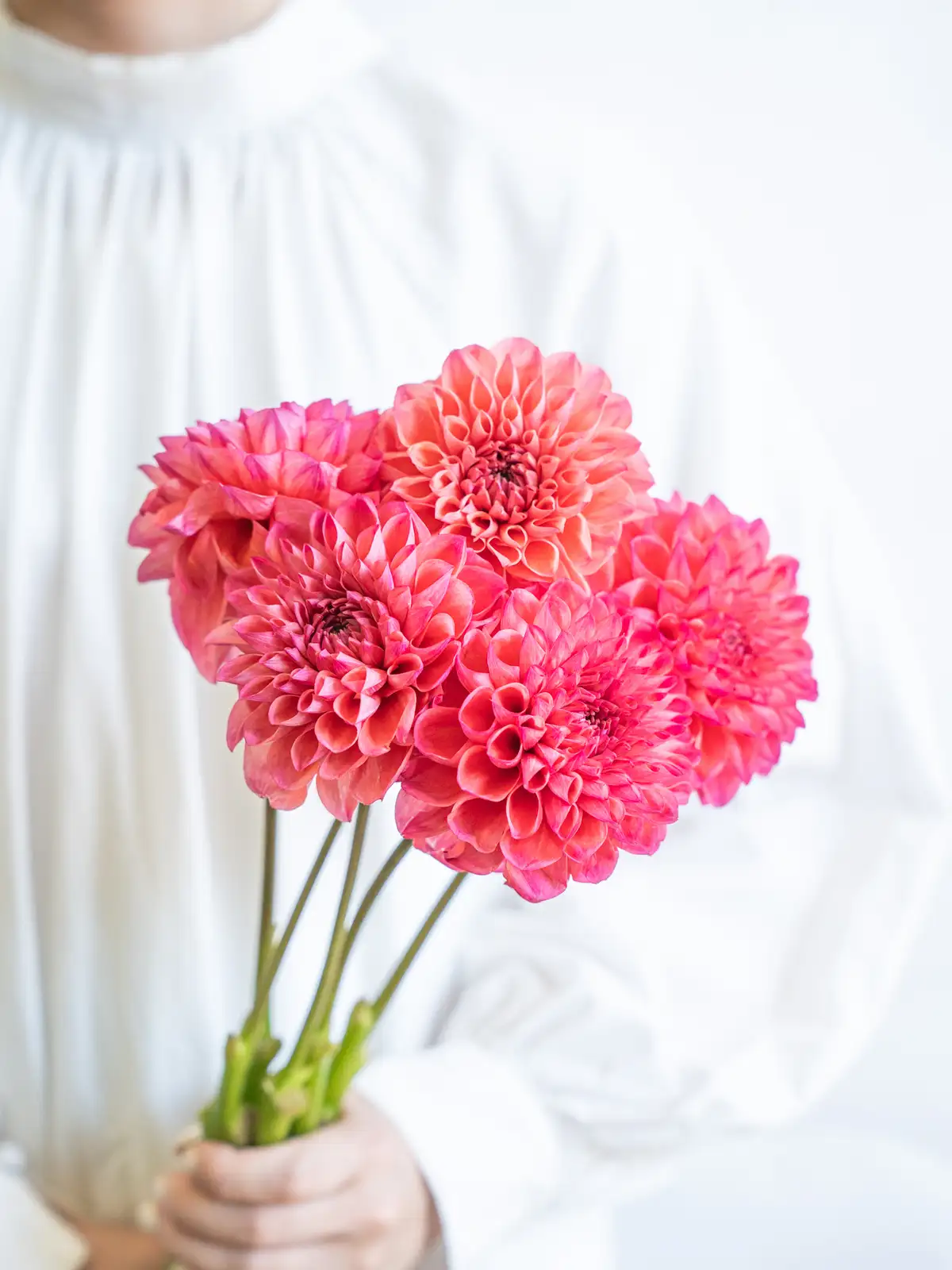 入荷した花は1本ずつ丁寧に水揚げ処理を行い、発送までしっかり管理。斜め切り・ハンマー叩きなど、花に合わせた水揚げを行います。届いた瞬間から、美しく咲く準備が整った状態でお届けします。