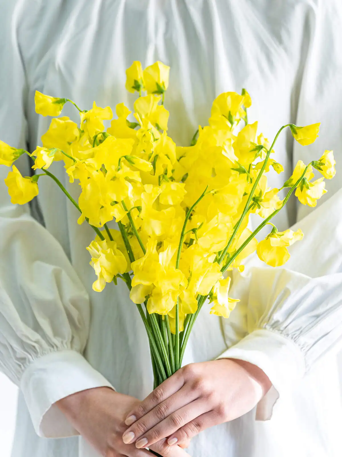 明るく元気な黄色のスイートピー。ビタミンカラーとして、春のアレンジやギフトに明るさを添えます。ボリュームは入荷時期・産地によりイメージと異なる場合がございます。予めお含みおきください。