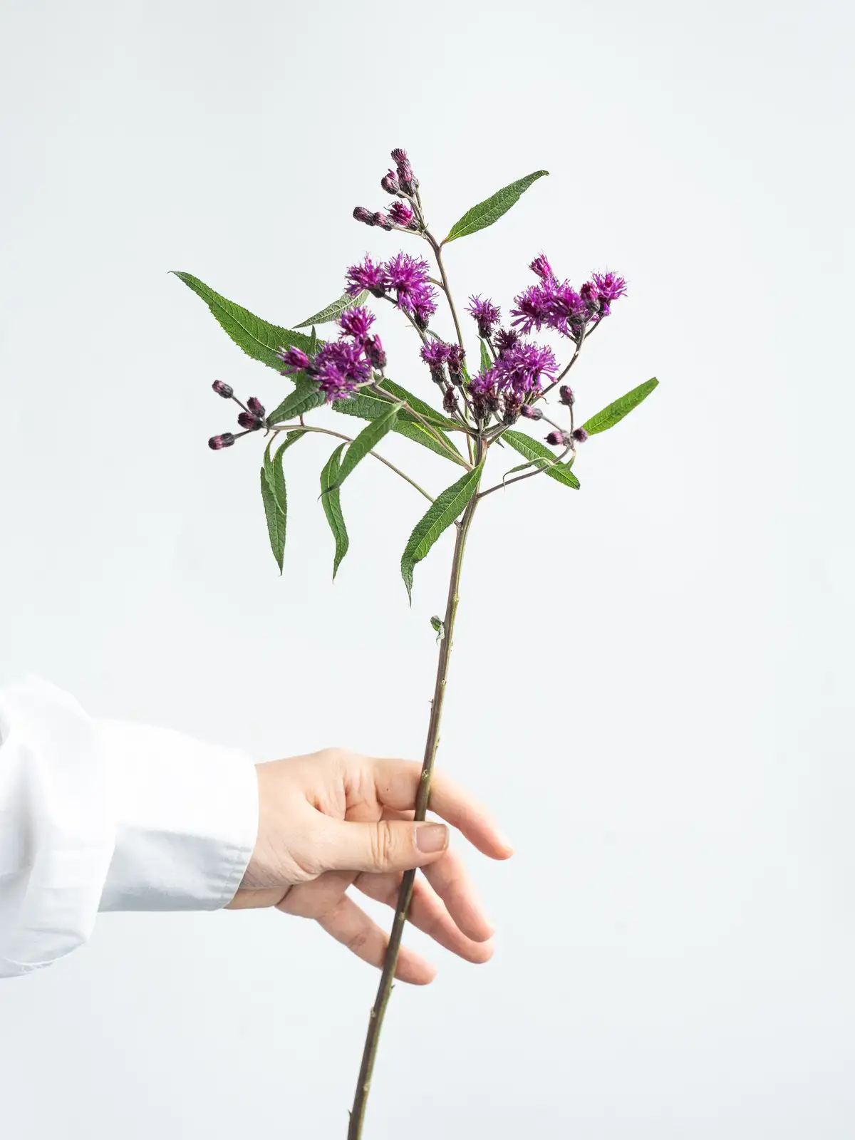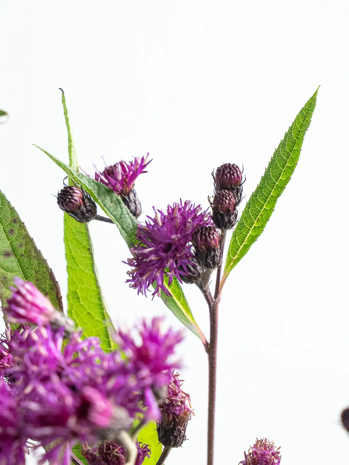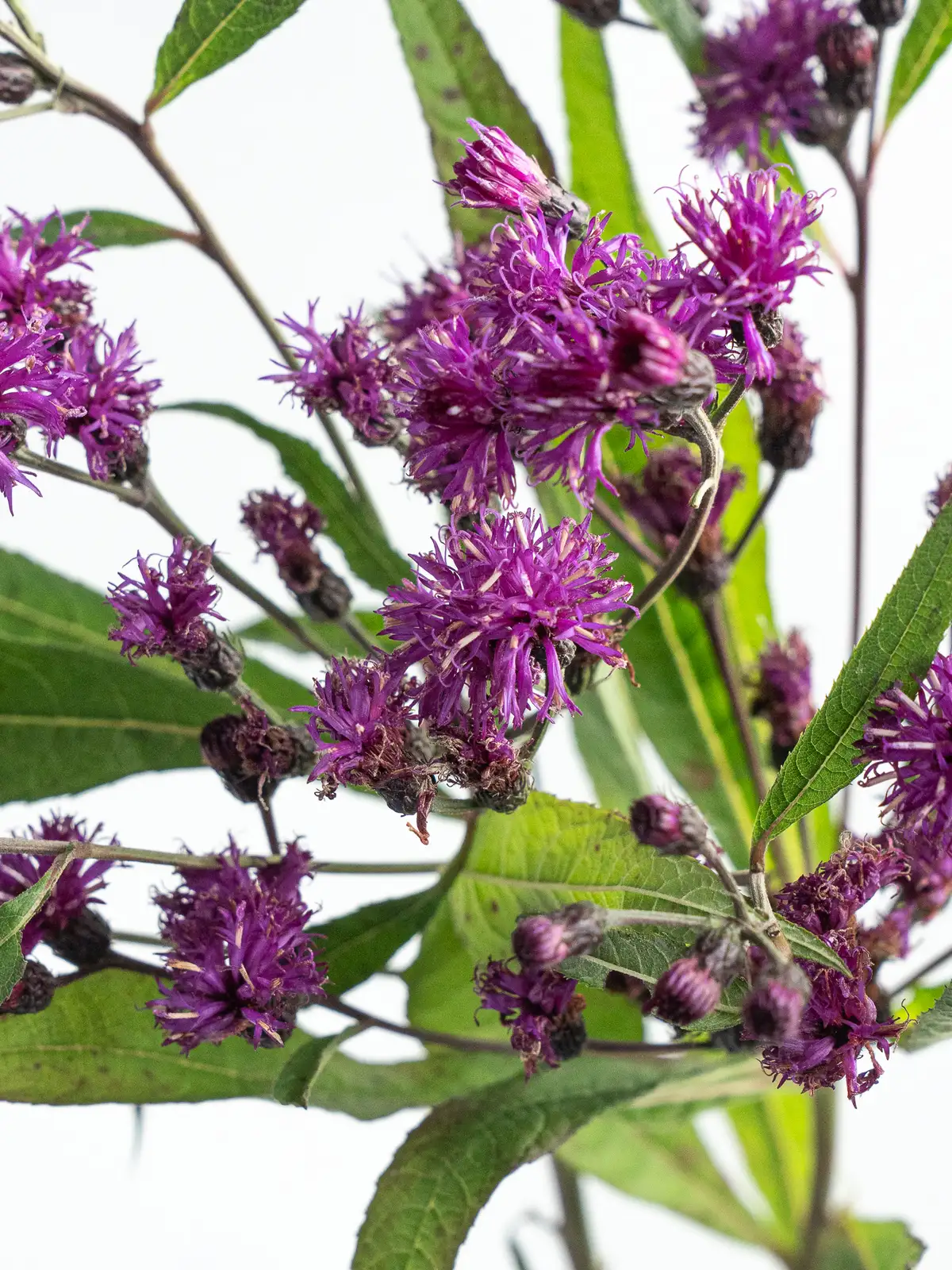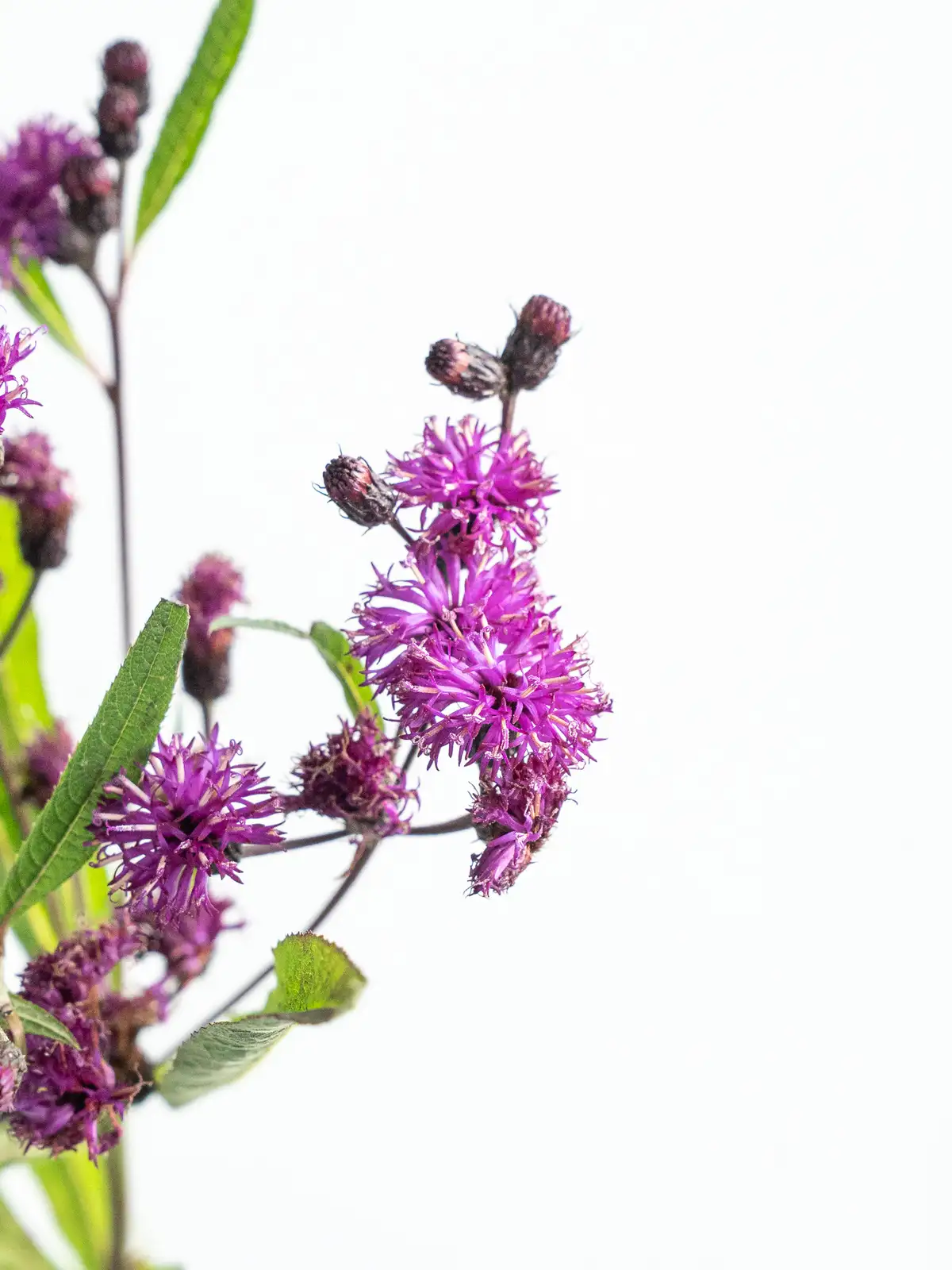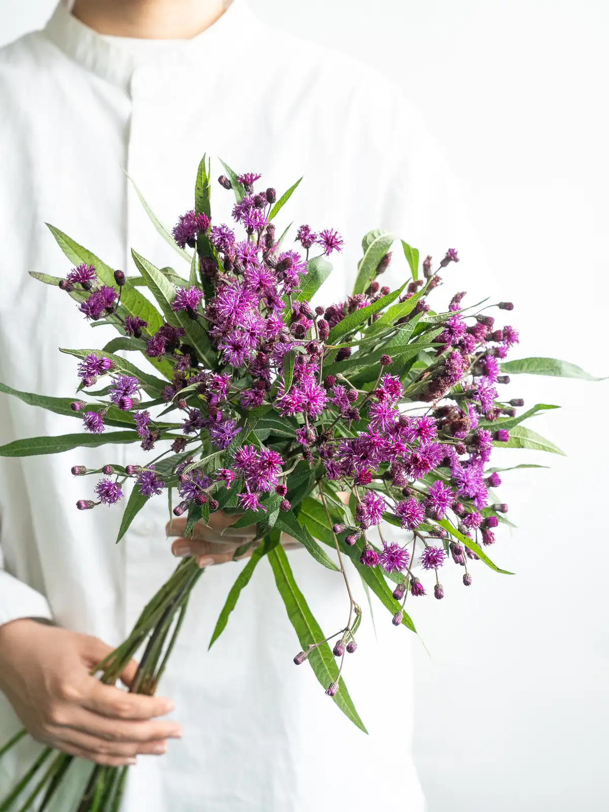 深い紫色が美しいヴェルノニア「ノウェボラケンシス」。個性的な色合いで、花束や装飾にアクセントを加える花材です。