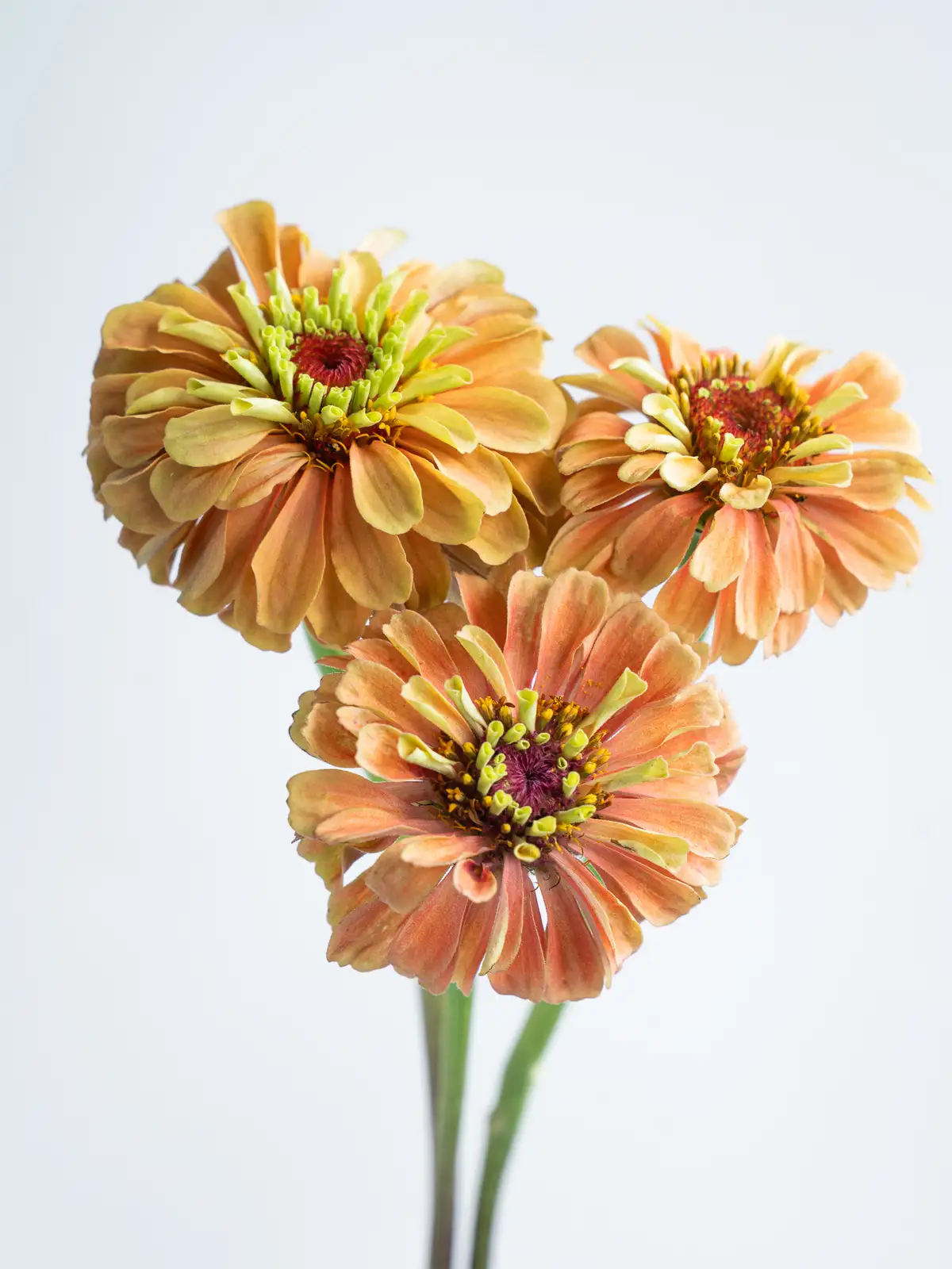 オレンジにライムのニュアンスが加わった「クイーンライムオレンジ」。ブライダルや秋のディスプレイに使うと印象的な彩りを添えます。