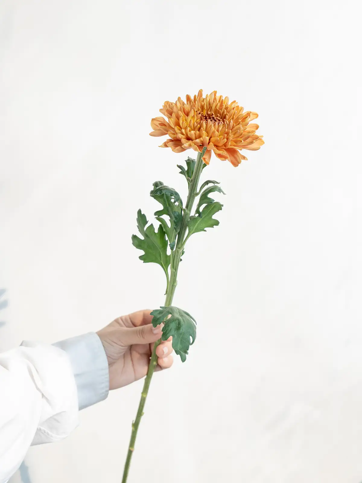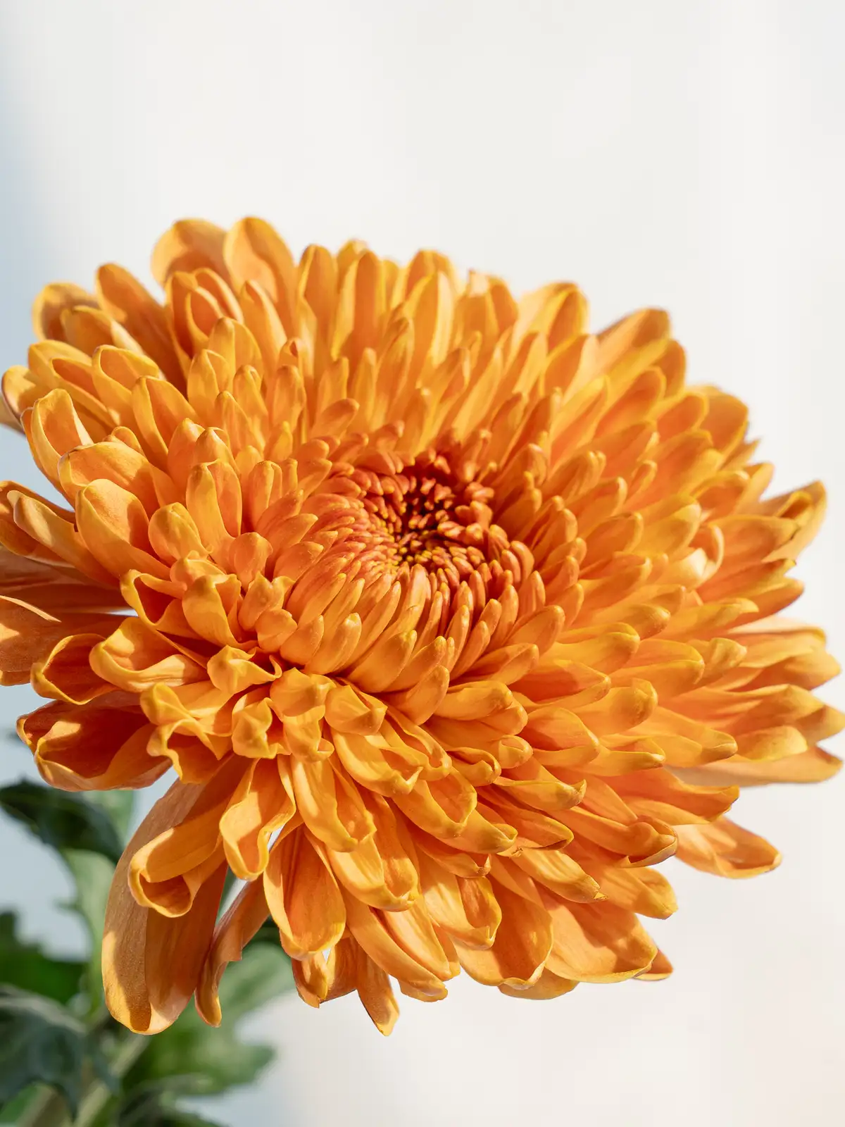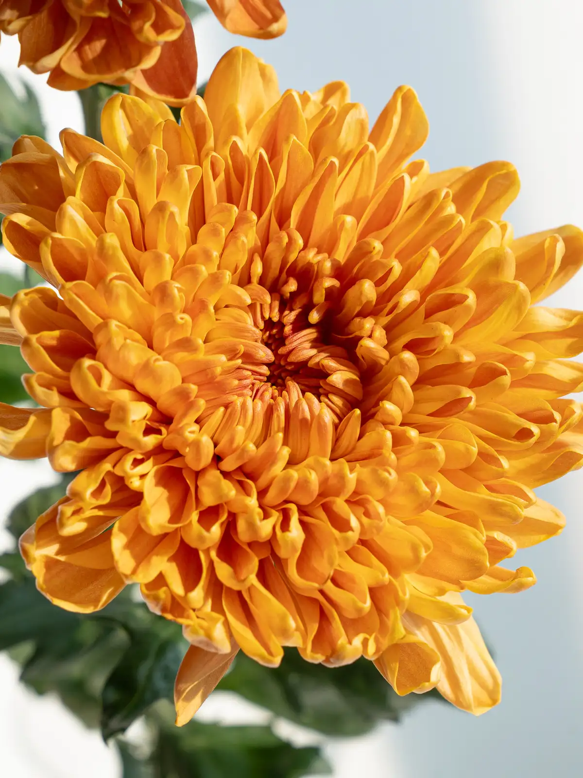 鮮やかなオレンジカラーに温かみのある色調が魅力。大輪でしっかりとした花姿なので、空間のアクセントやハーモニーを出したいアレンジに適しています。