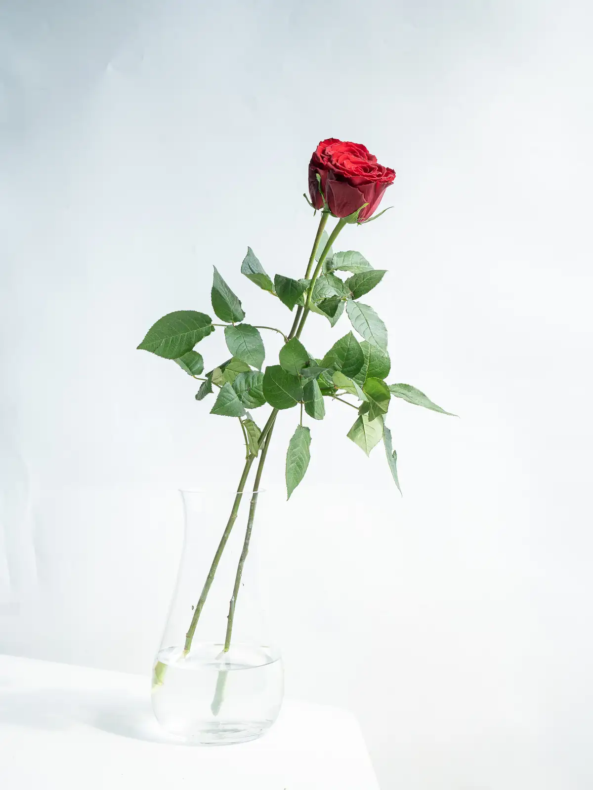 深紅の赤が情熱的で、花びらが厚くしっかりとした質感。存在感があり、特別な日に映えるバラです。フォーマルなギフトや記念日の定番色。