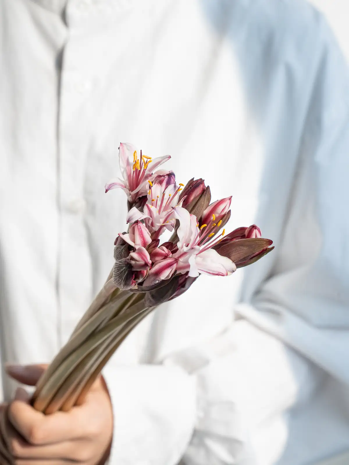 入荷した花は1本ずつ丁寧に水揚げ処理を行い、発送までしっかり管理。斜め切り・ハンマー叩きなど、花に合わせた水揚げを行います。届いた瞬間から、美しく咲く準備が整った状態でお届けします。