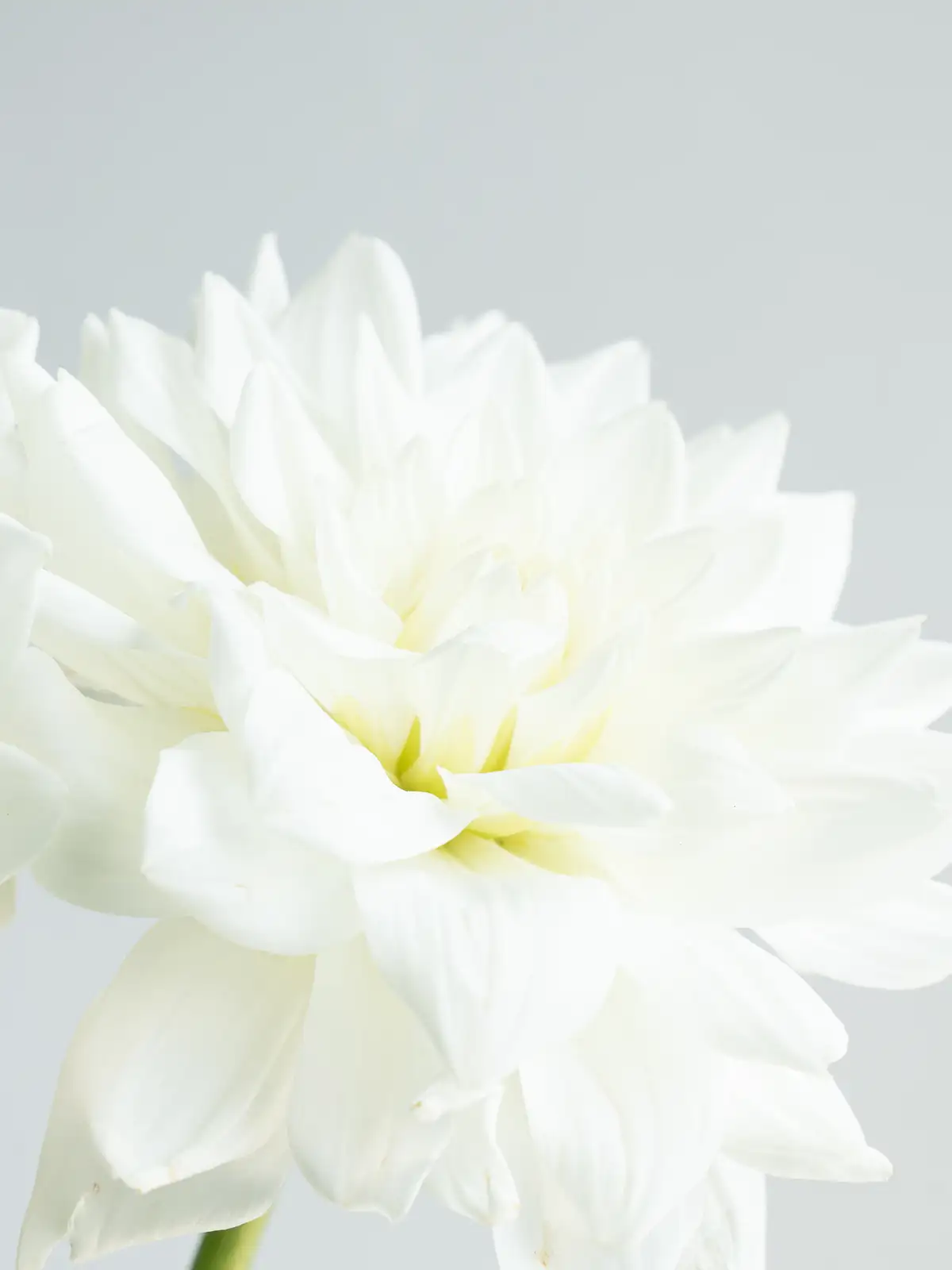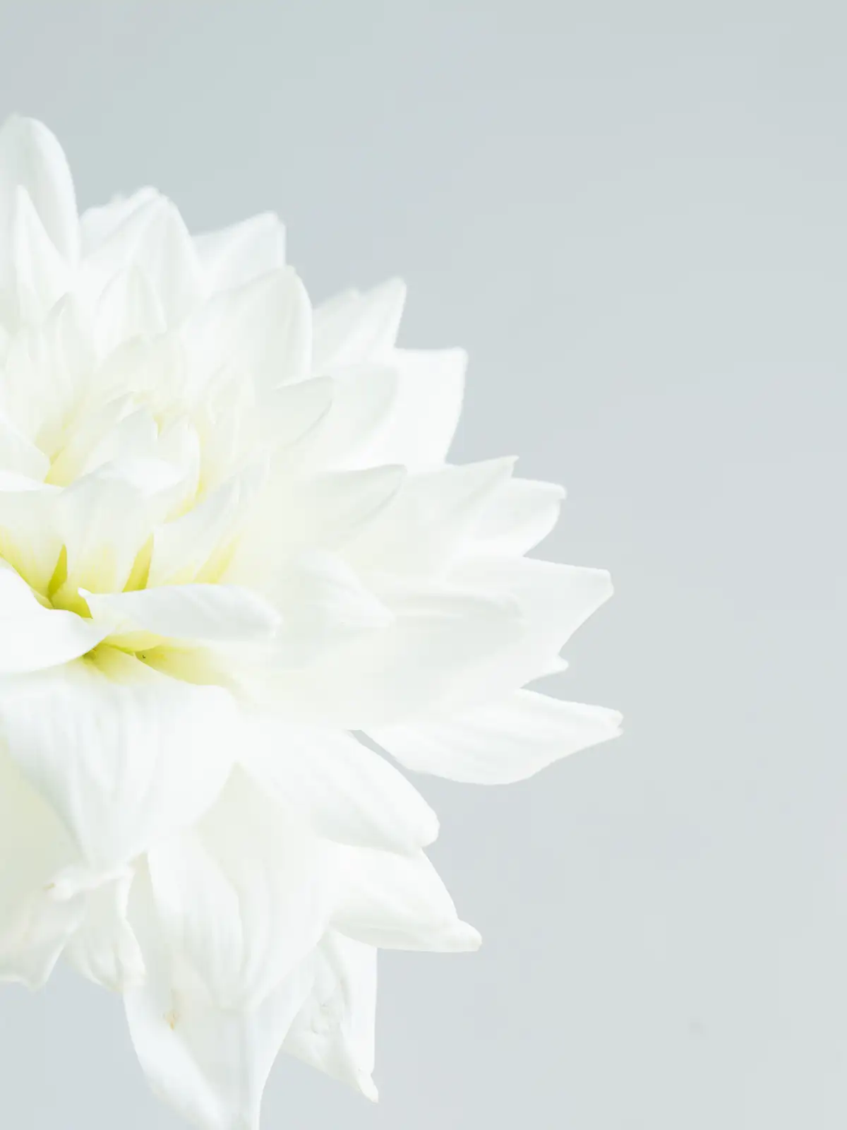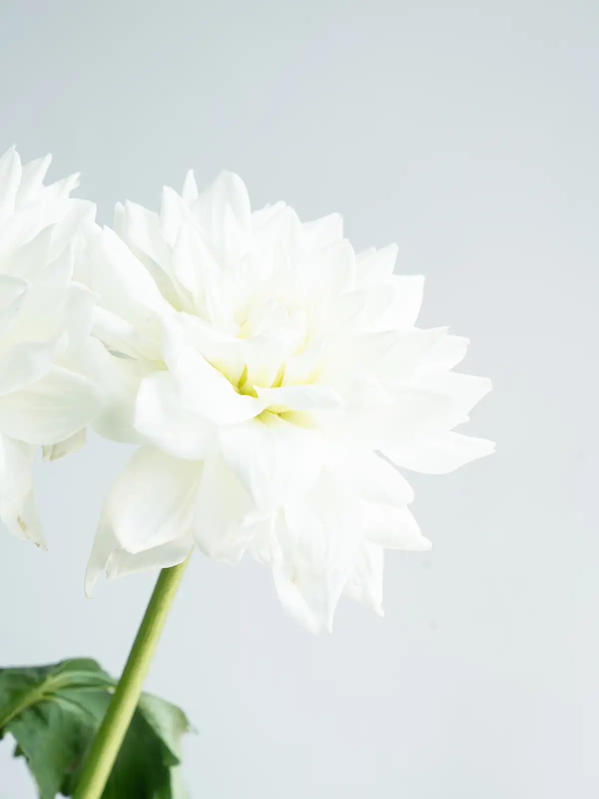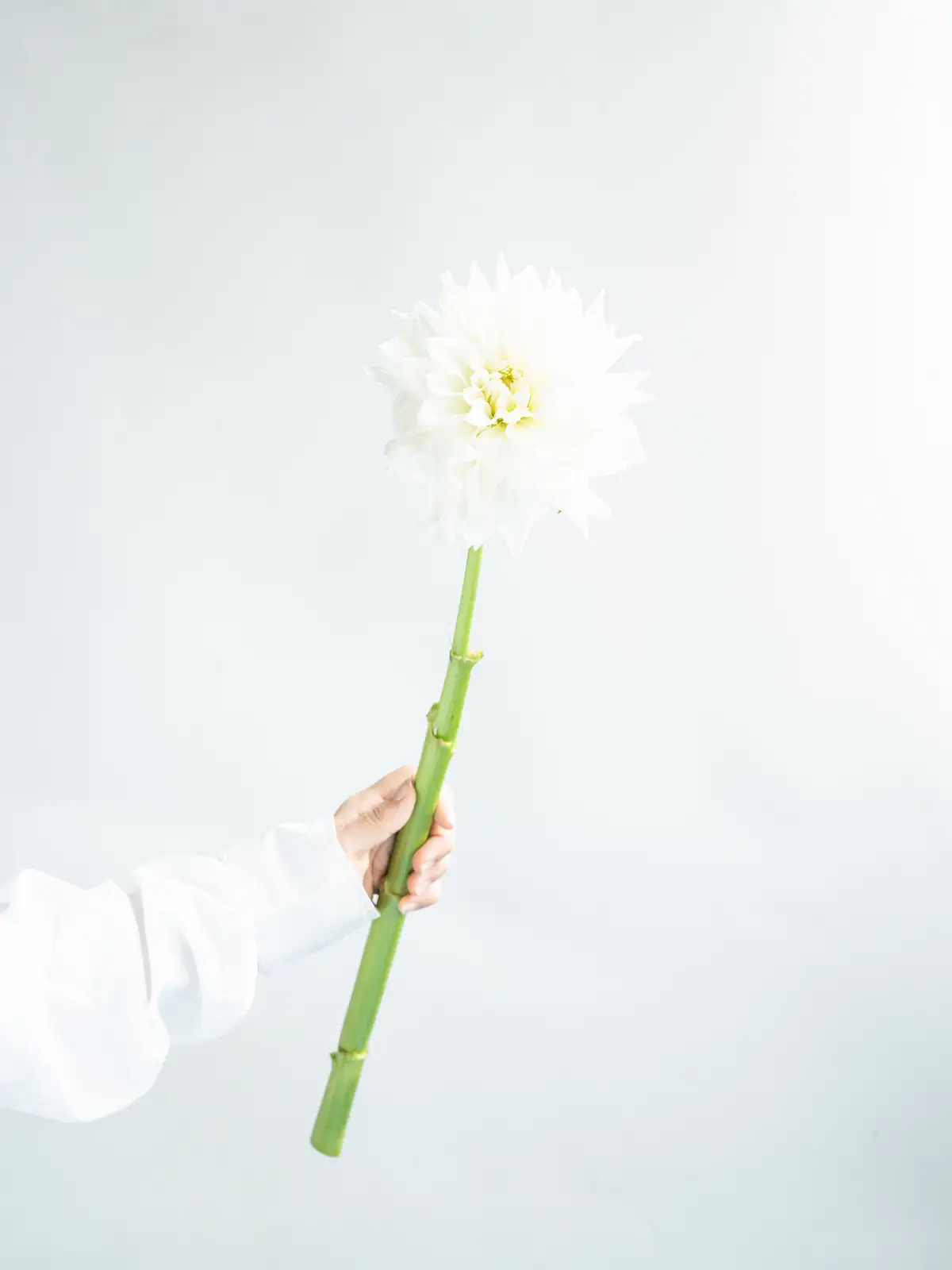 純白に近い清らかな白と花弁の尖りが際立つ大輪タイプ。花姿に存在感がありながら清楚。結婚式や洗練された空間におすすめ。