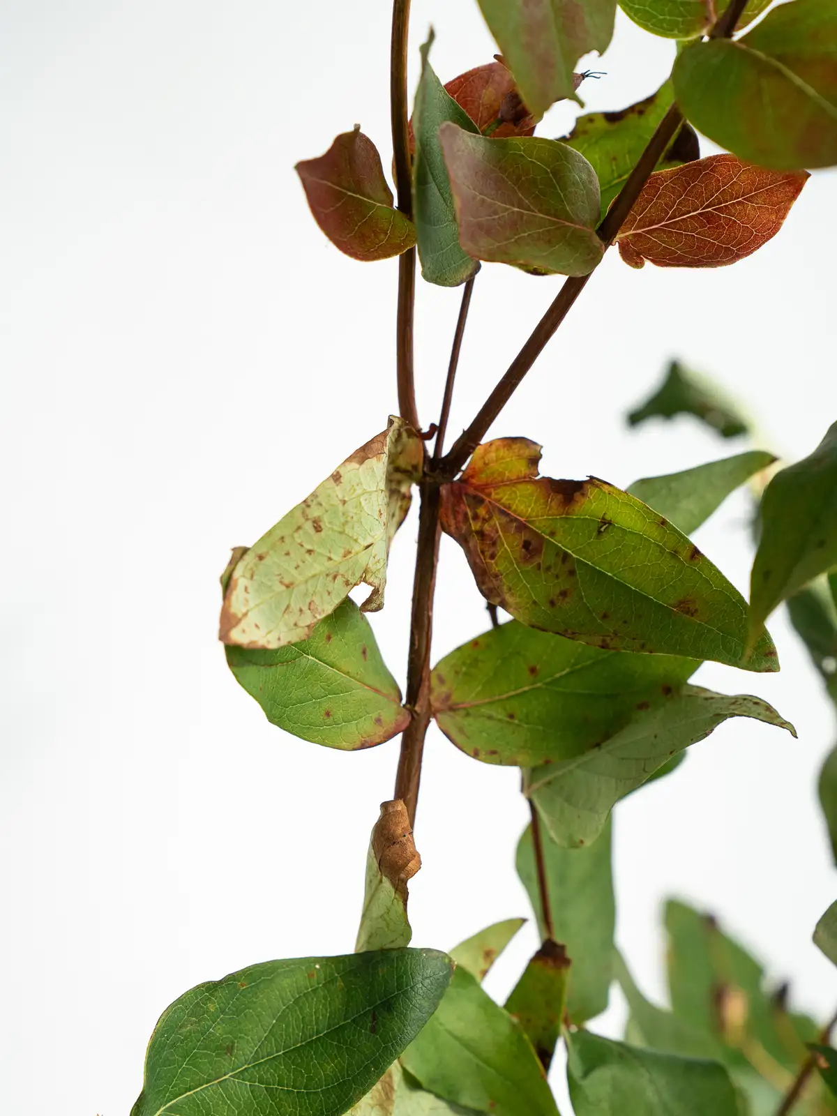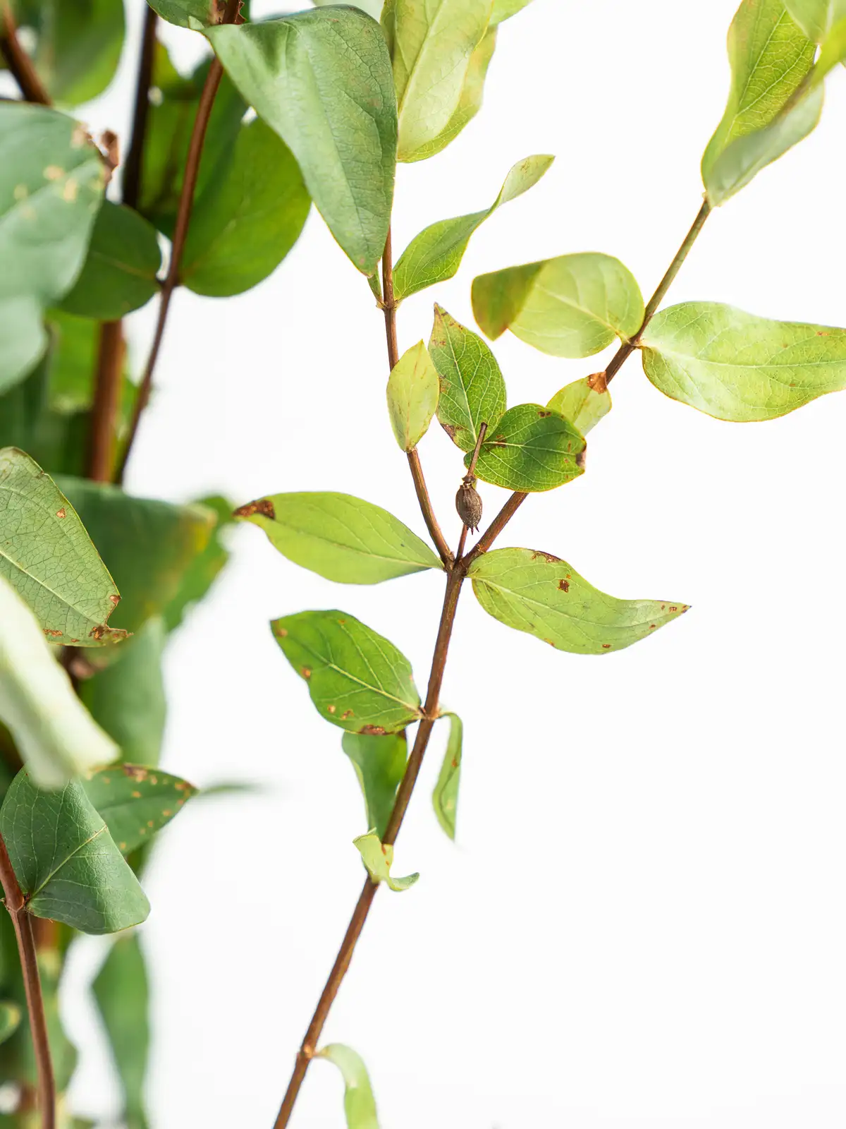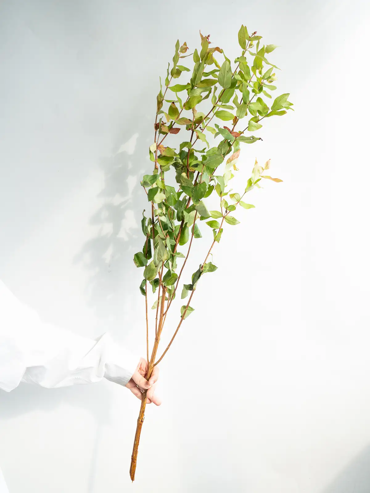 紅葉した葉が赤やオレンジに染まり、実も含めて多彩な色の表情を持つヒペリカム。葉の形は楕円形で光沢があります。自然のもののため、葉に痛みや虫食いが見られる場合がございますが、風合いとしてお楽しみください。