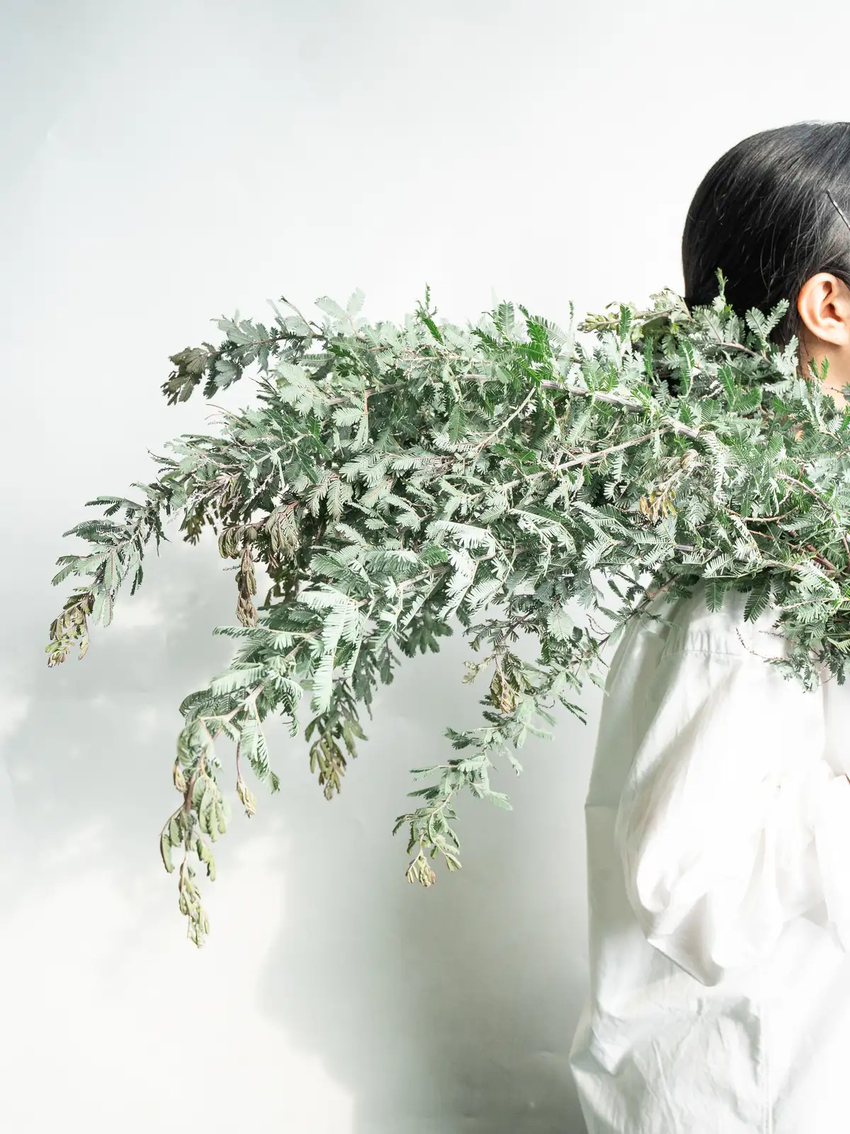 シルバーグリーンから淡い紫みのある葉色。葉は小さくて繊細な葉姿で、軽やかな質感があります。