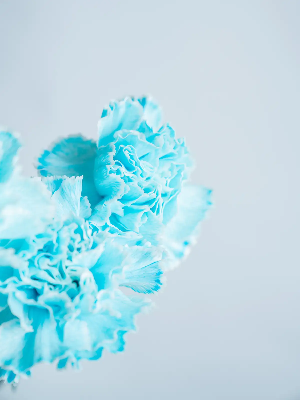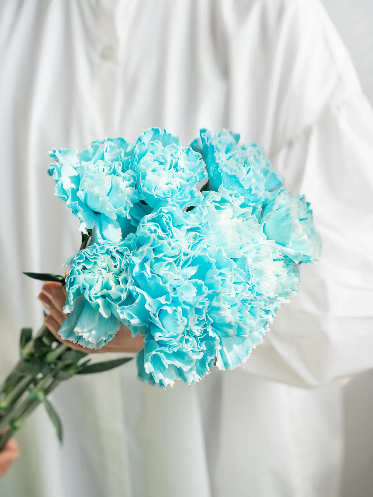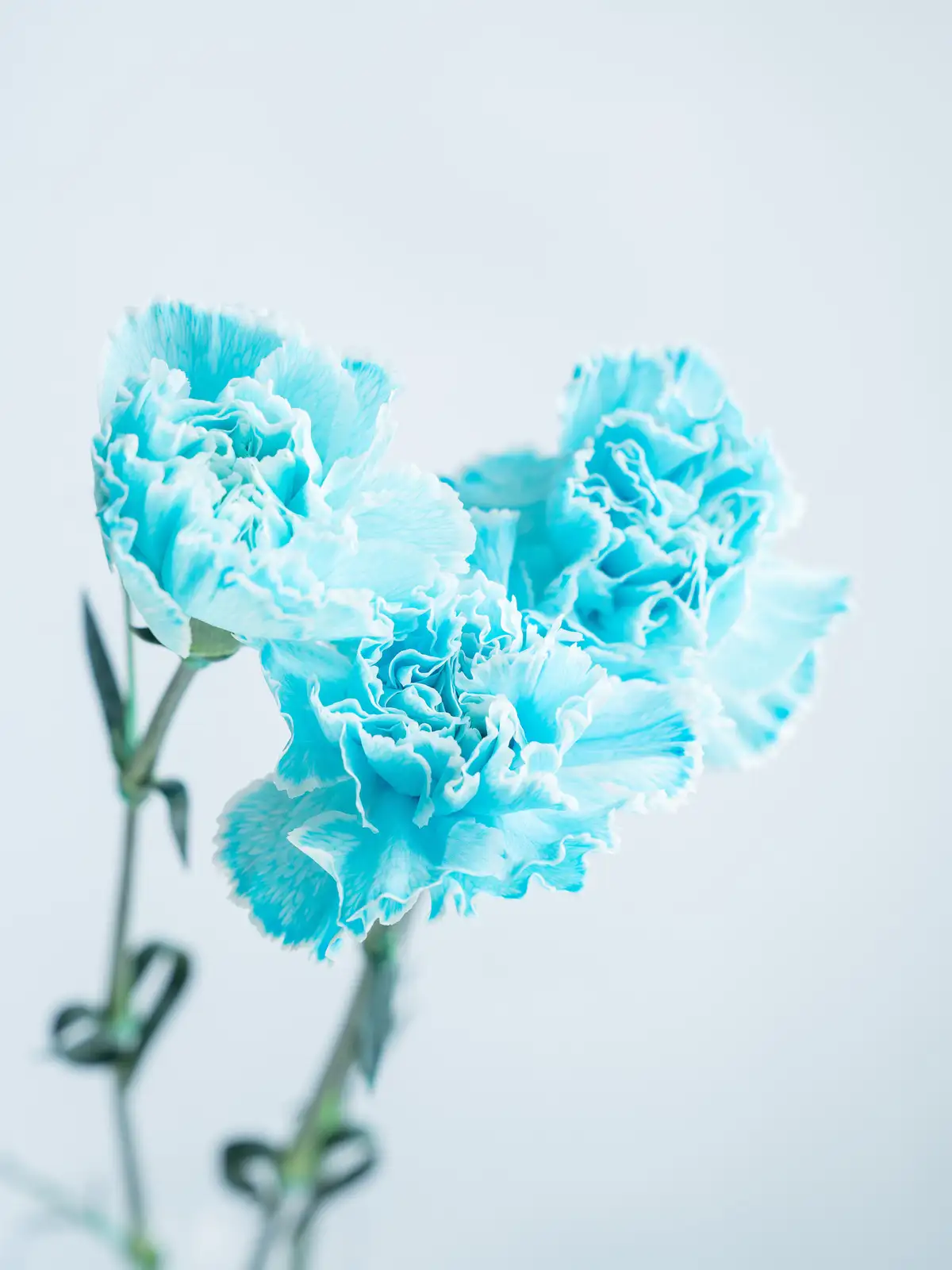 白基調の花弁に淡い青色を染めたカーネーション。涼やかで爽やかな印象が特徴です。
