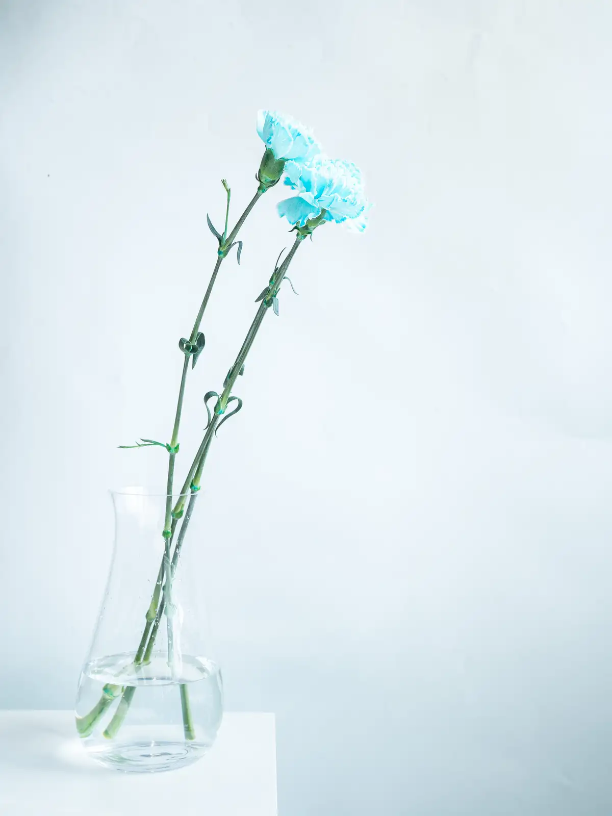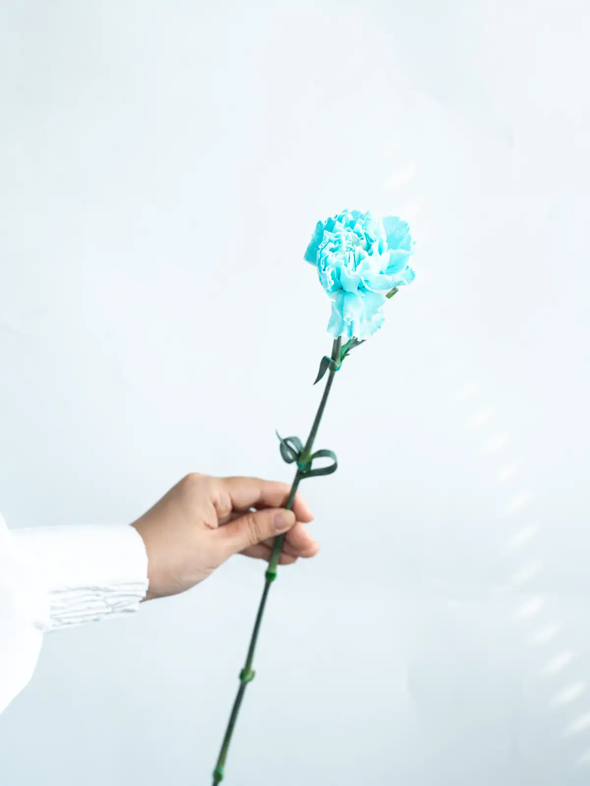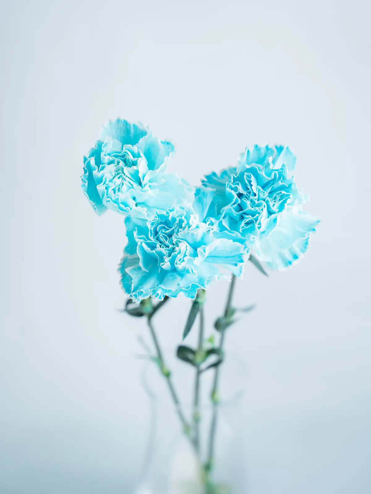 白基調の花弁に淡い青色を染めたカーネーション。涼やかで爽やかな印象が特徴です。