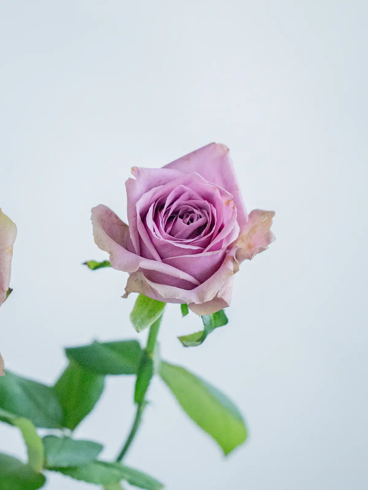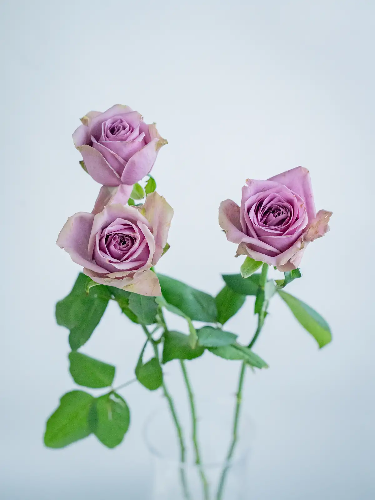 青みを帯びた紫色が特徴。花弁は端正に重なり、落ち着きと高貴な雰囲気を持ちます。