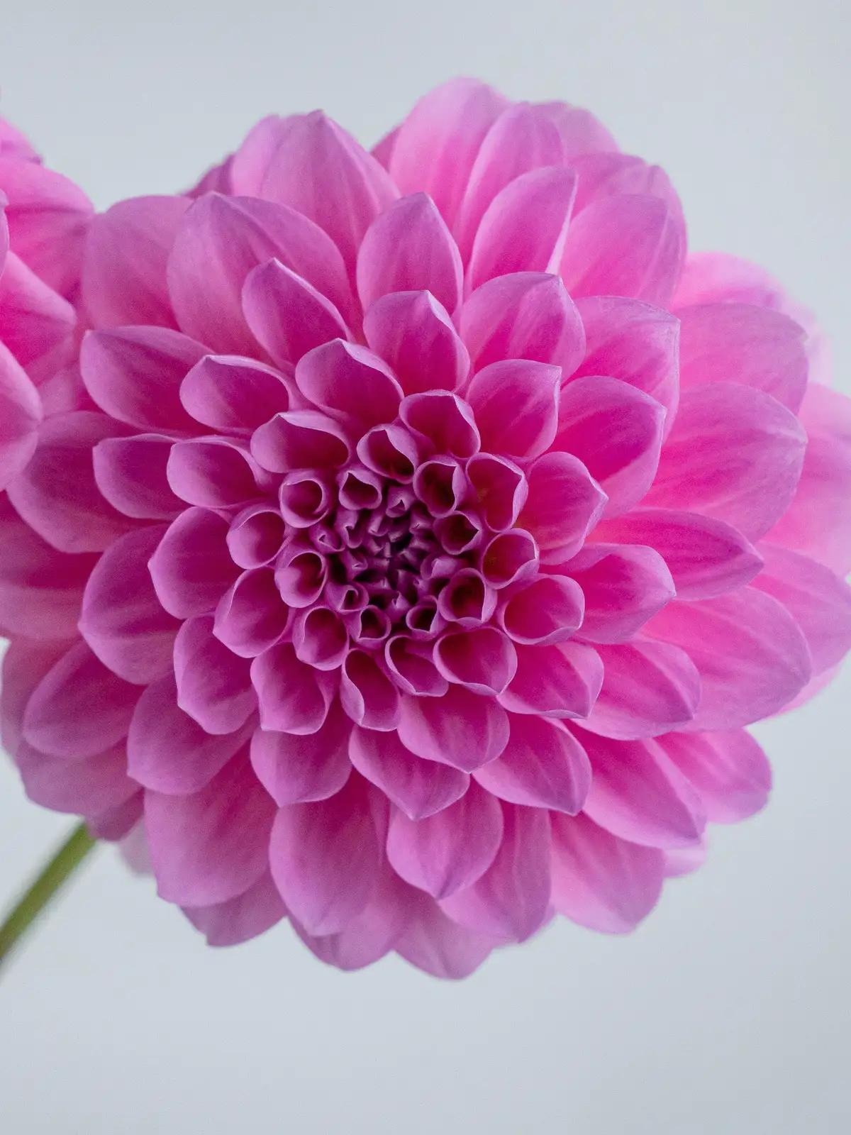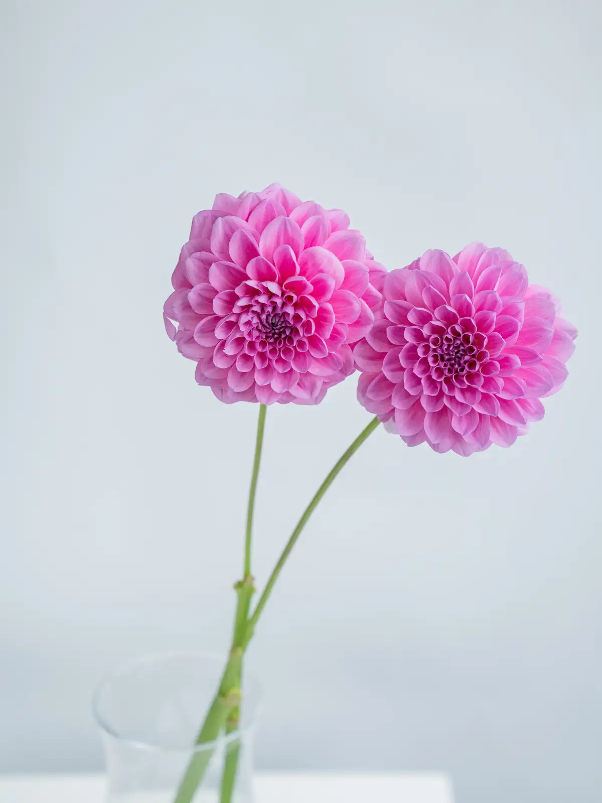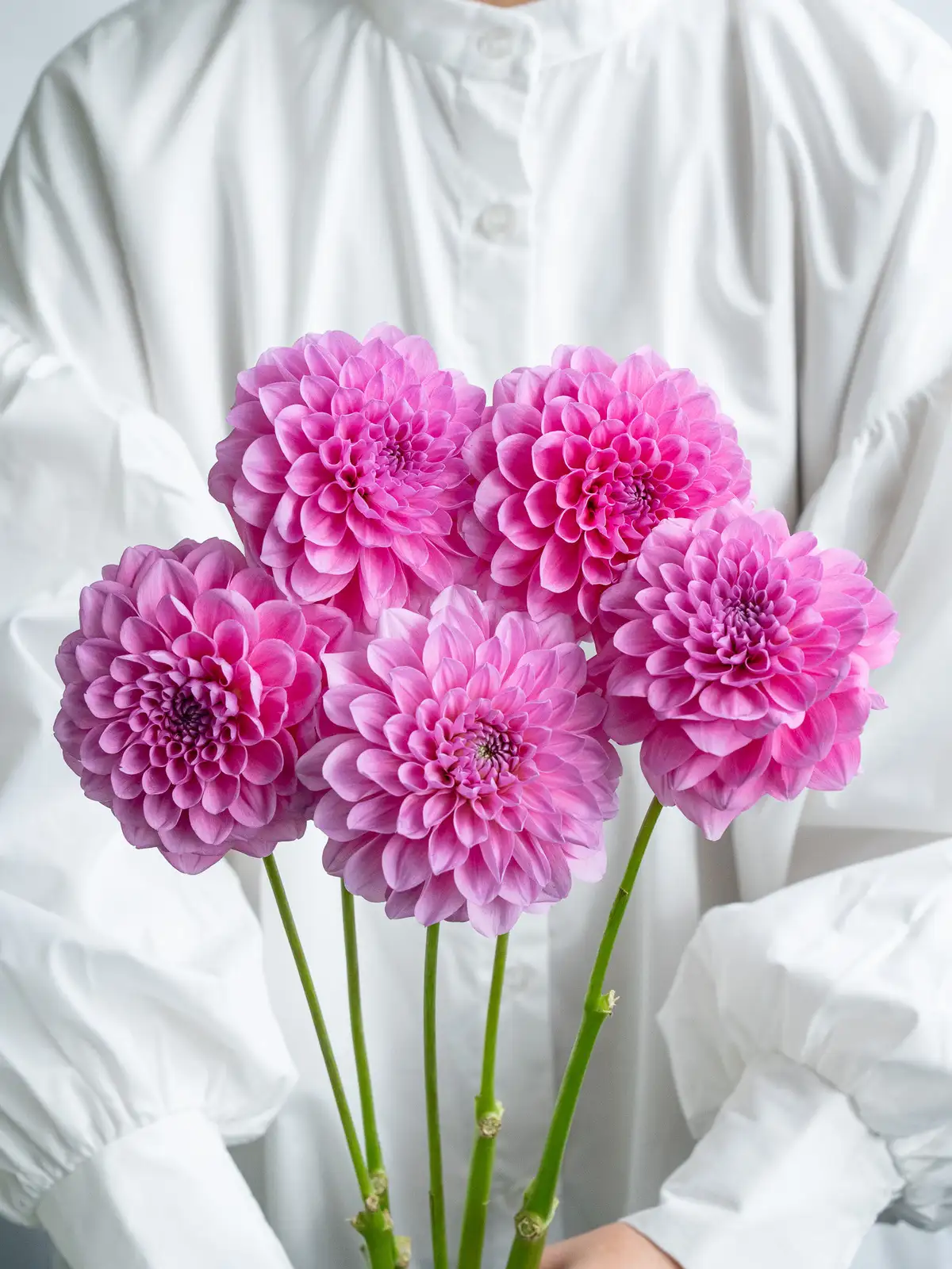 鮮やかなピンク色で、花弁が幾重にも重なる丸弁咲き。光沢感があり華やかな印象を与えます。