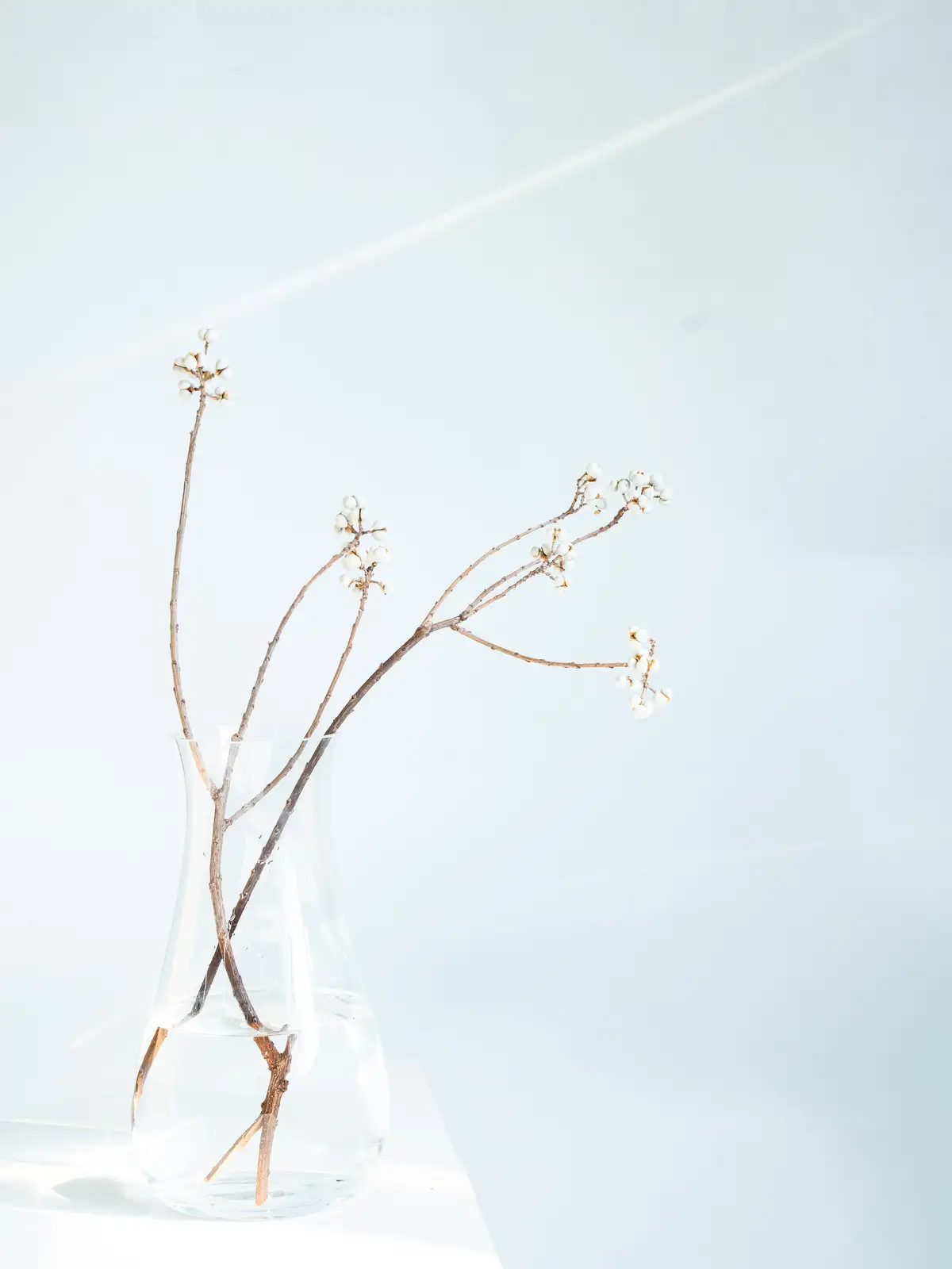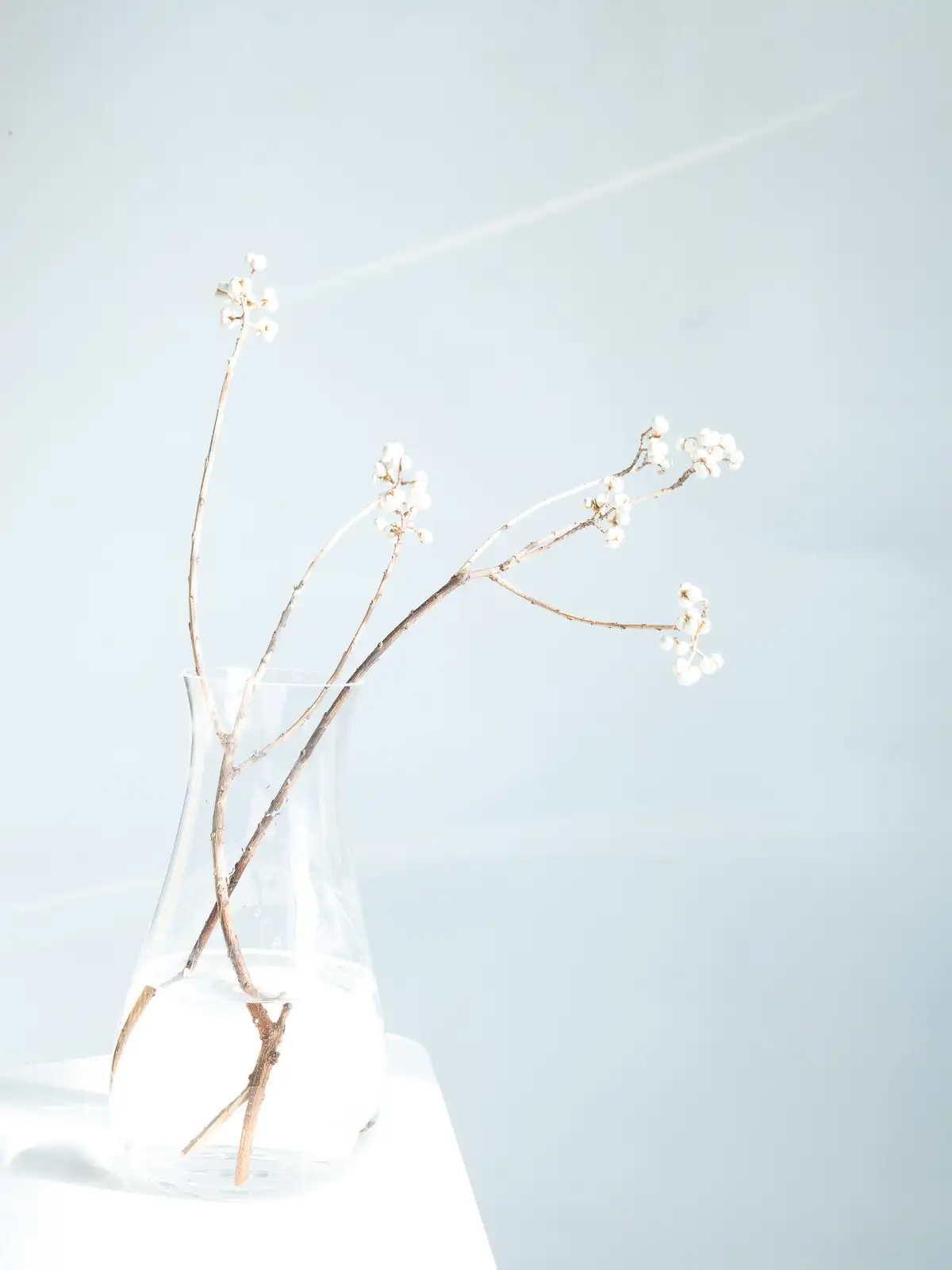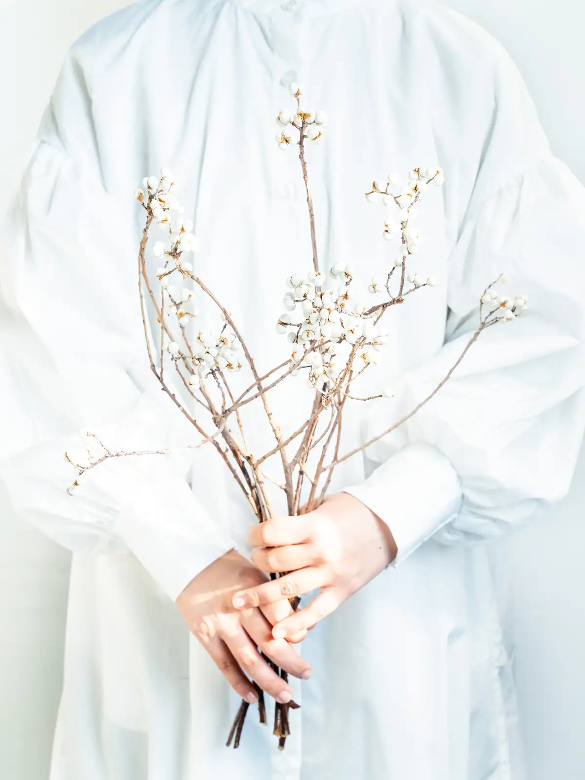 白い果実が房状につく枝物。果実は丸みがあり、ドライになるとクリーム色〜白色に変化します。