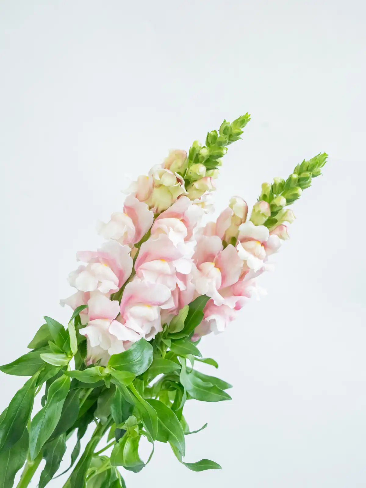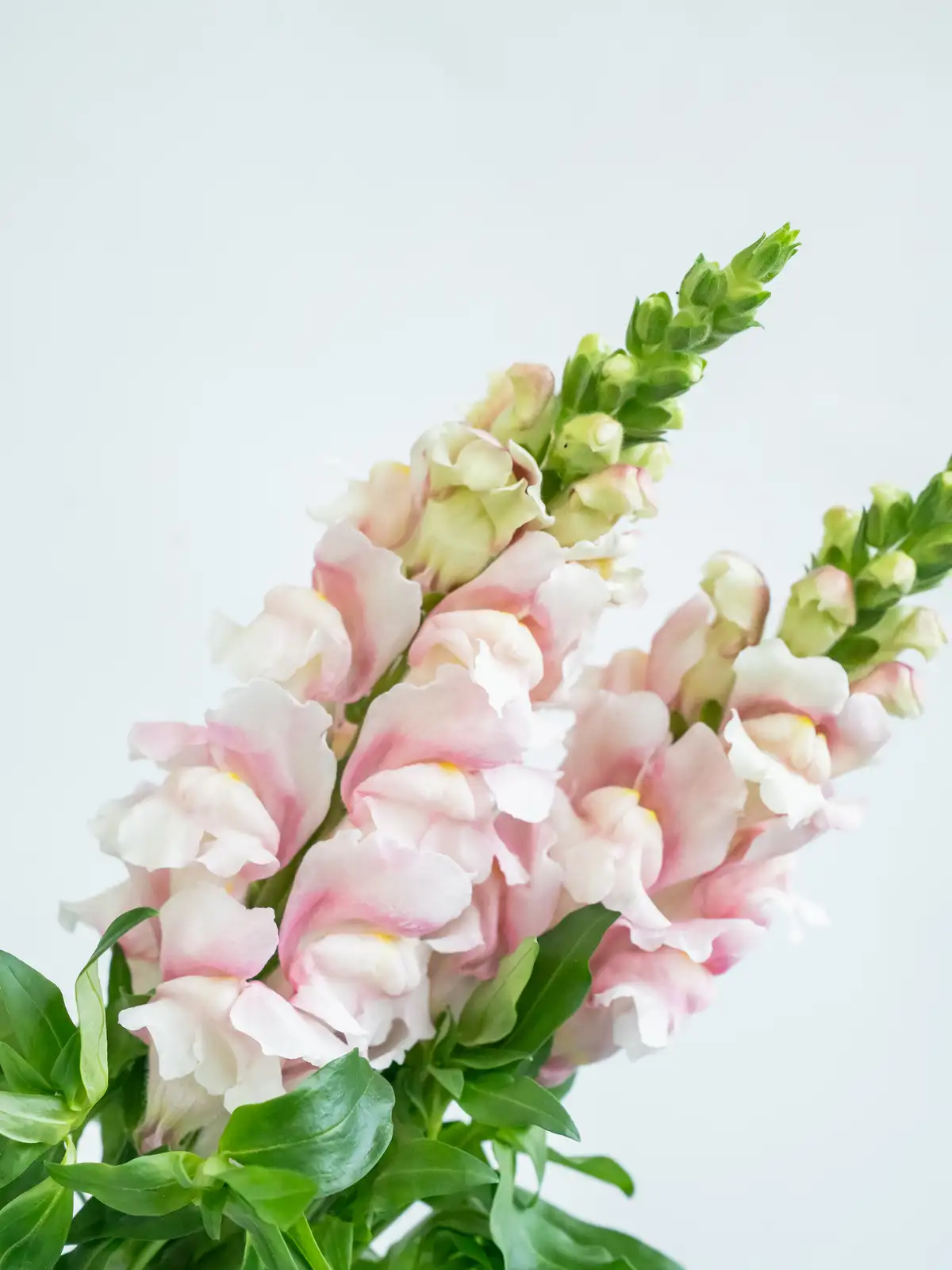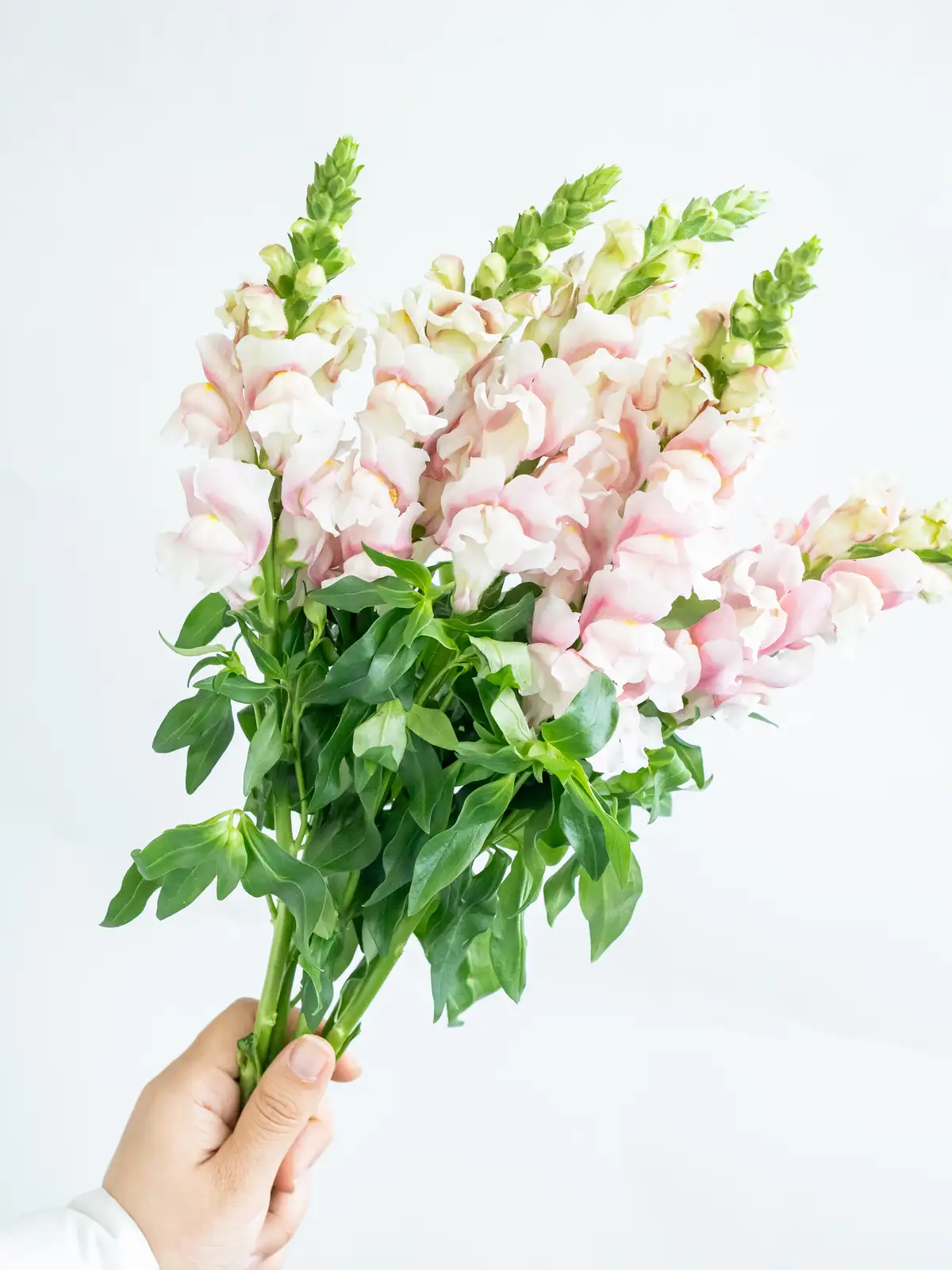 柔らかなピンク色の花穂が穏やかな印象を与える金魚草。花弁はふっくらとしており、立ち上がりの美しい形状です。