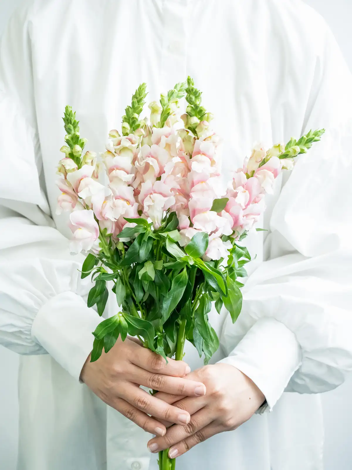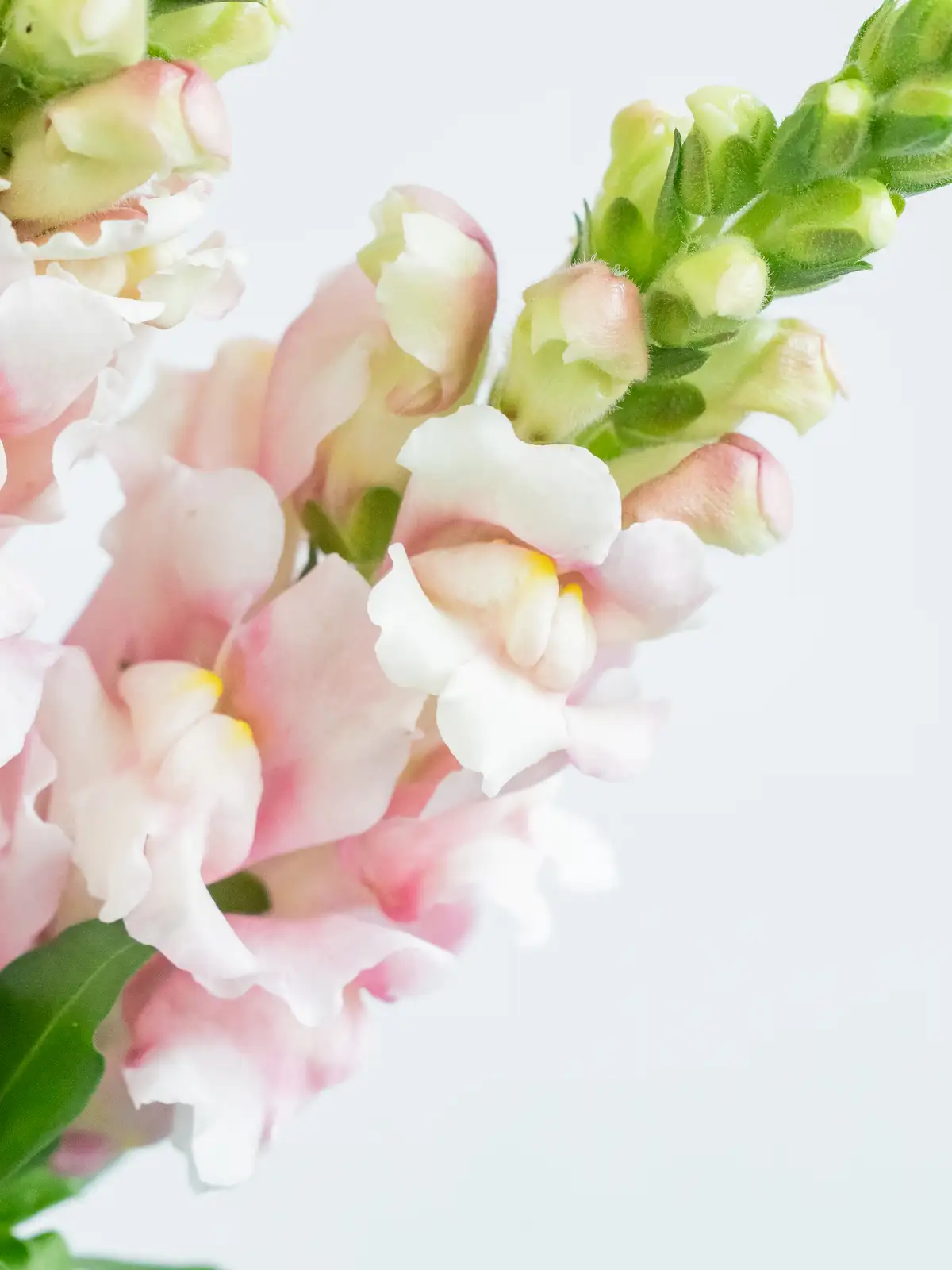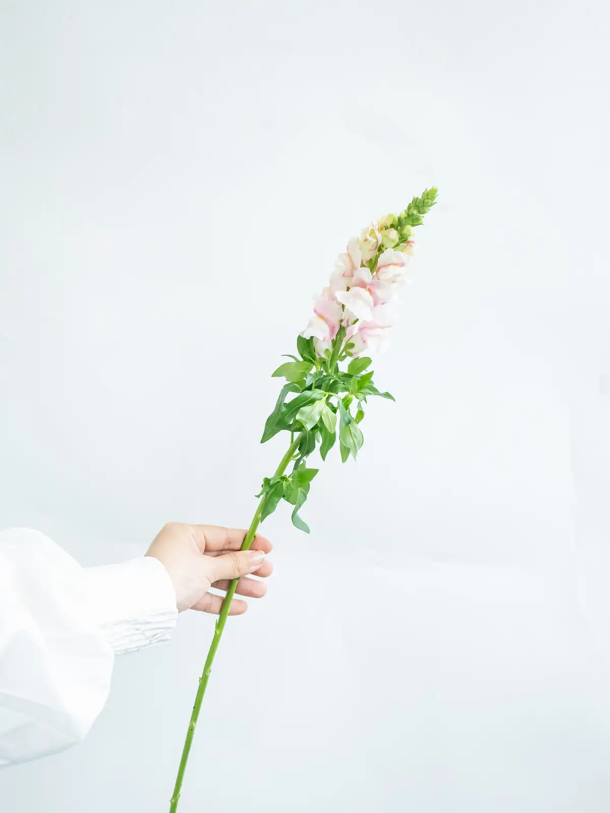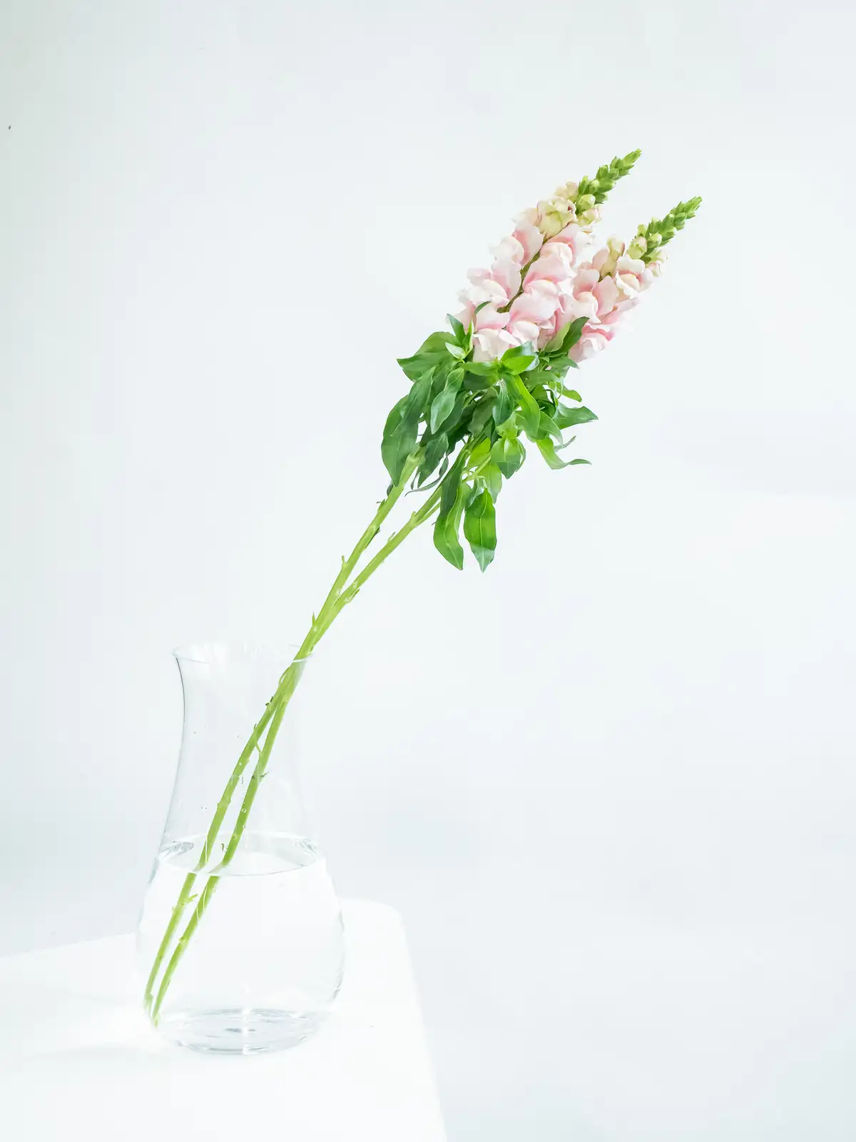 柔らかなピンク色の花穂が穏やかな印象を与える金魚草。花弁はふっくらとしており、立ち上がりの美しい形状です。