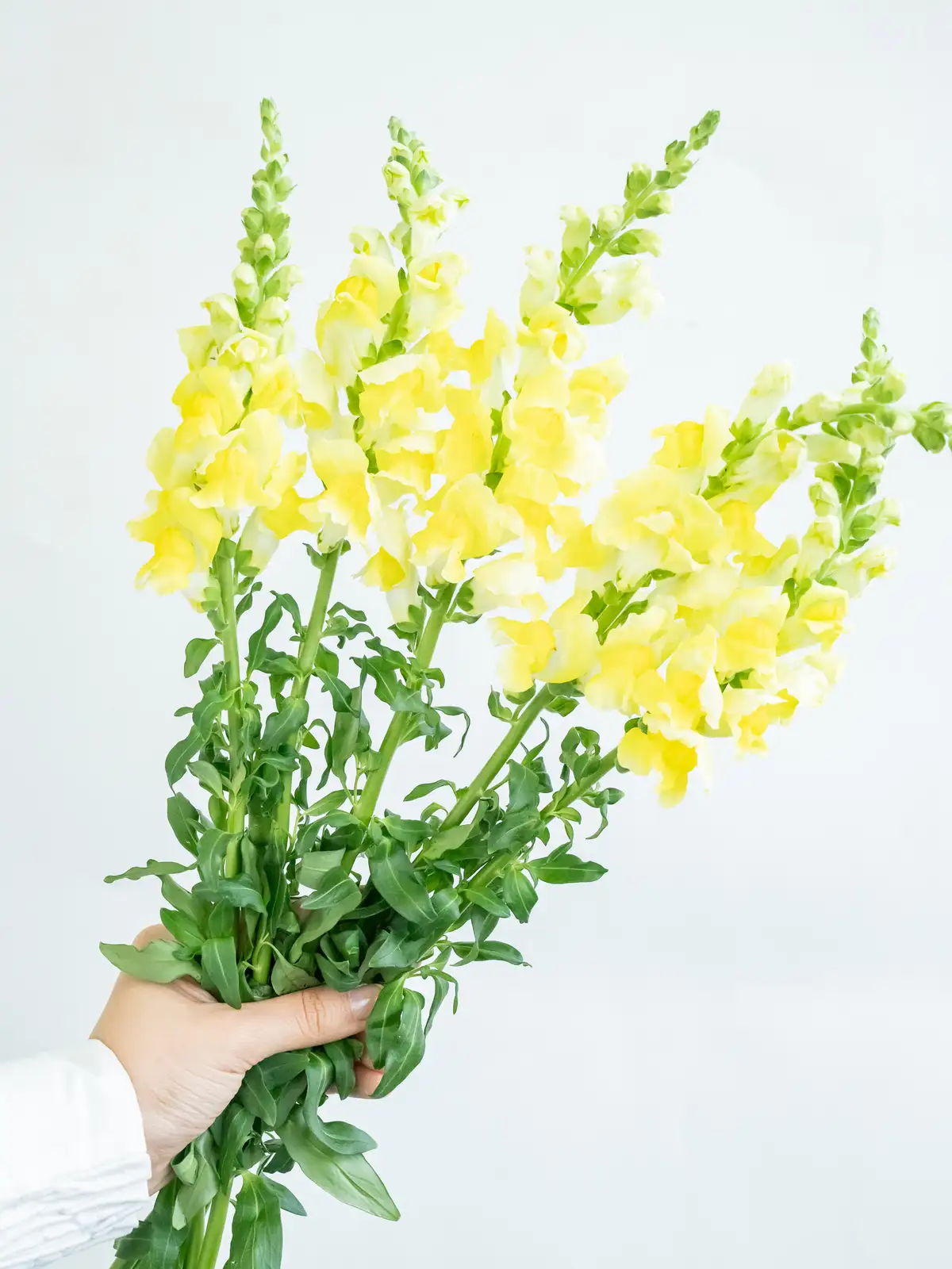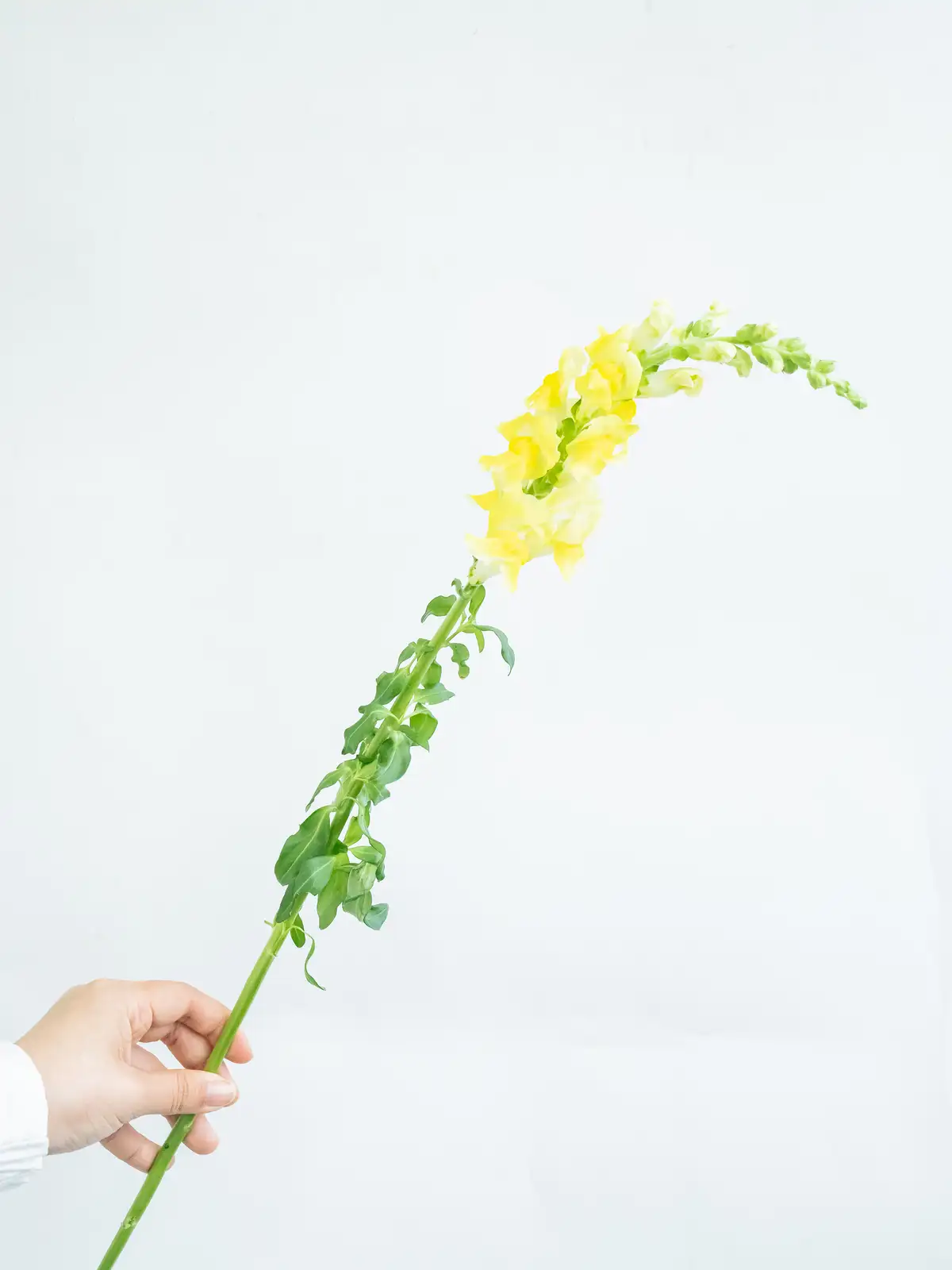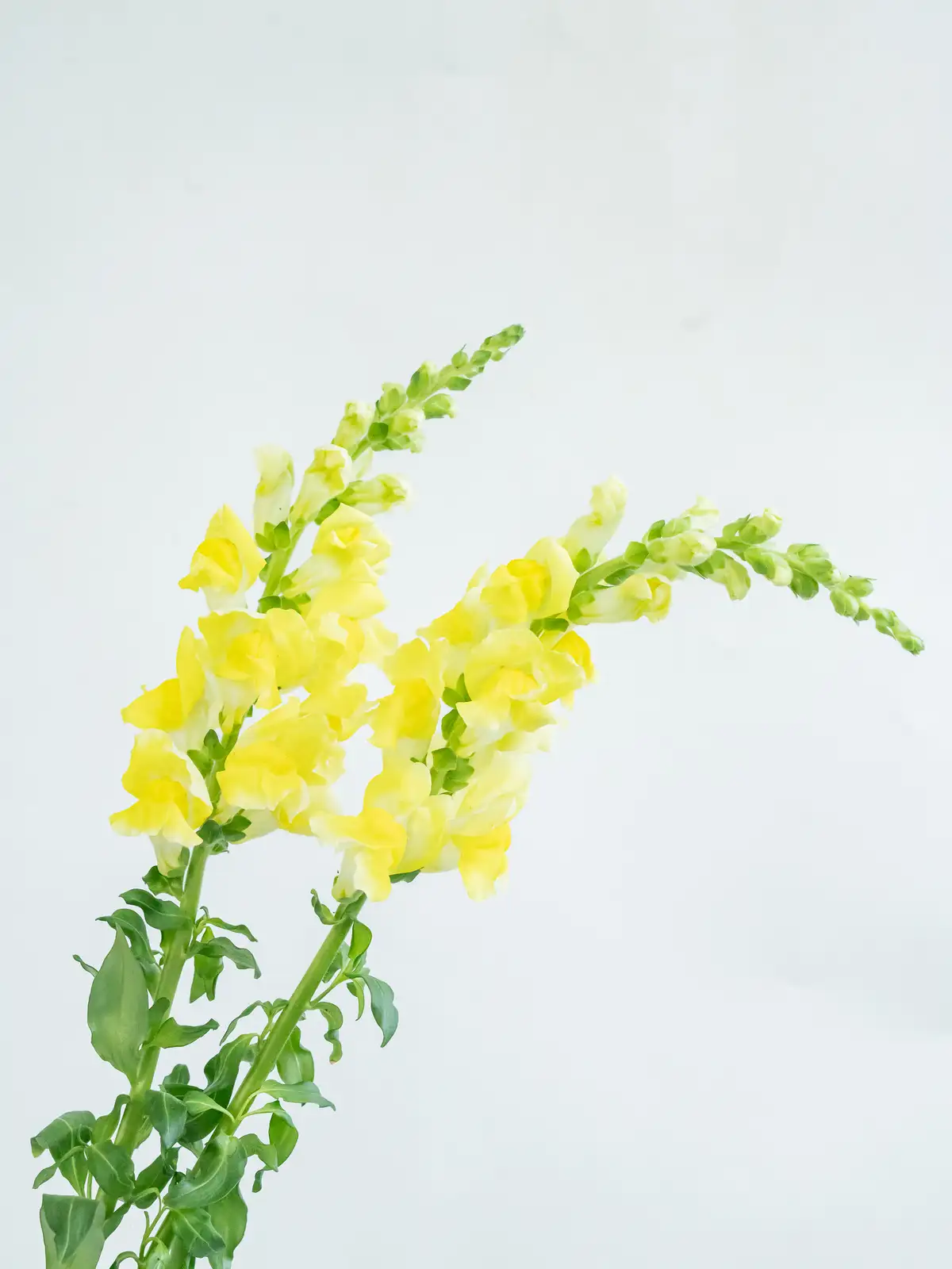明るい黄色の花穂が元気な印象を与える金魚草。花弁は厚みがあり、発色の良さが特徴です。