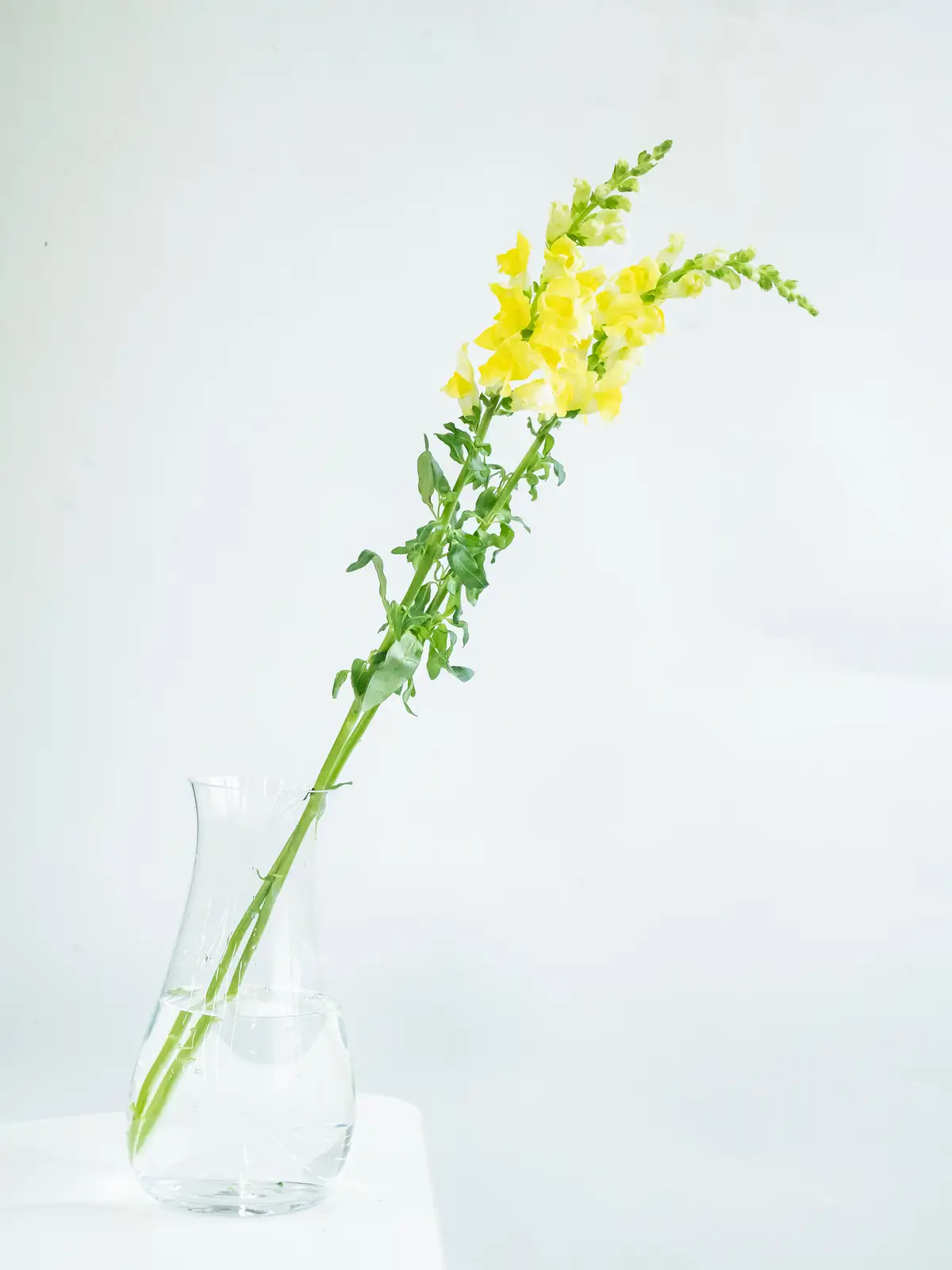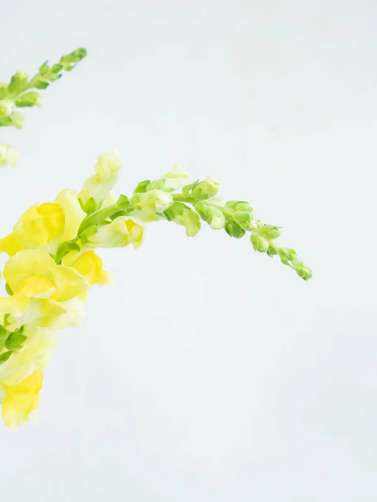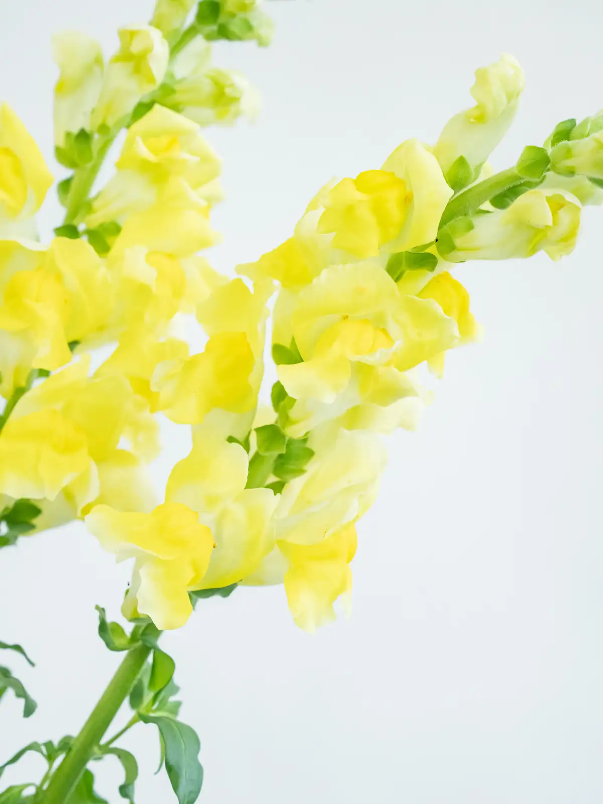 明るい黄色の花穂が元気な印象を与える金魚草。花弁は厚みがあり、発色の良さが特徴です。