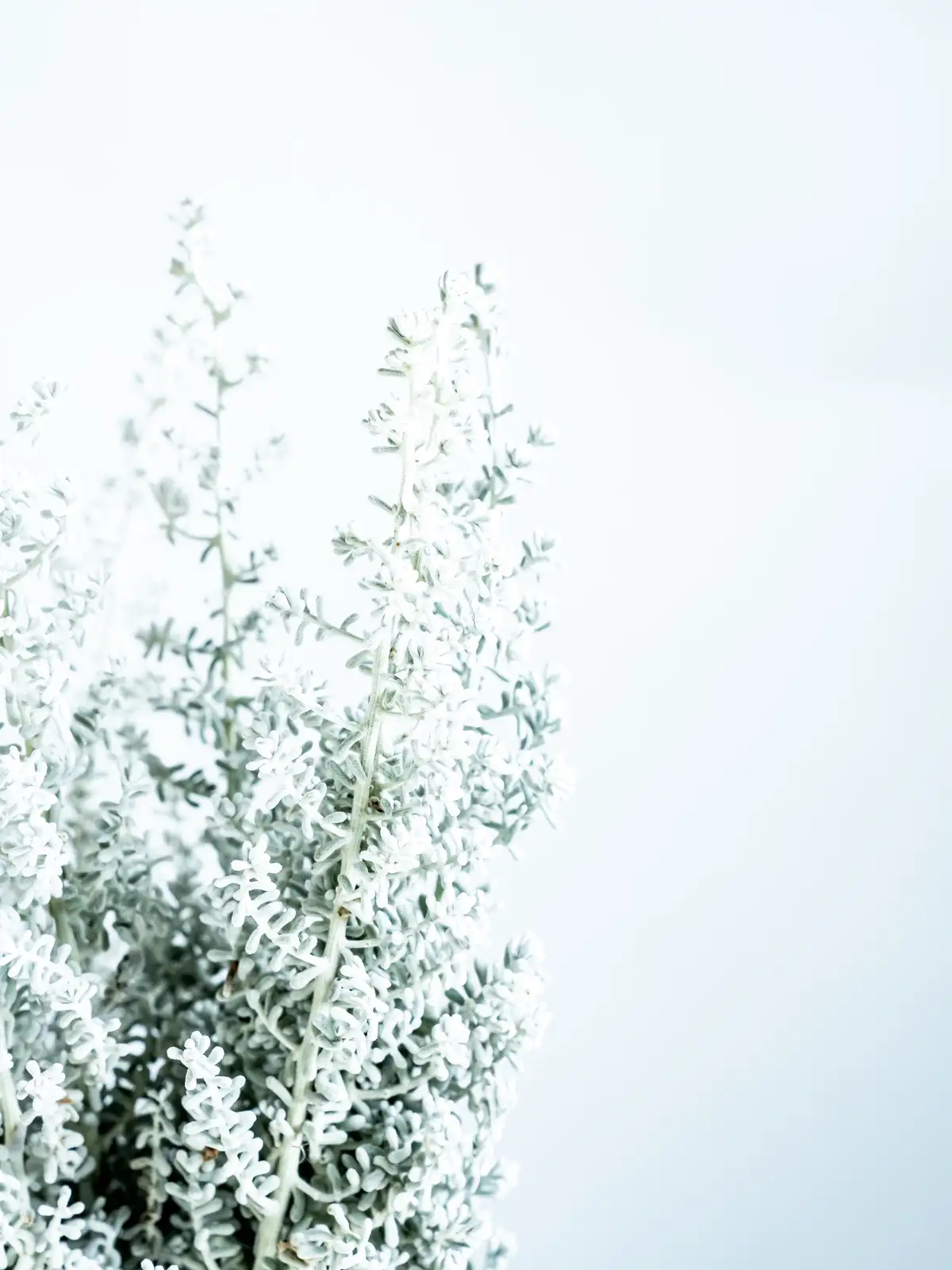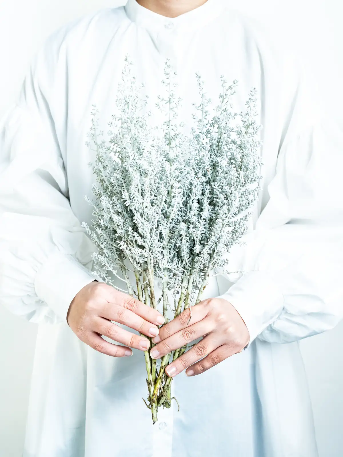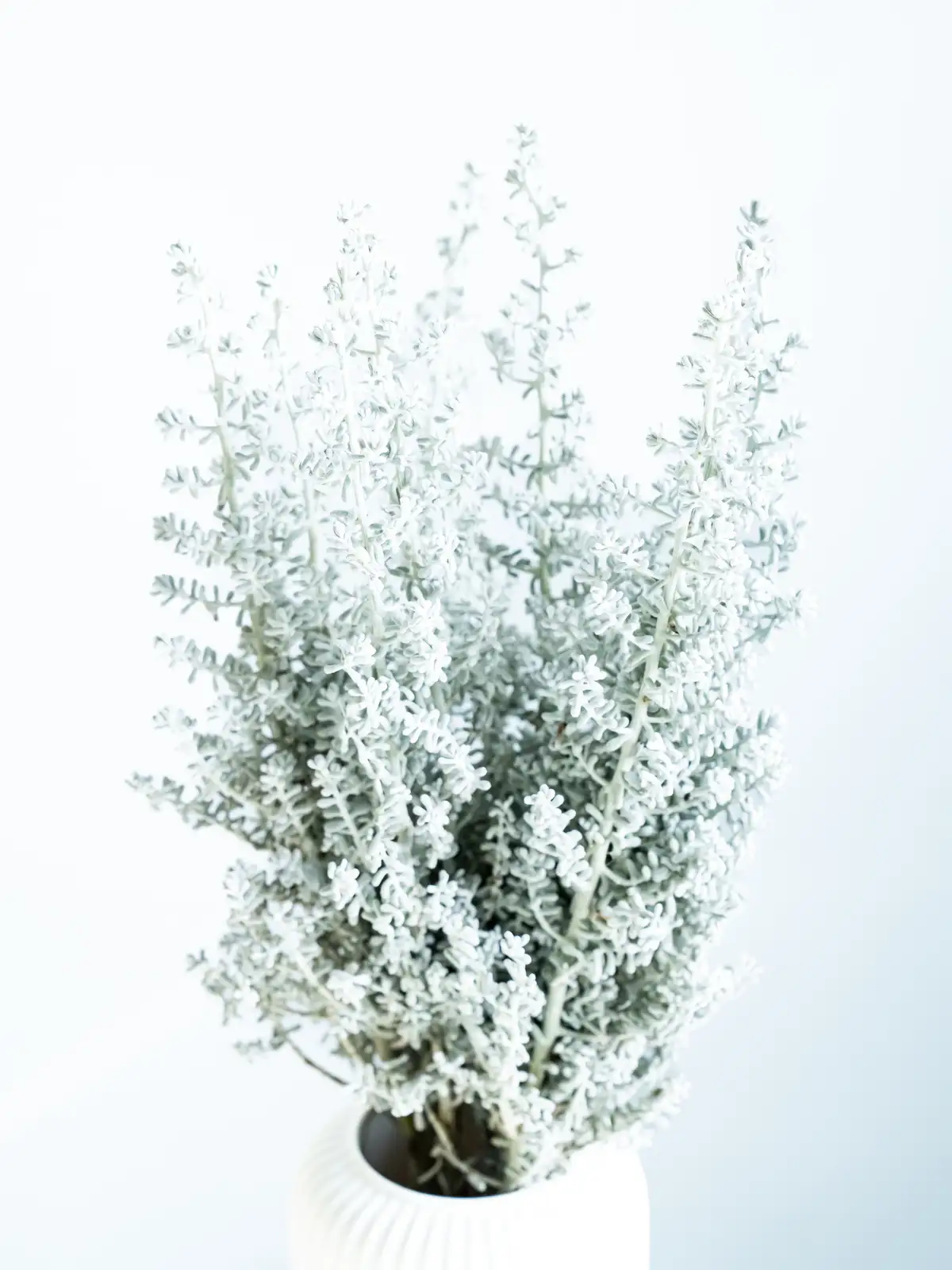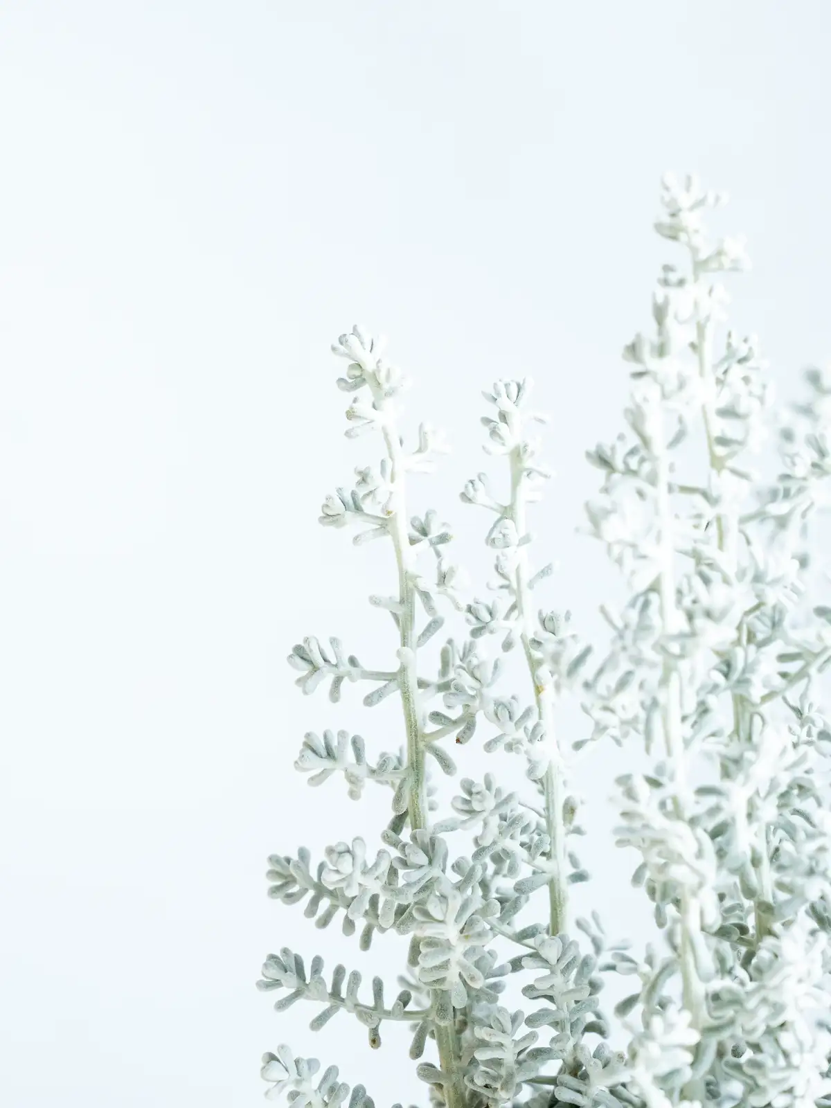 細かな枝葉に白銀色の毛が生えるコチア。全体がやわらかい白色を帯び、軽やかな質感を持ちます。