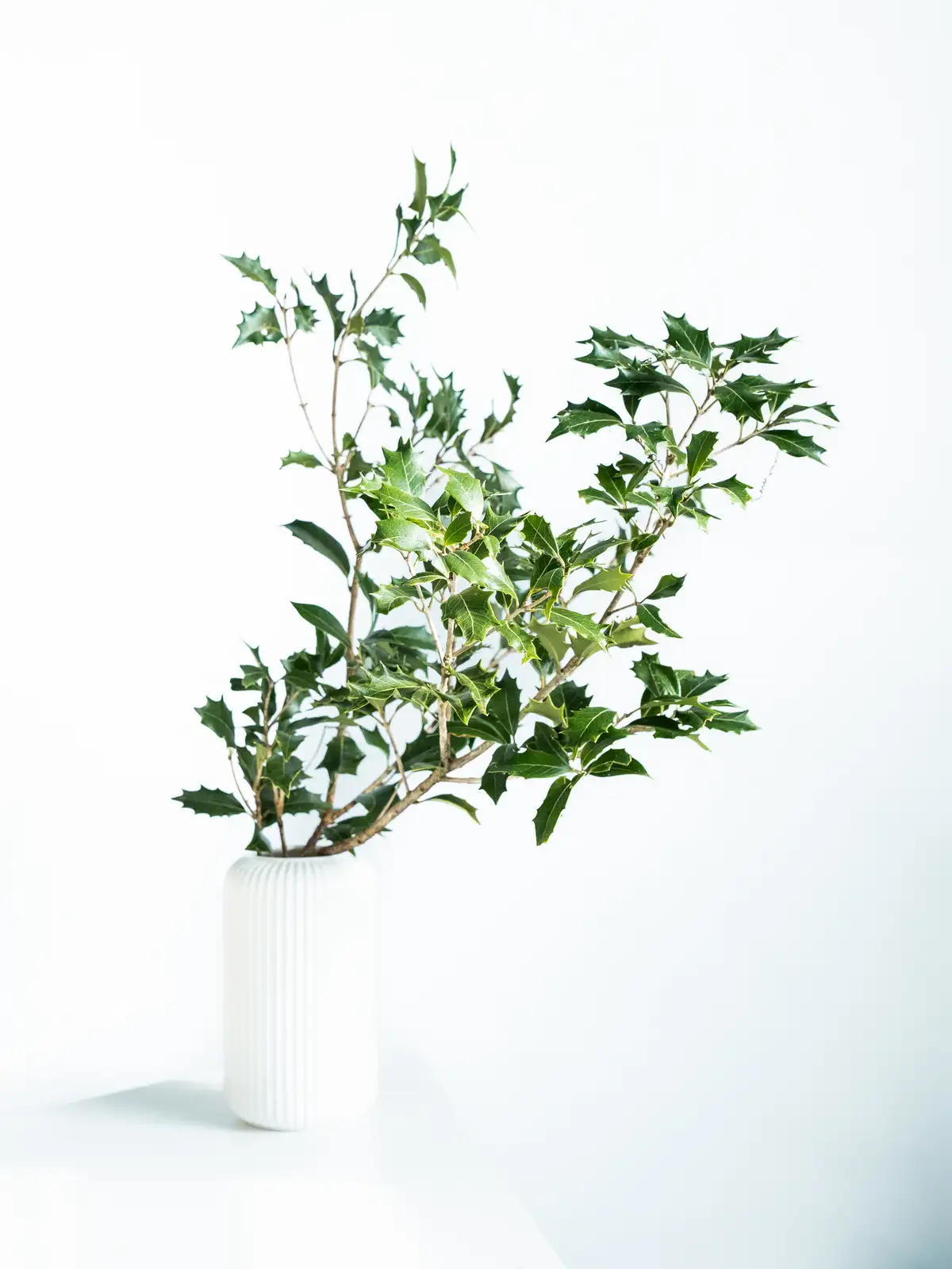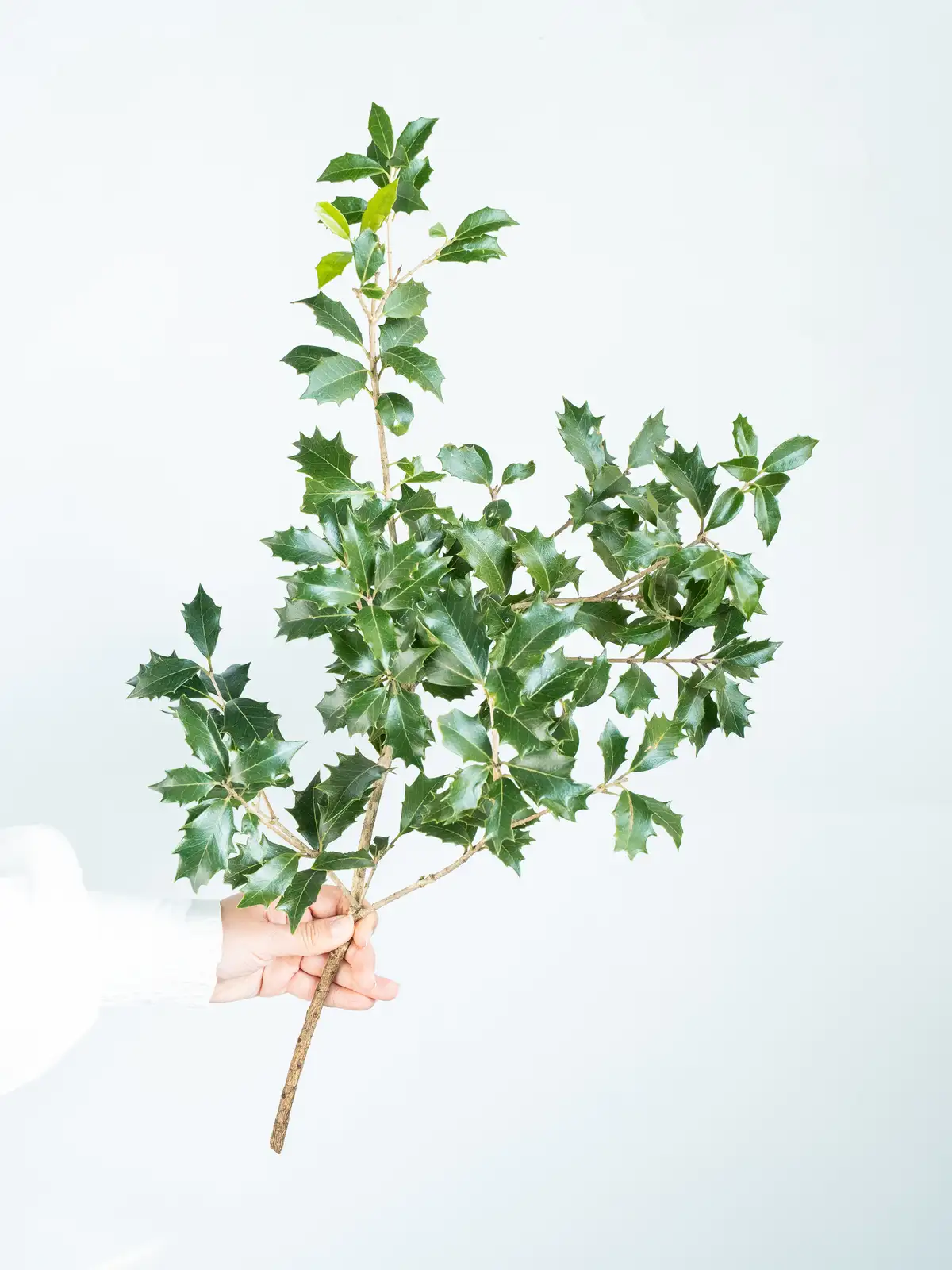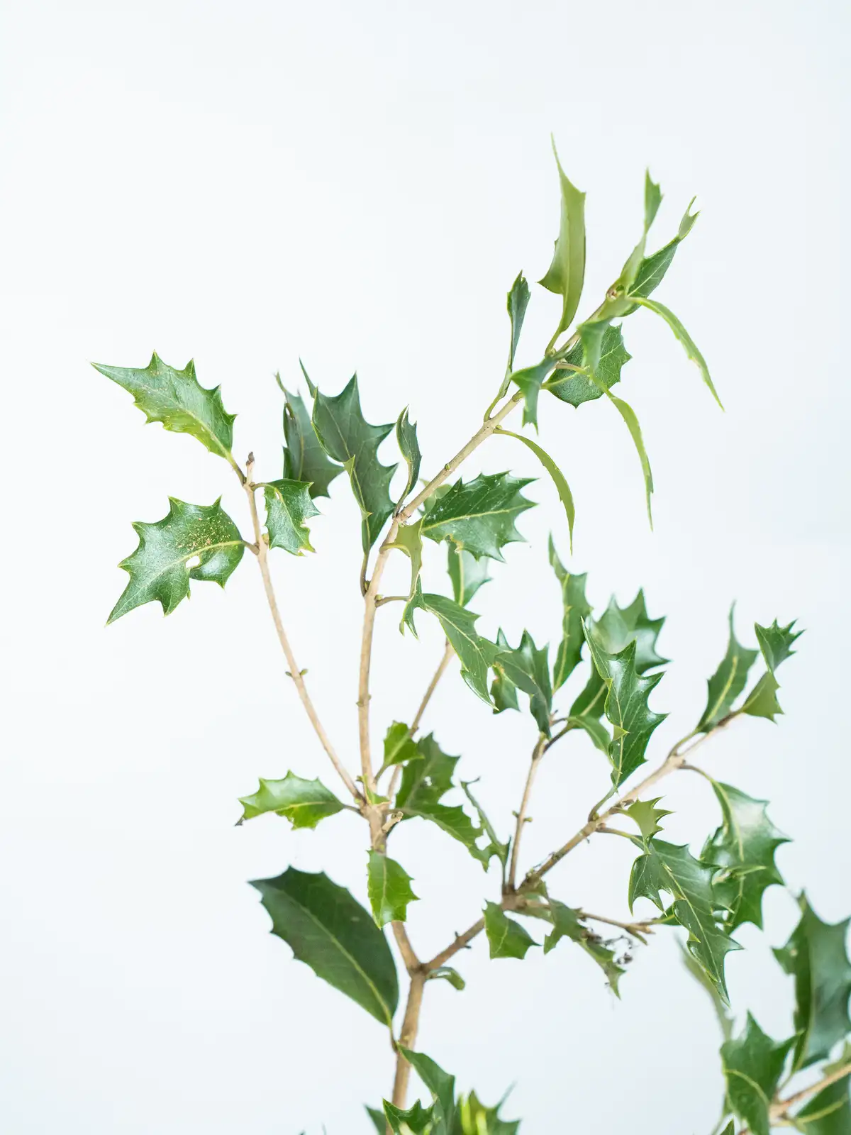濃緑色の光沢ある葉を持つ常緑樹。葉は硬く、鋭い切れ込みが入るのが特徴です。