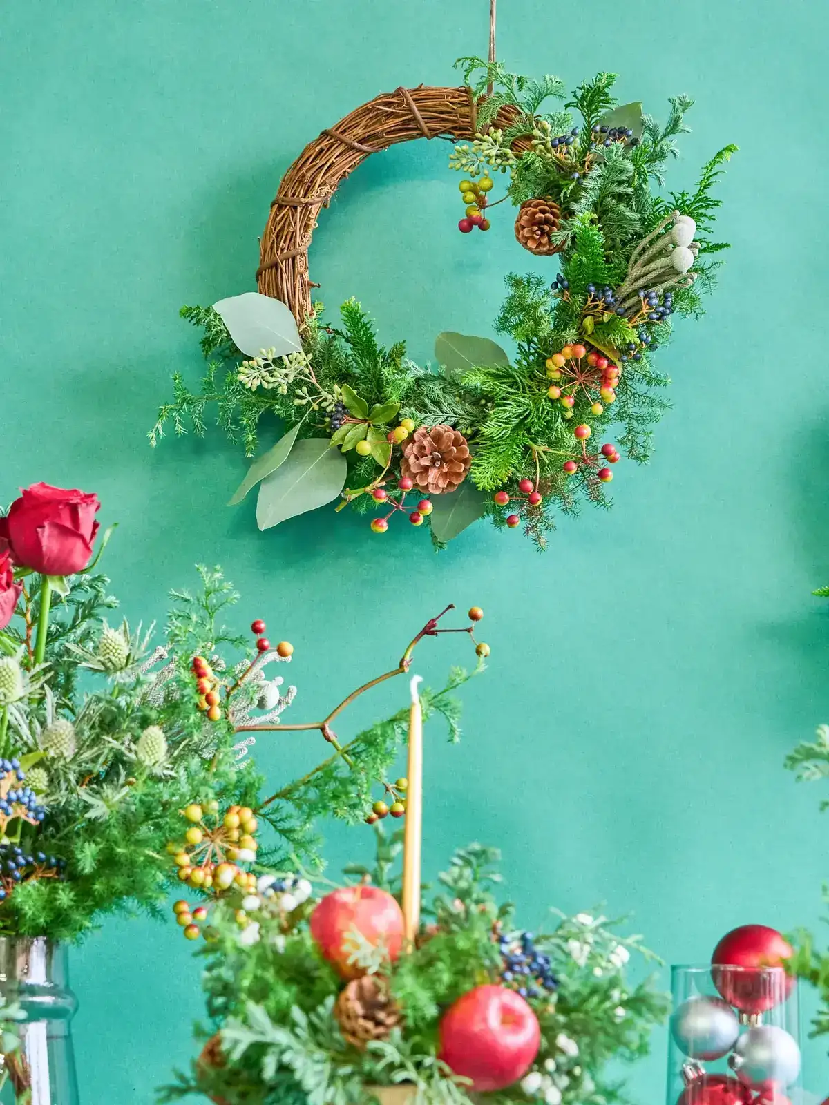 丈夫な籐(ラタン)を丁寧に編み込んだリースベース。25cmサイズはしっかりとした存在感があり、玄関リースや季節の大型アレンジ、店舗装飾などに最適です。花材・グリーン・実物を豊富に組み合わせてもバランスよく仕上がり、ナチュラルで温かみのある作品づくりに活躍する人気のサイズです。