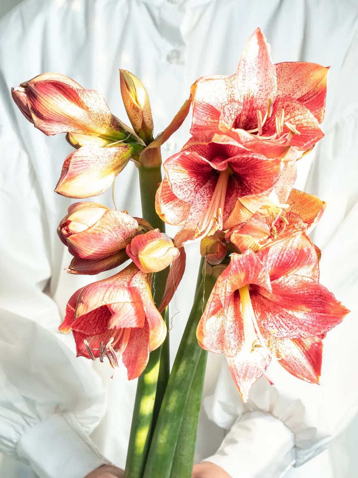 入荷した花は1本ずつ丁寧に水揚げ処理を行い、発送までしっかり管理。斜め切り・ハンマー叩きなど、花に合わせた水揚げを行います。届いた瞬間から、美しく咲く準備が整った状態でお届けします。
