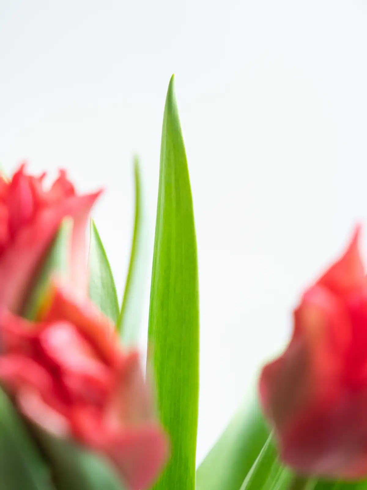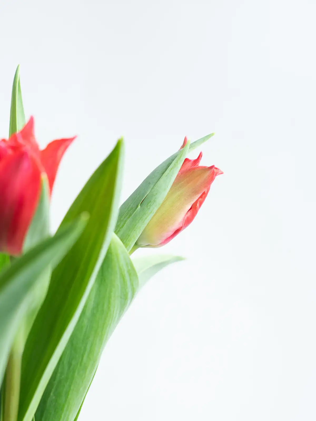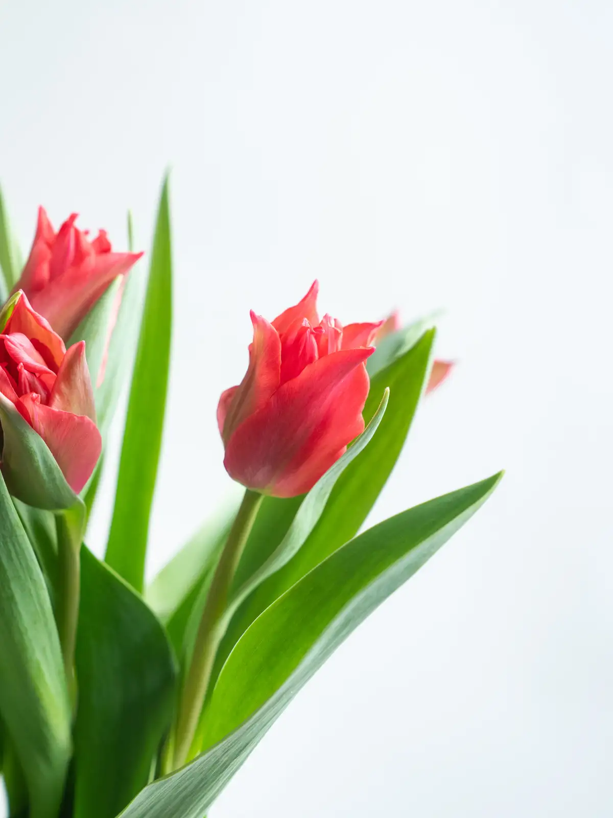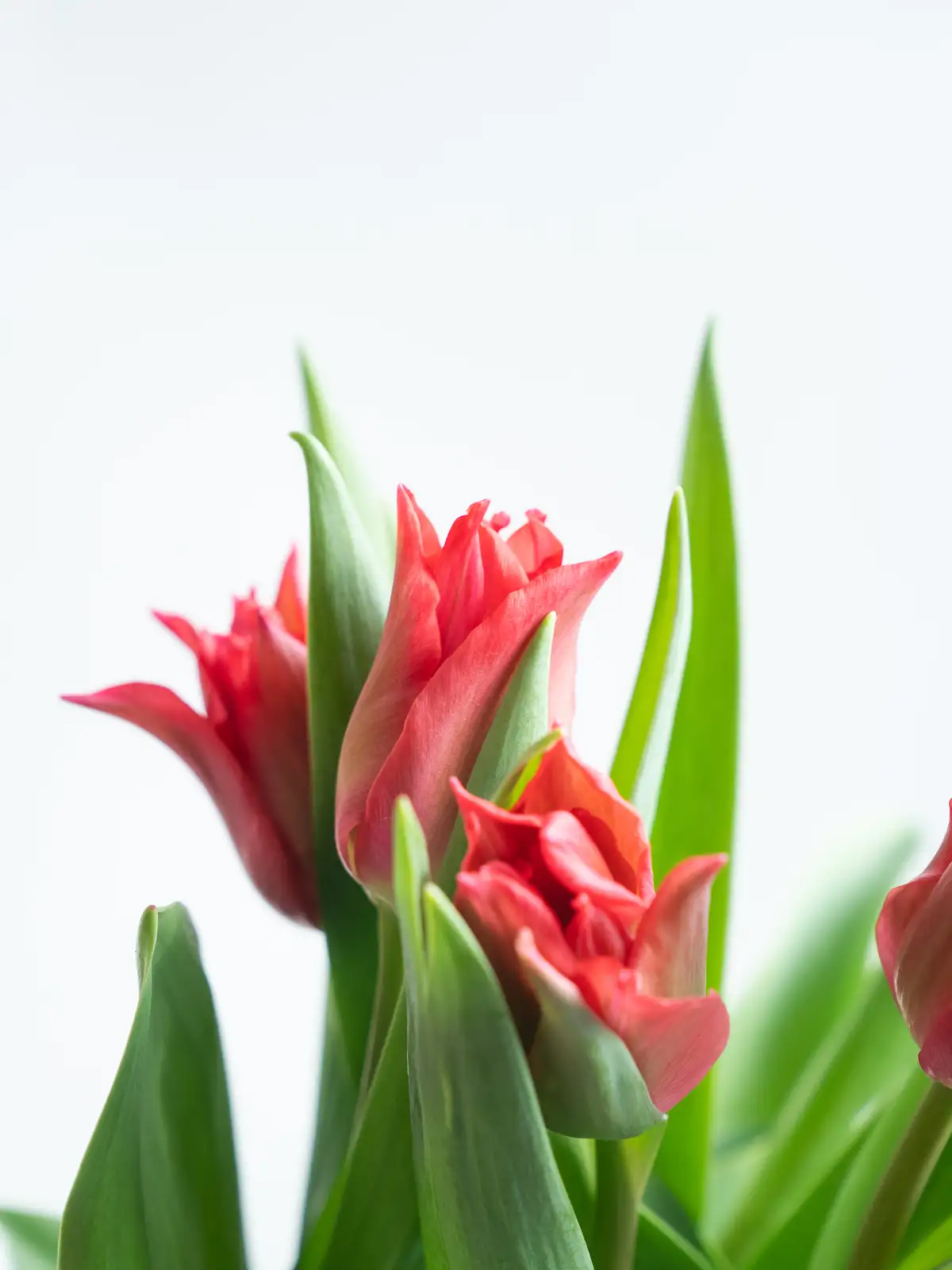 鮮やかな赤色の花弁が印象的なチューリップ。花形は端正で、発色の良さと存在感があります。