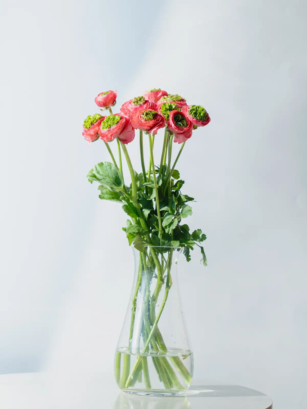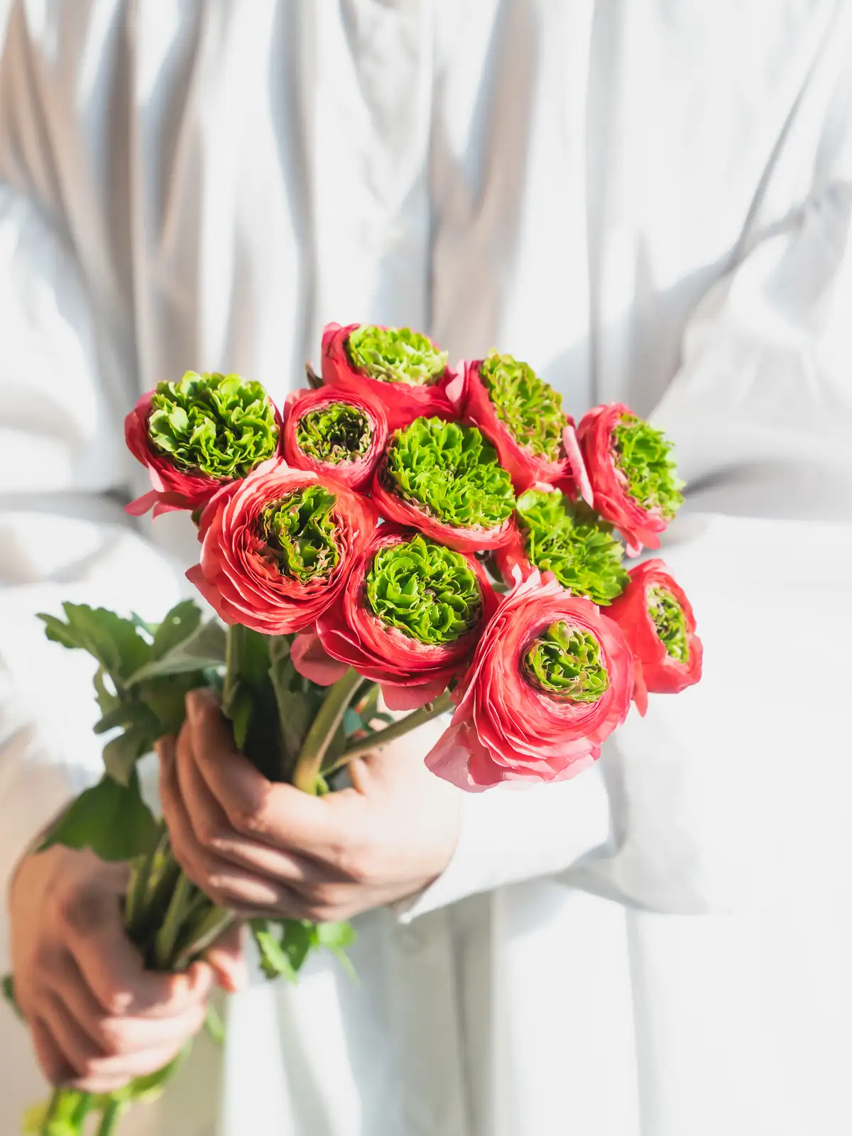 入荷した花は1本ずつ丁寧に水揚げ処理を行い、発送までしっかり管理。斜め切り・ハンマー叩きなど、花に合わせた水揚げを行います。届いた瞬間から、美しく咲く準備が整った状態でお届けします。