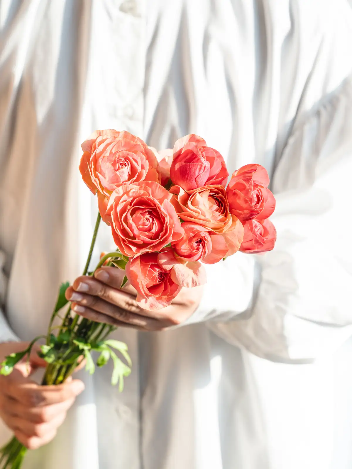 入荷した花は1本ずつ丁寧に水揚げ処理を行い、発送までしっかり管理。斜め切り・ハンマー叩きなど、花に合わせた水揚げを行います。届いた瞬間から、美しく咲く準備が整った状態でお届けします。