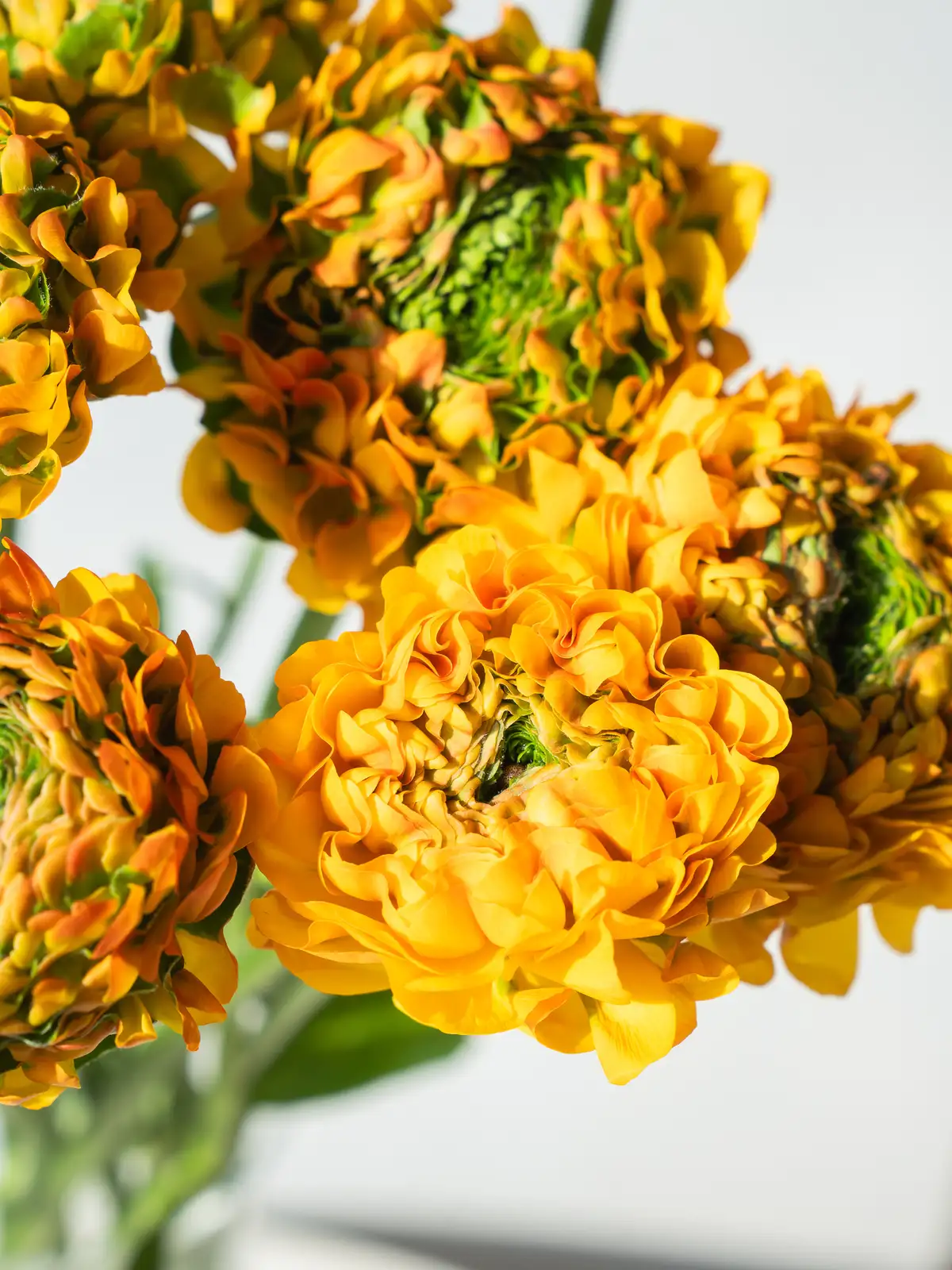 明るい黄色の花弁が幾重にも重なる品種。丸みのある花形で、華やかさがあります。