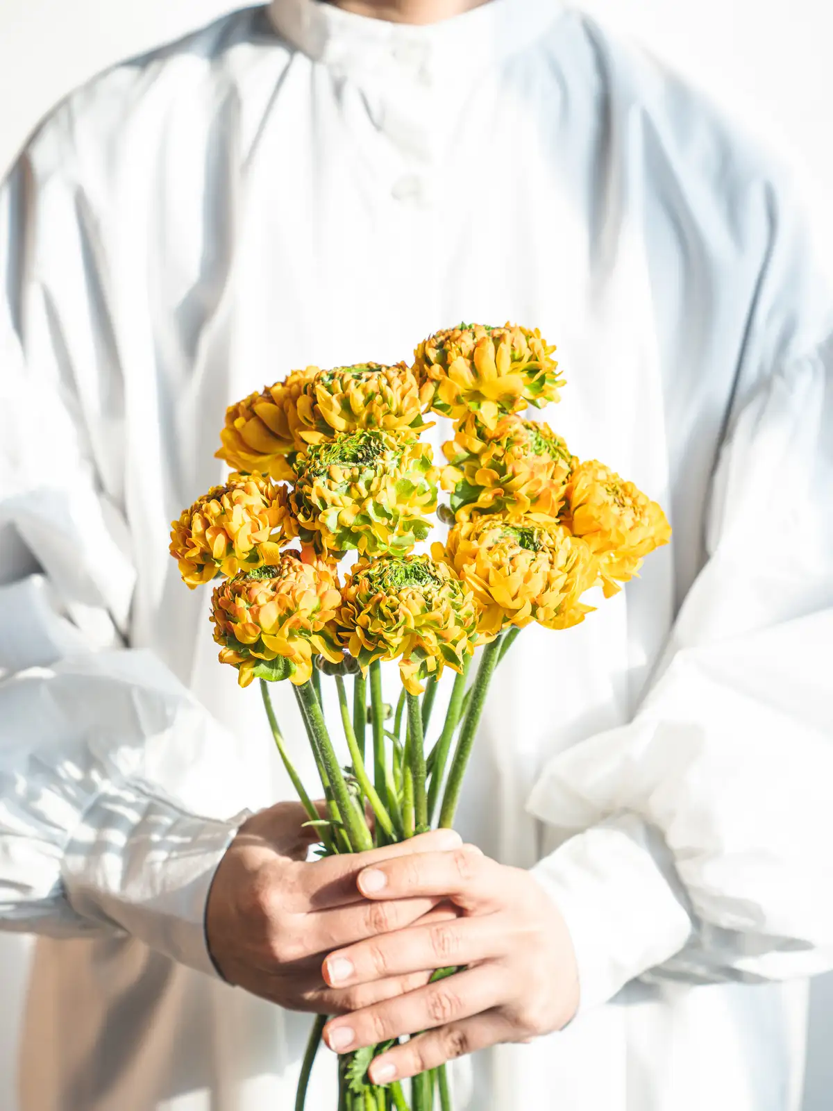 入荷した花は1本ずつ丁寧に水揚げ処理を行い、発送までしっかり管理。斜め切り・ハンマー叩きなど、花に合わせた水揚げを行います。届いた瞬間から、美しく咲く準備が整った状態でお届けします。